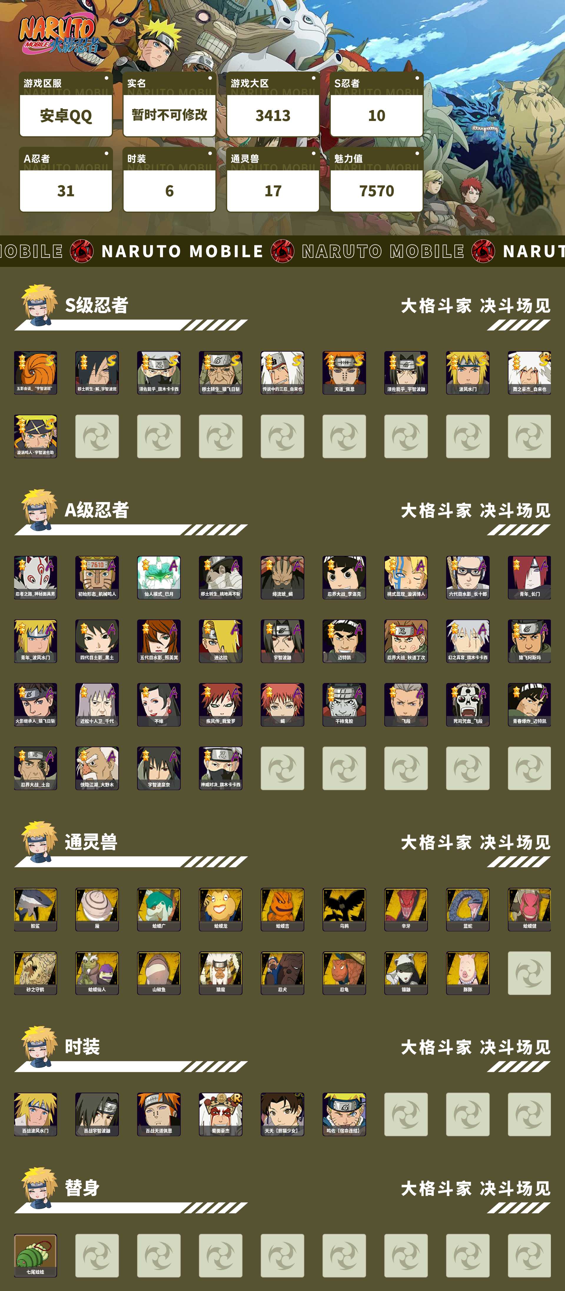691w 战力+五影斑+解斑+须佐卡卡西10S+面麻1个198直购A/31A