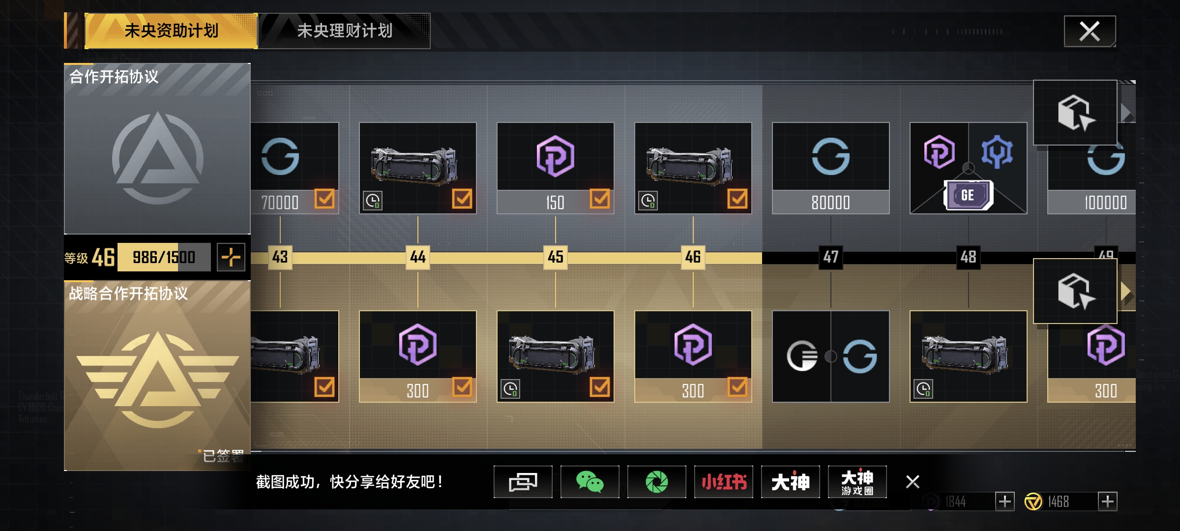 60个箱子出天枢航母,已开了55个,这赛季就能出,驱逐护卫全金,6个护航艇金,5个飞机金,5个巡洋金