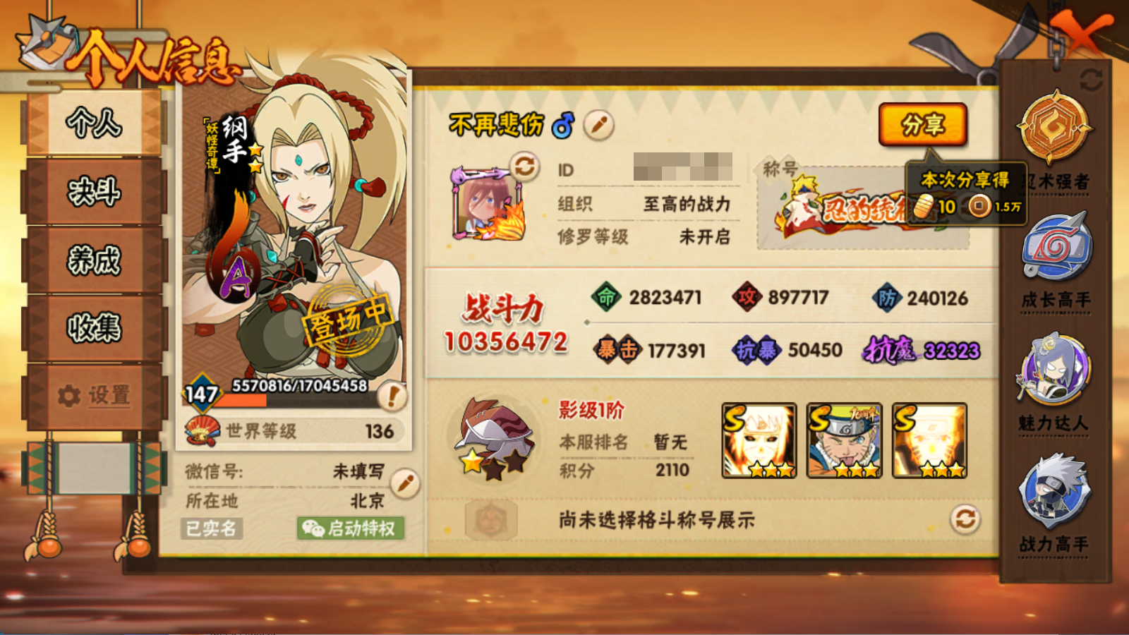 3.1可登V 1035W战力 创斑 白破 死水23S+盾狗 新水3个198直购42A+88片罗砂62片十尾带土+12幕布