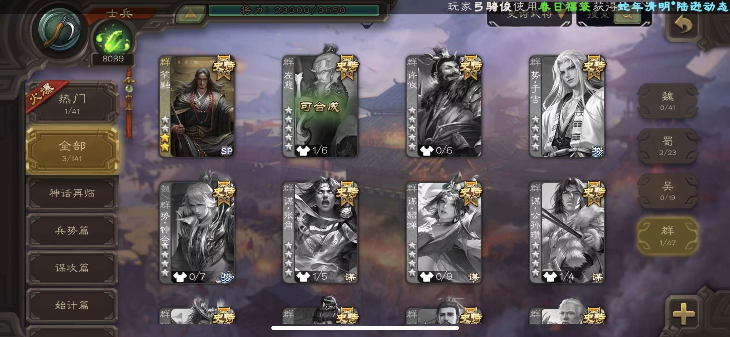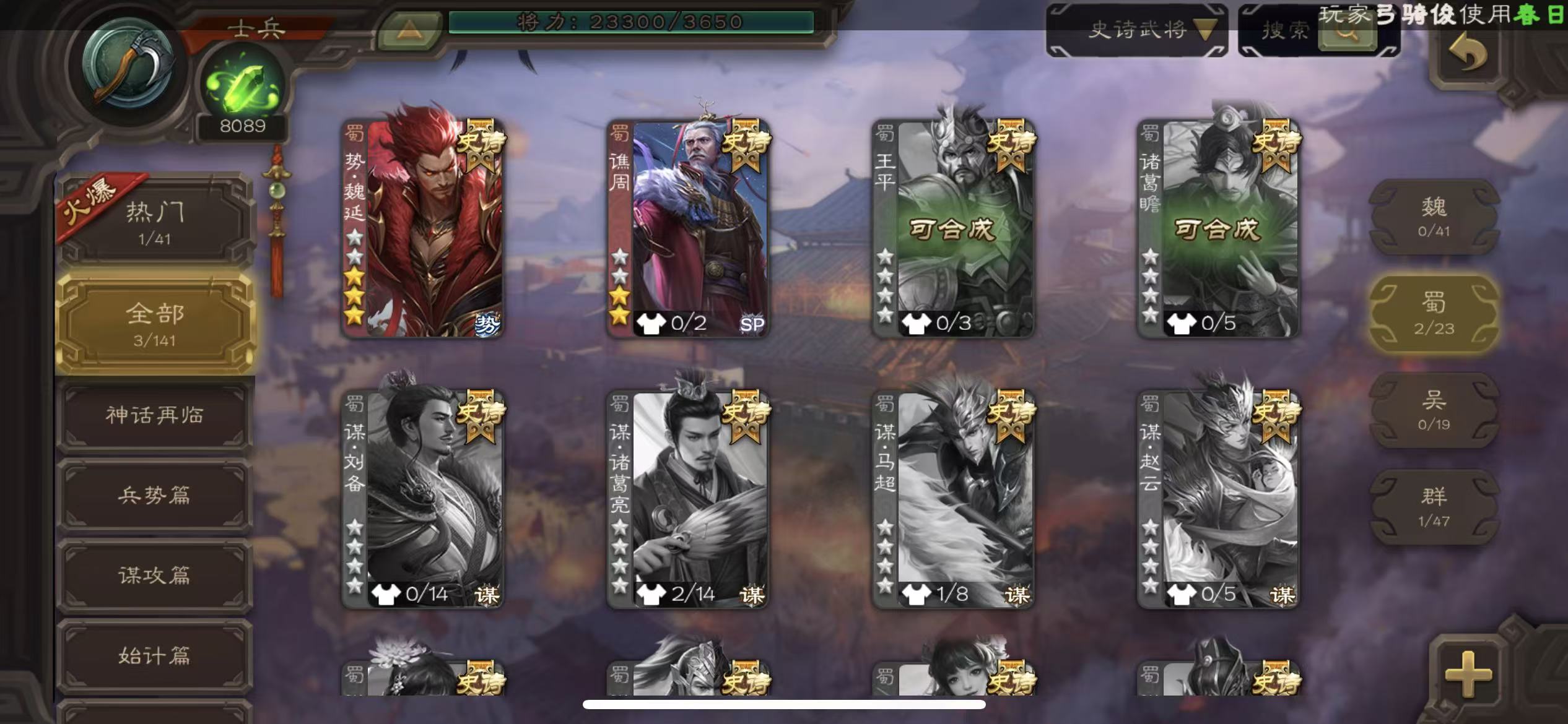史诗武将数量: