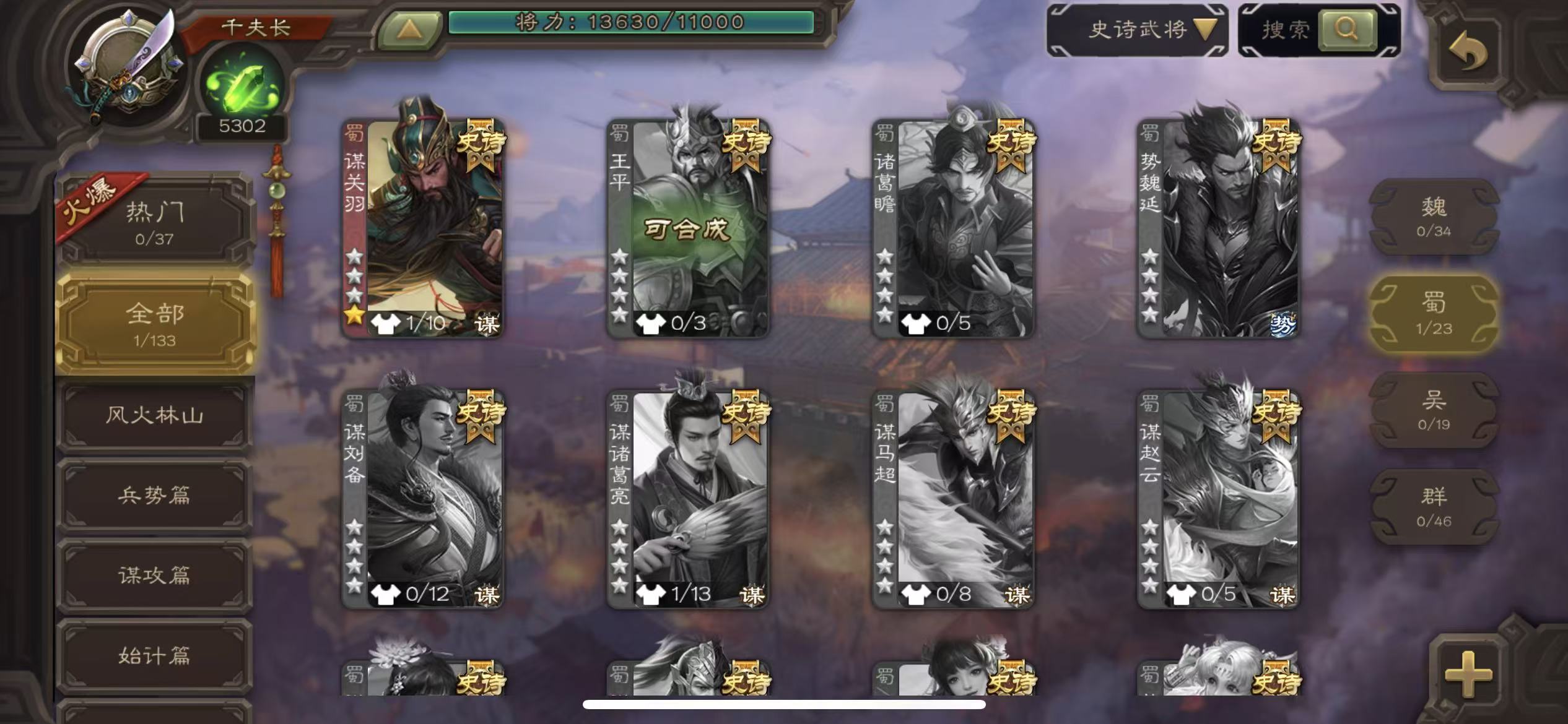 史诗武将数量: