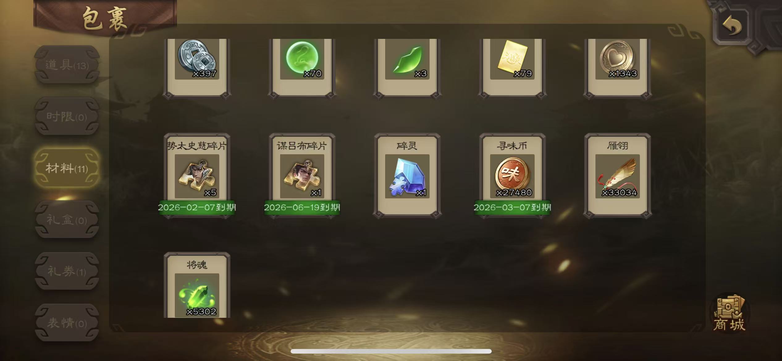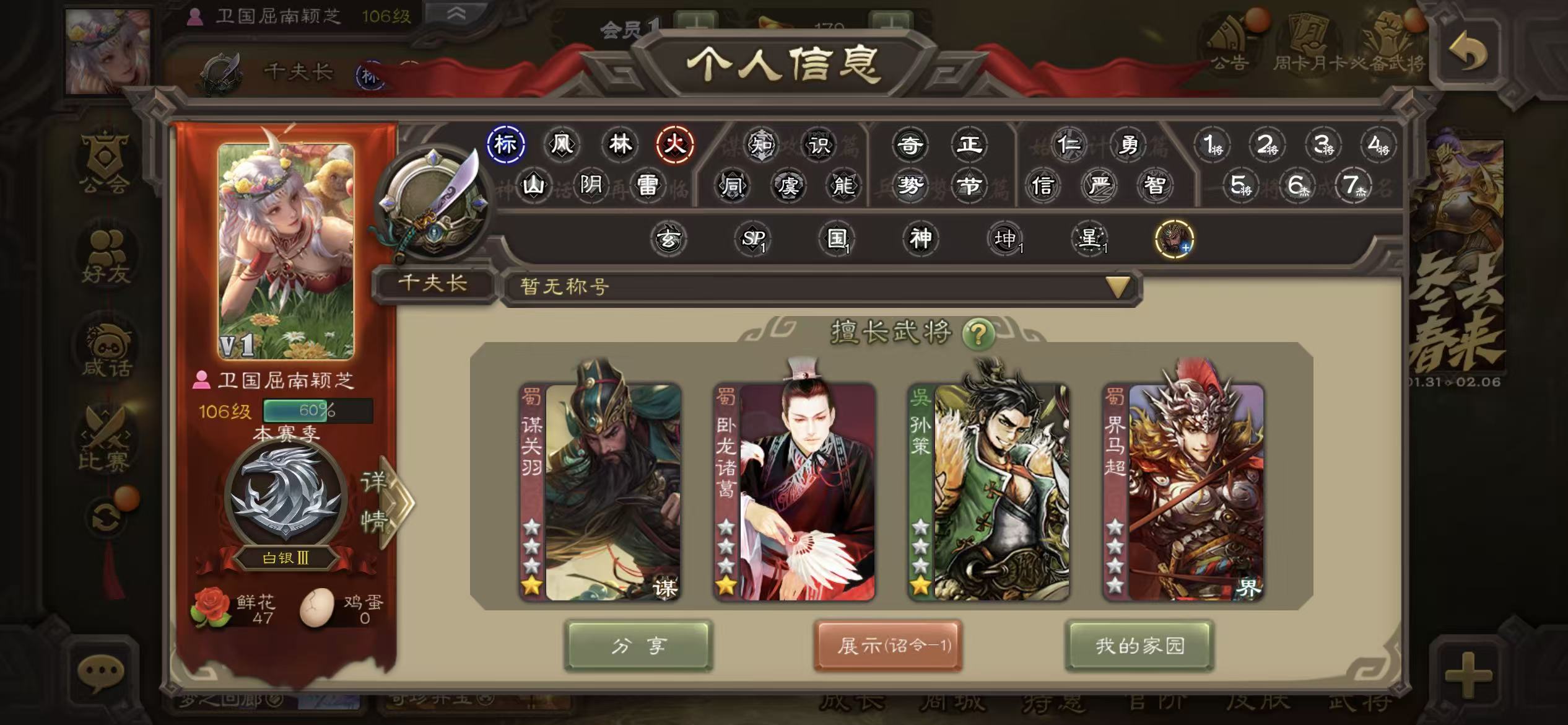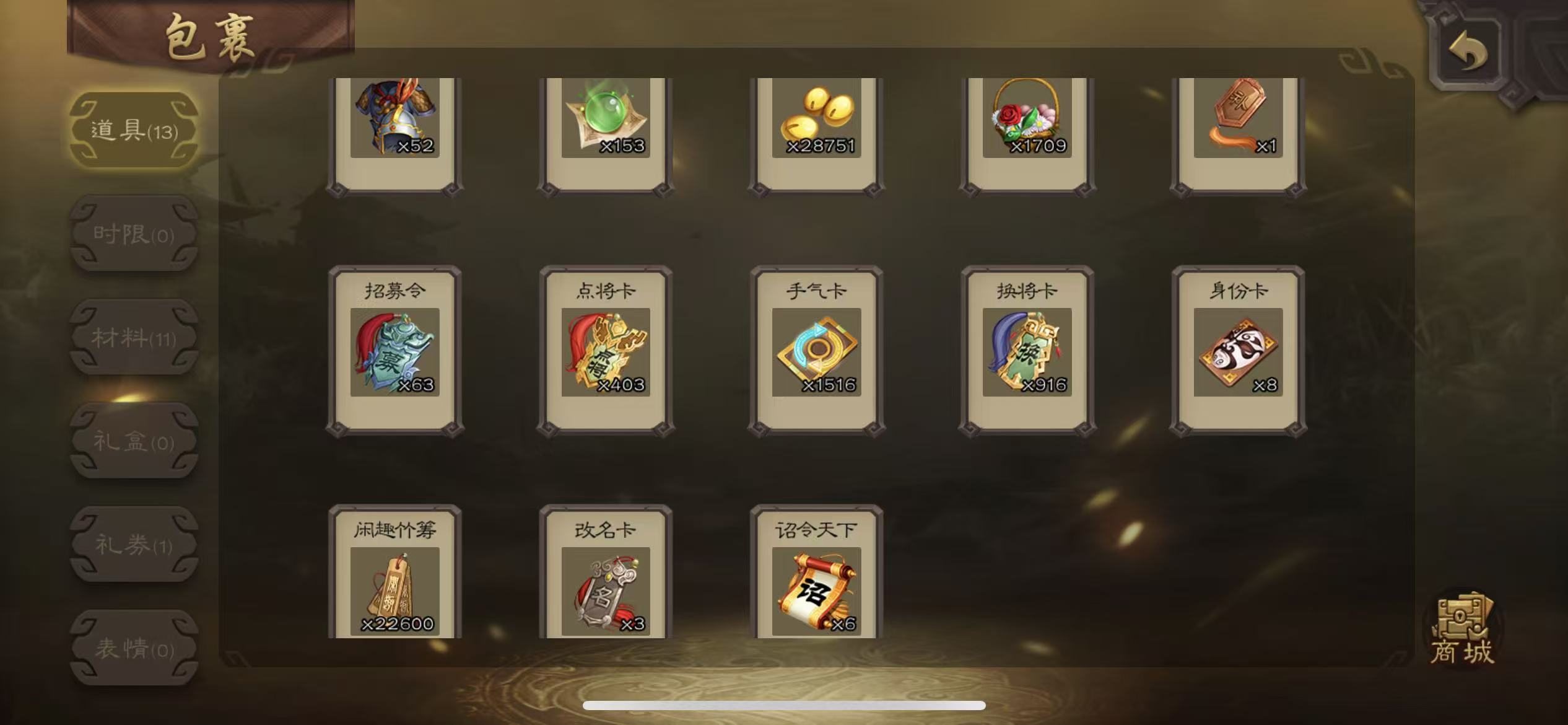 千夫70宝珠(可换火龙果或者势邓艾)谋关羽5000将魂63招募令三卡