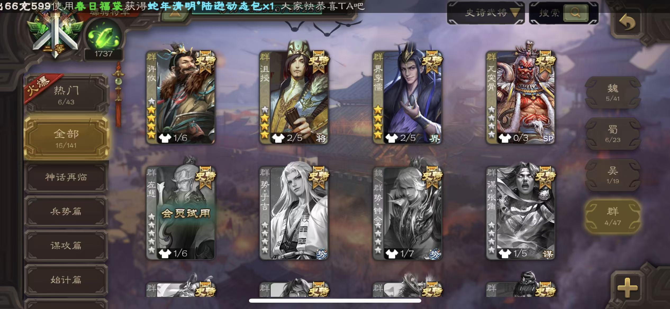 史诗武将数量: