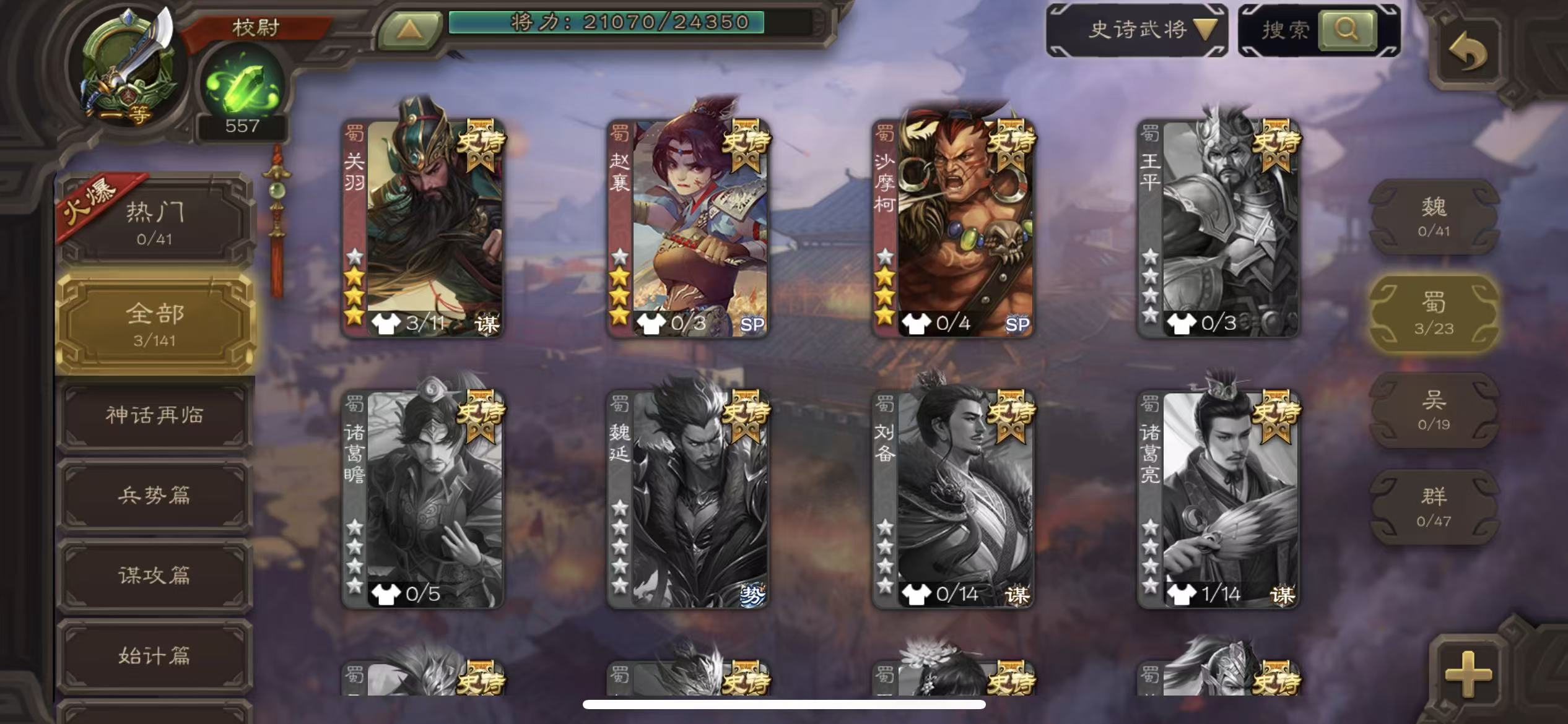 史诗武将数量: