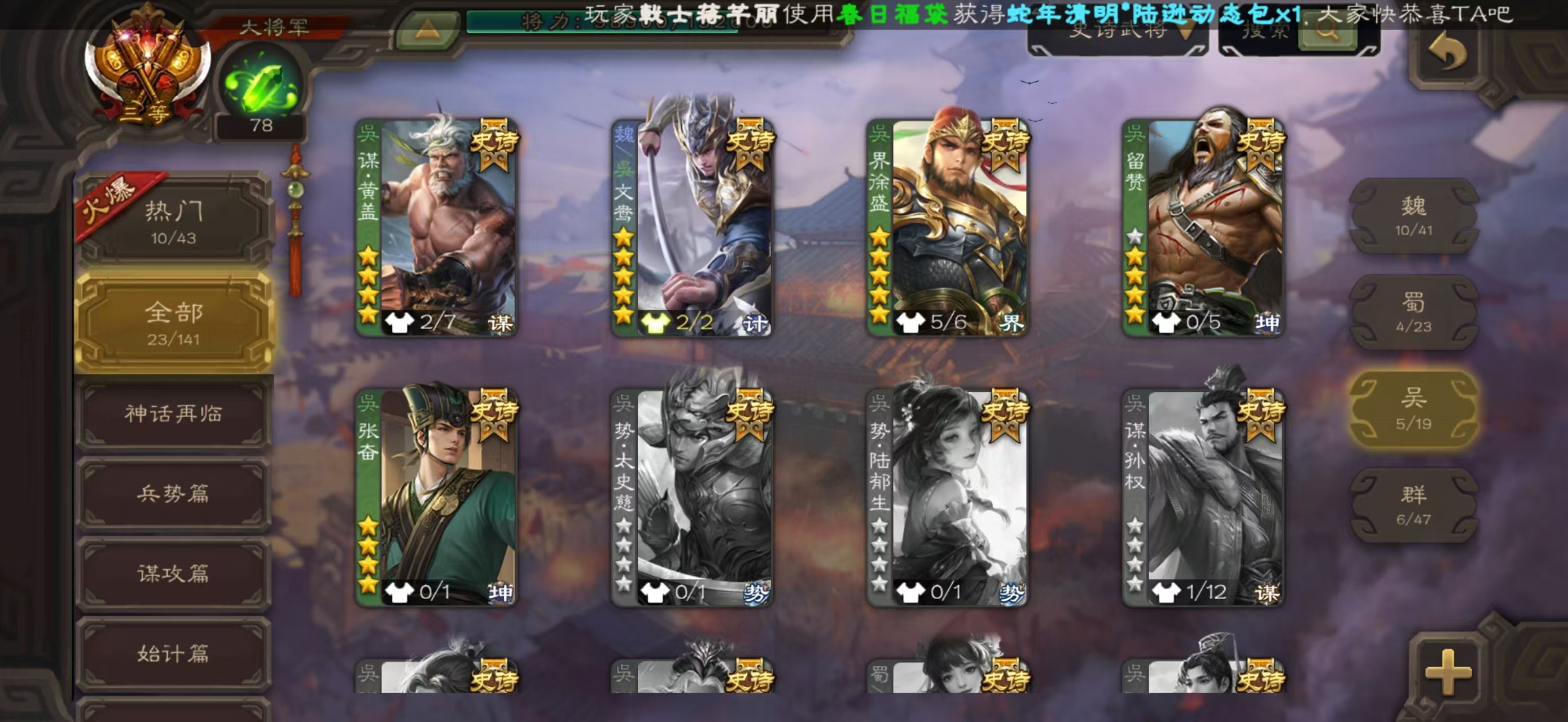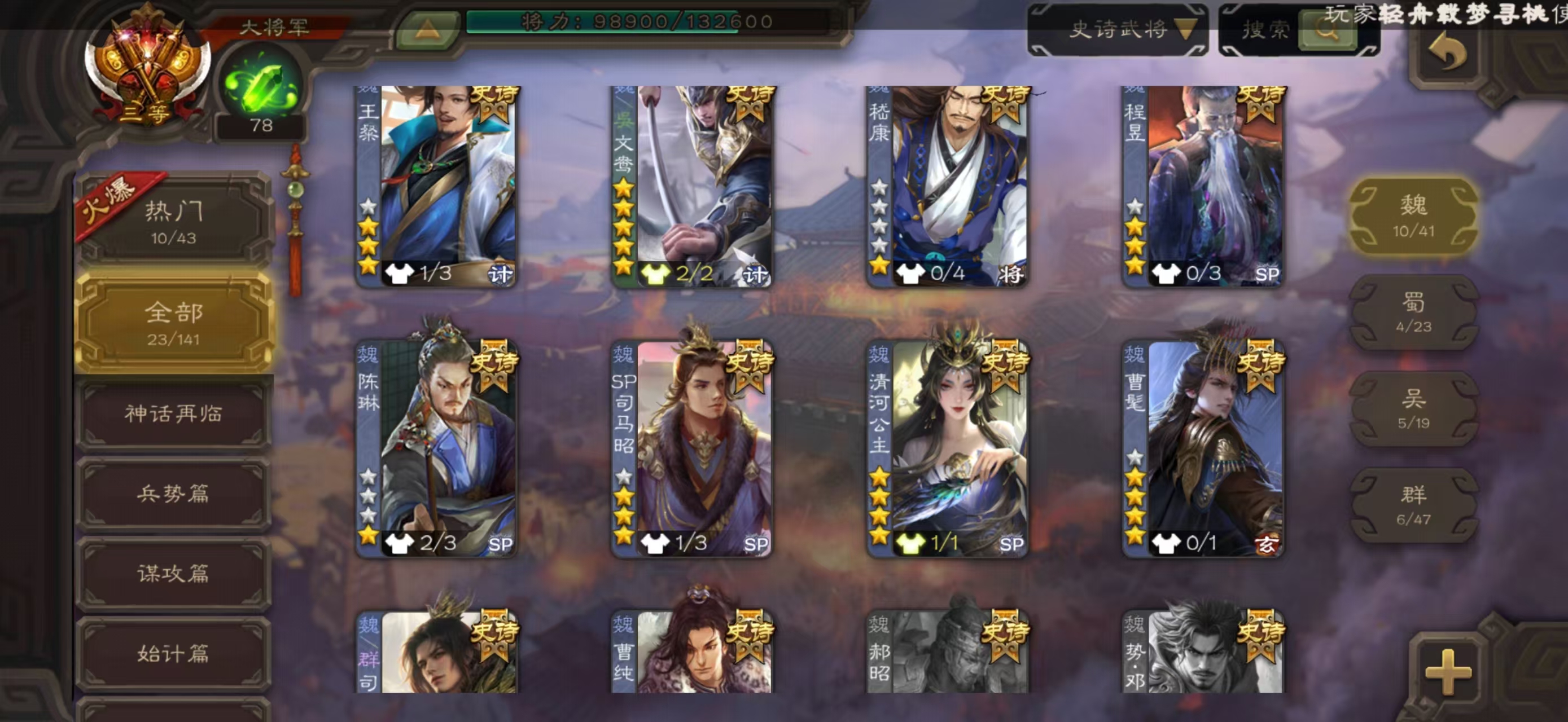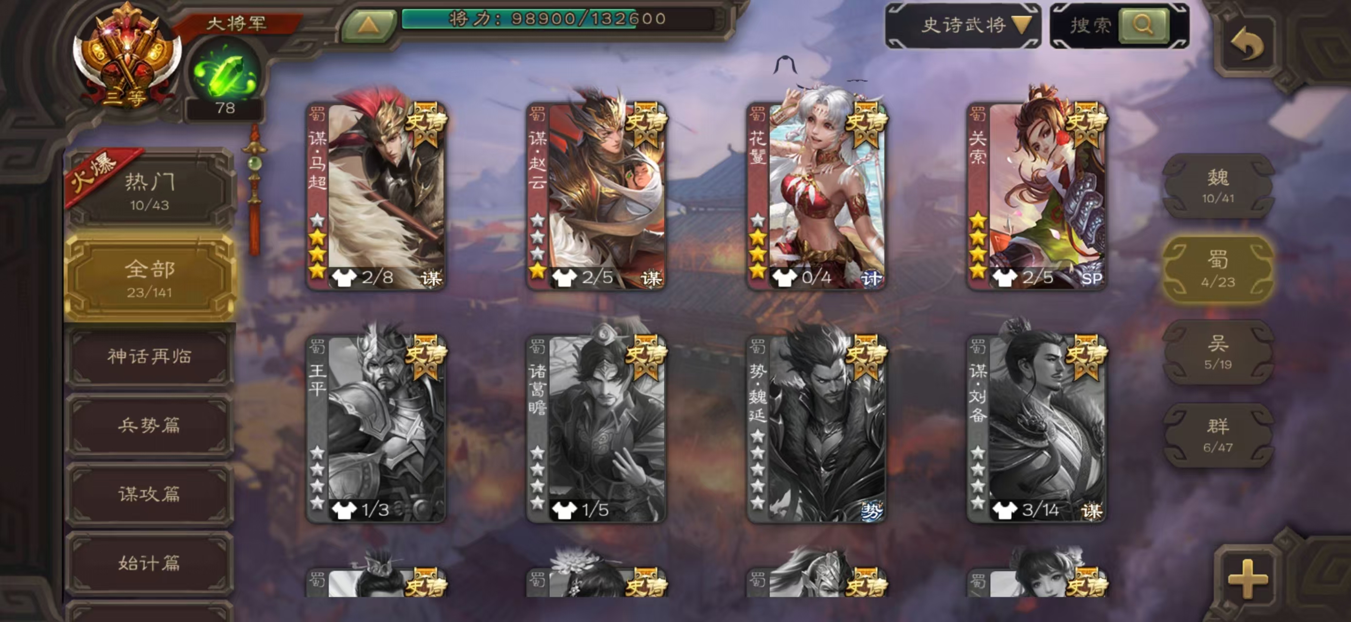 史诗武将数量: