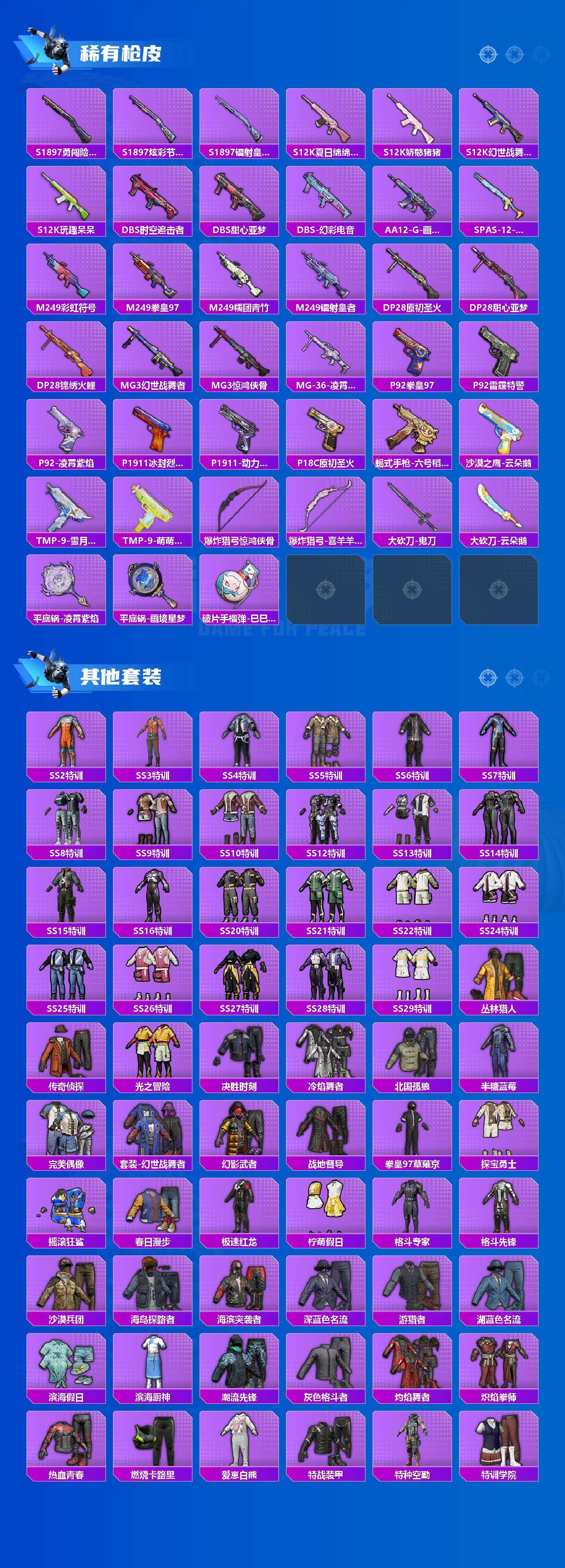2神装-5粉装-8特效枪-5载具-5粉色飞行器-97024热力值-17王牌印记-218套装-280枪皮