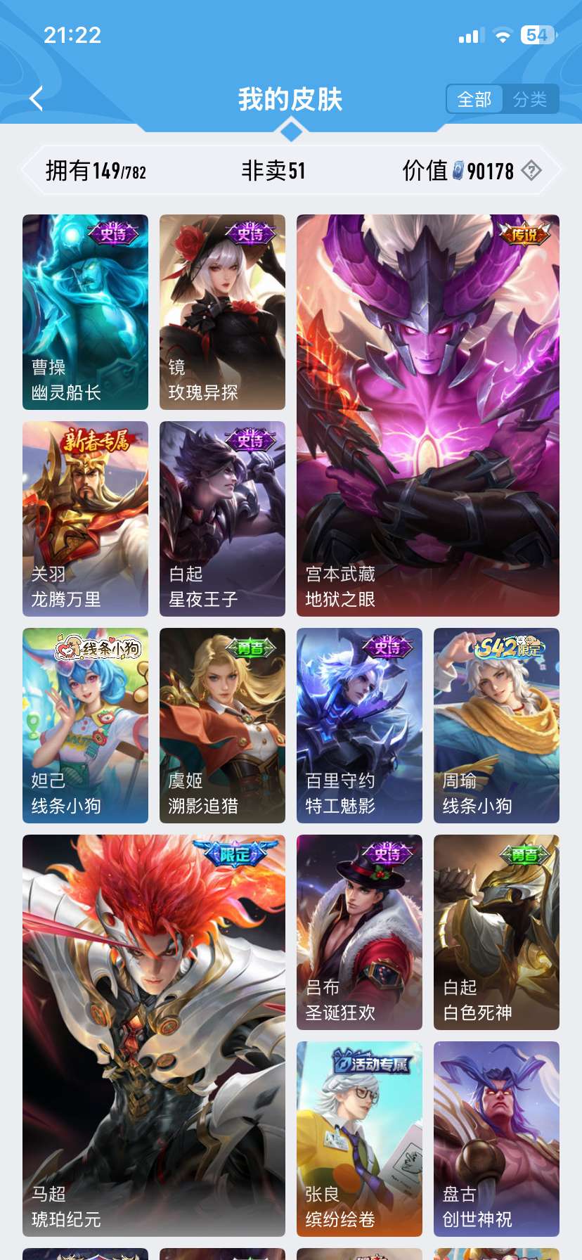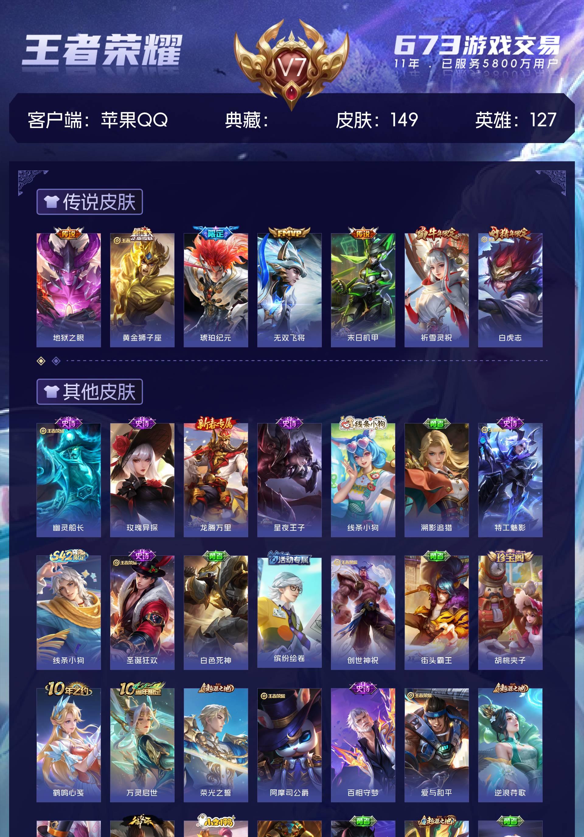 V7 皮肤149 英雄127 至尊星耀 传说7 其他皮肤147