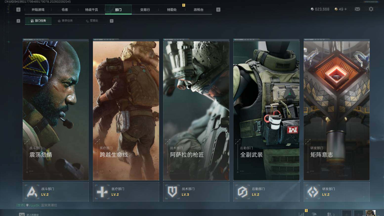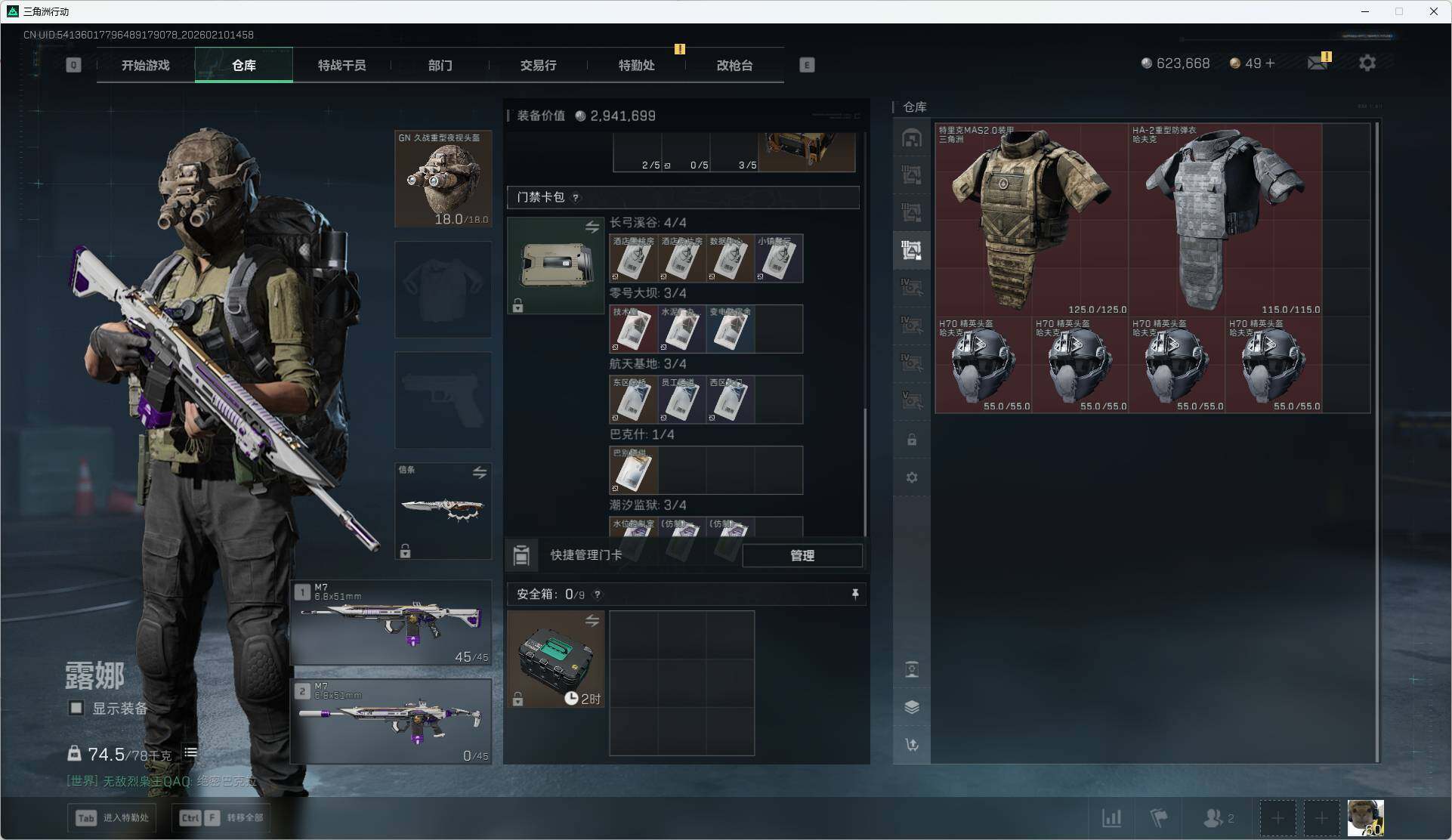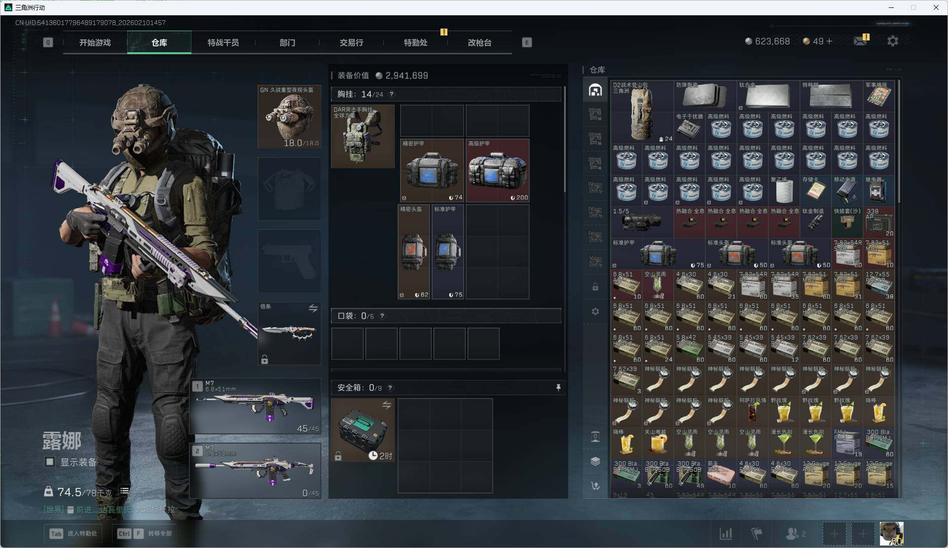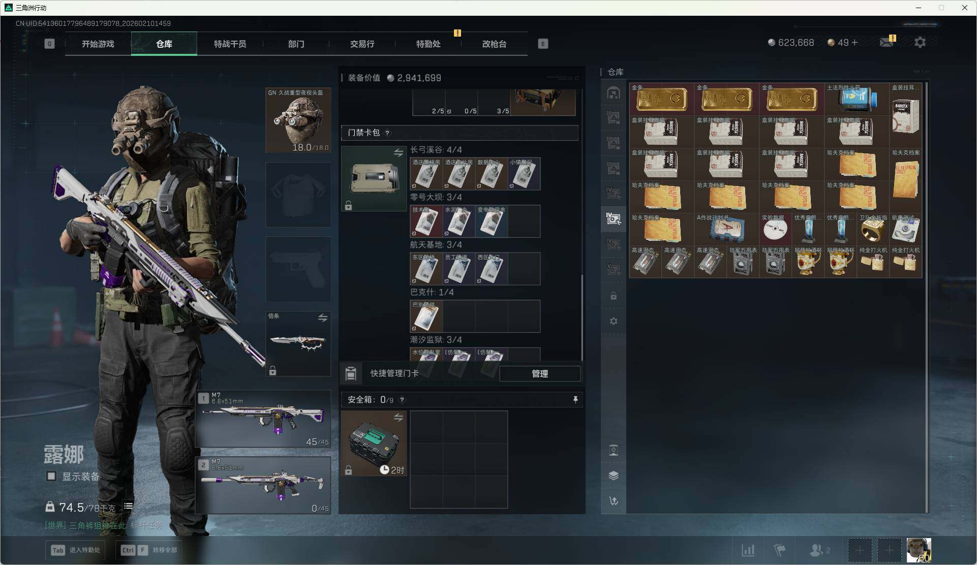 总资产(M):588M/哈夫币(K):623K/哈夫币(K):623K/传说枪皮数:6/全面战场等级