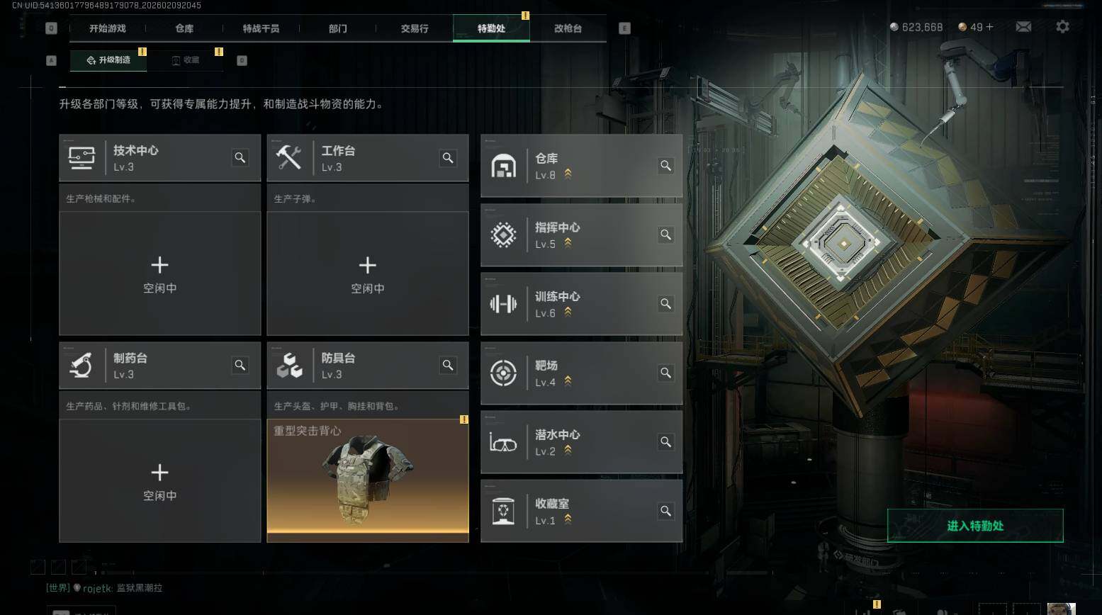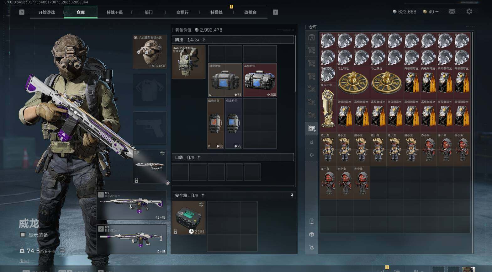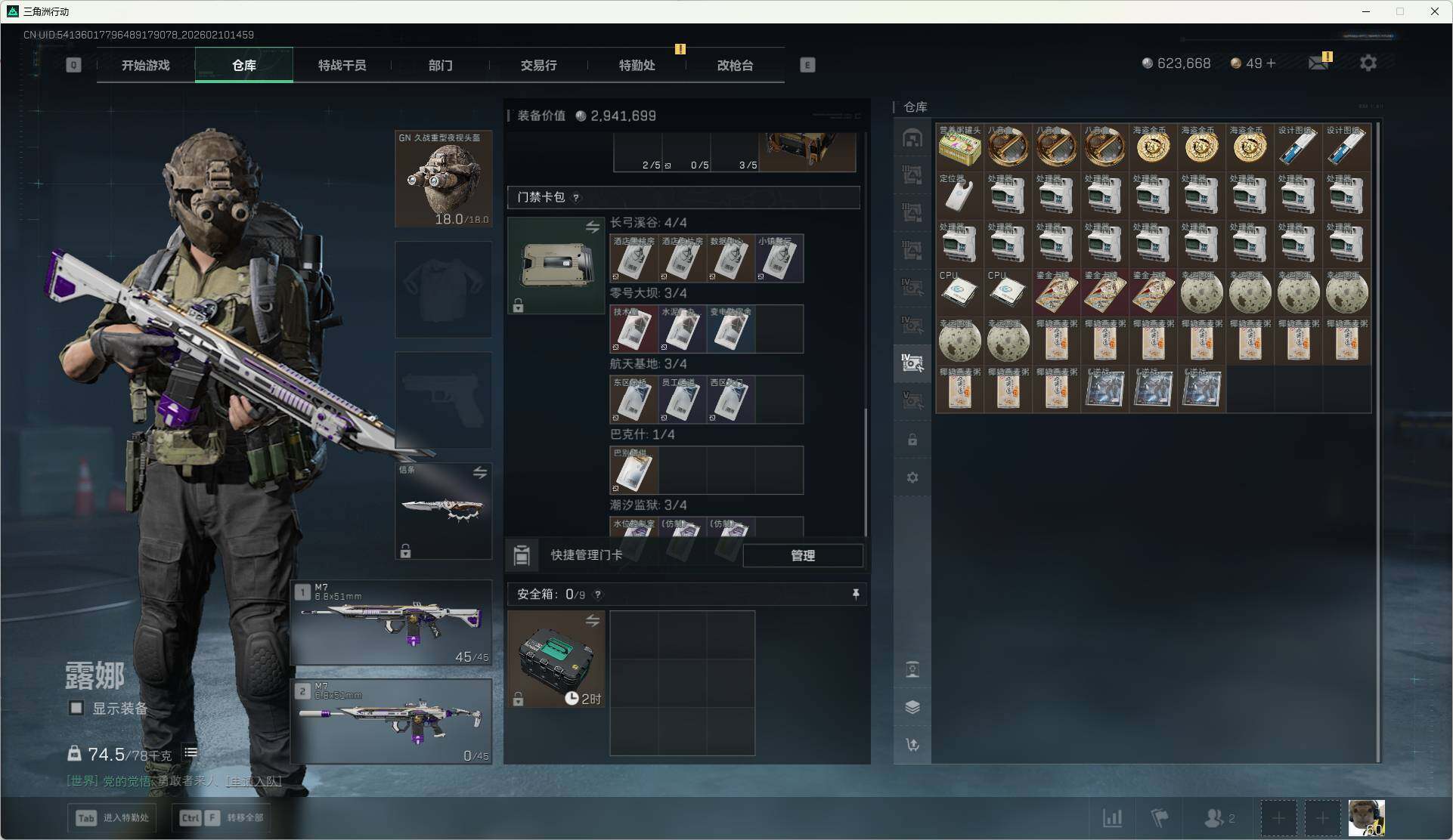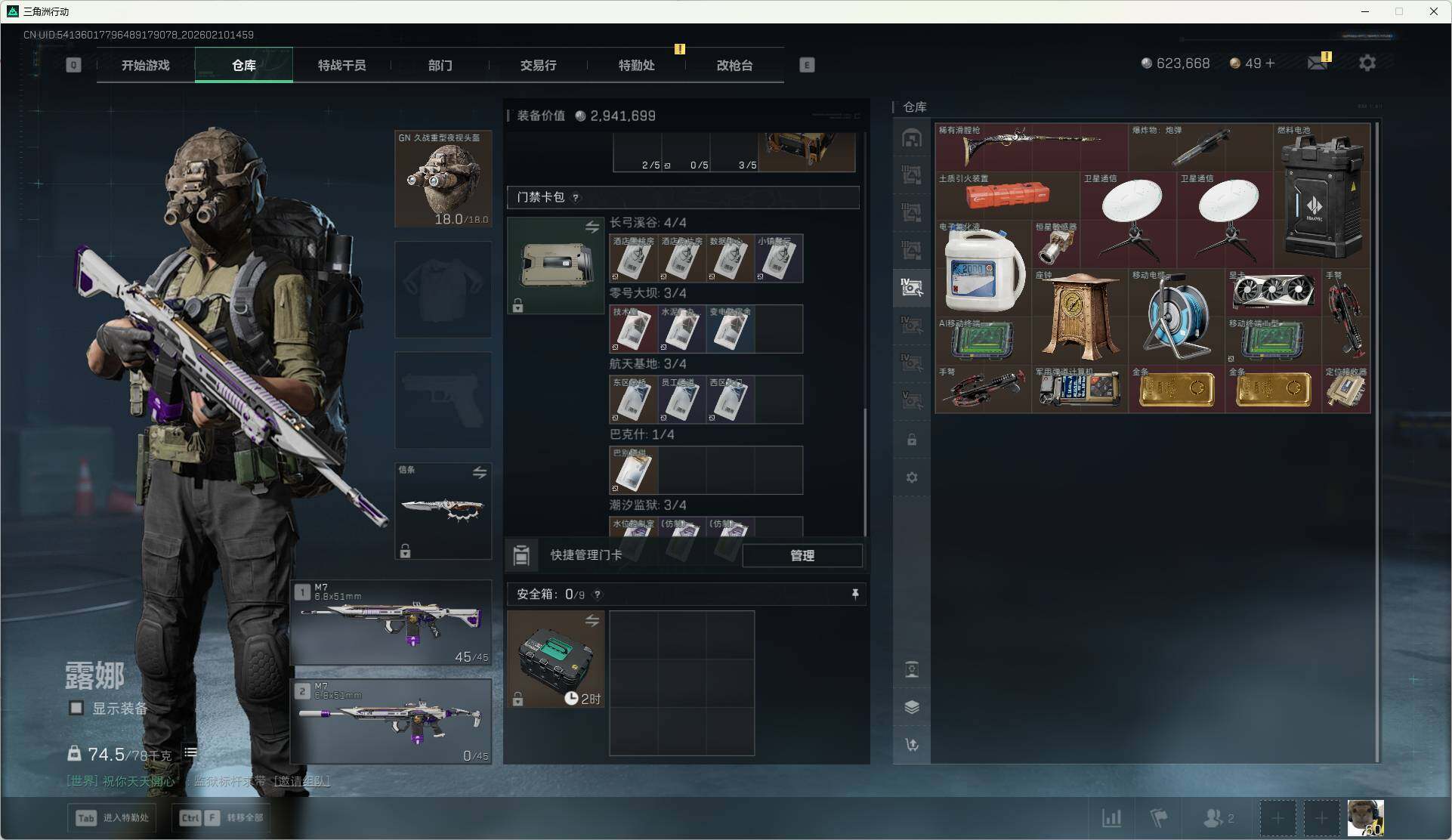 总资产(M):588M/哈夫币(K):623K/哈夫币(K):623K/传说枪皮数:6/全面战场等级