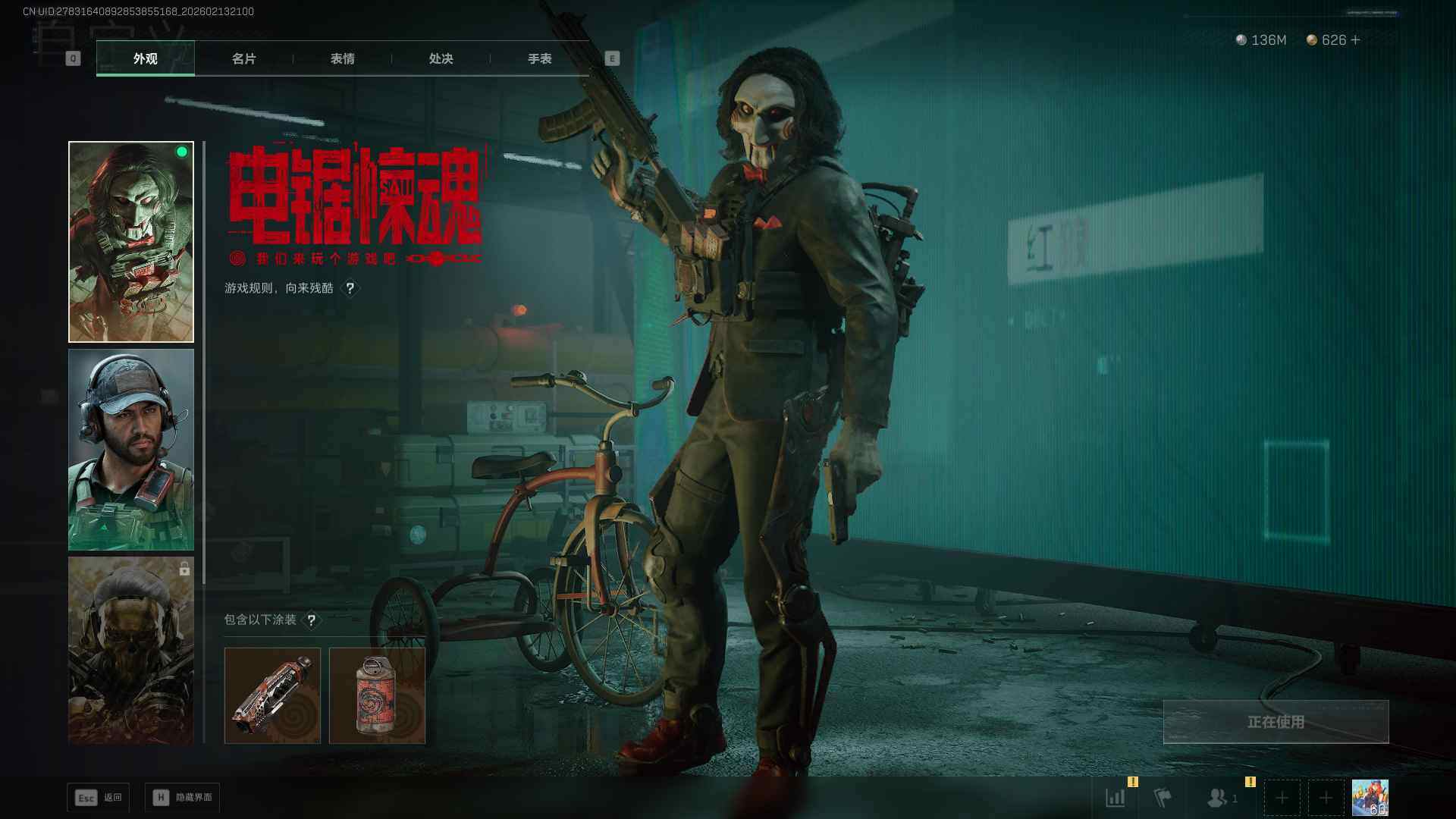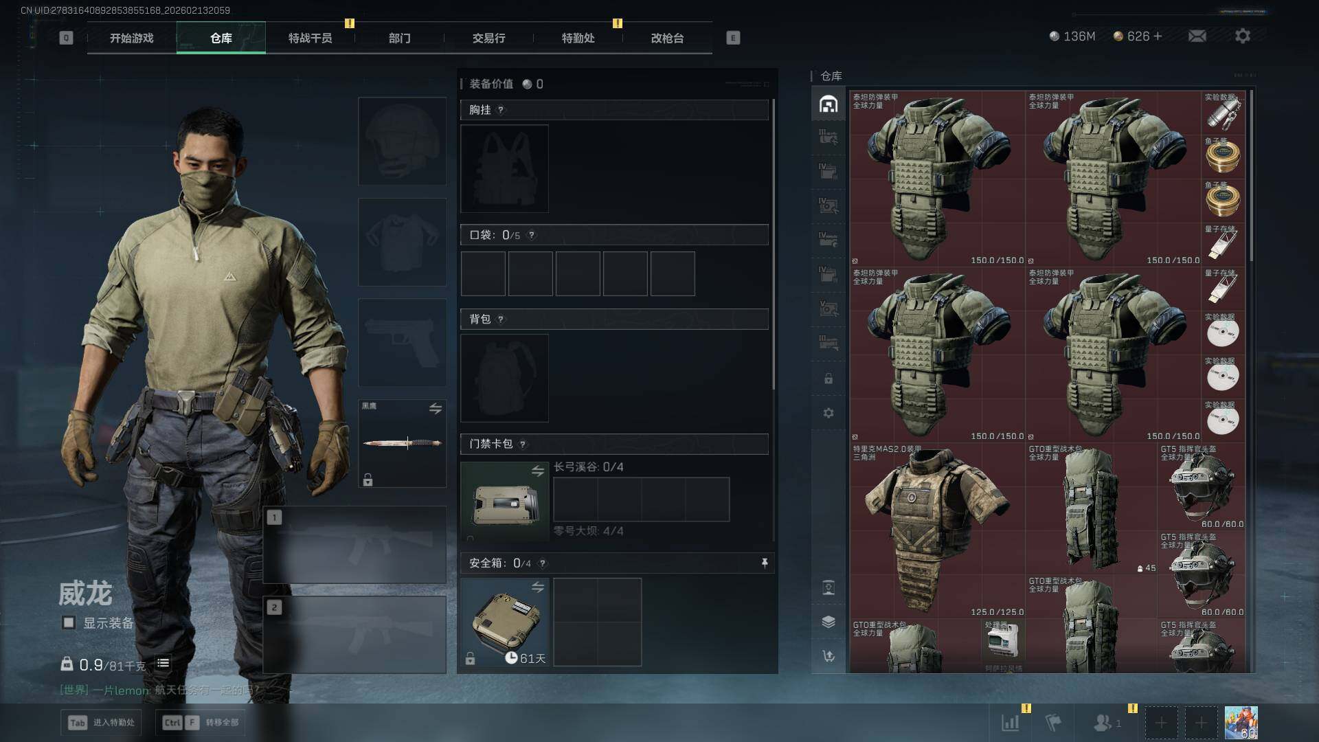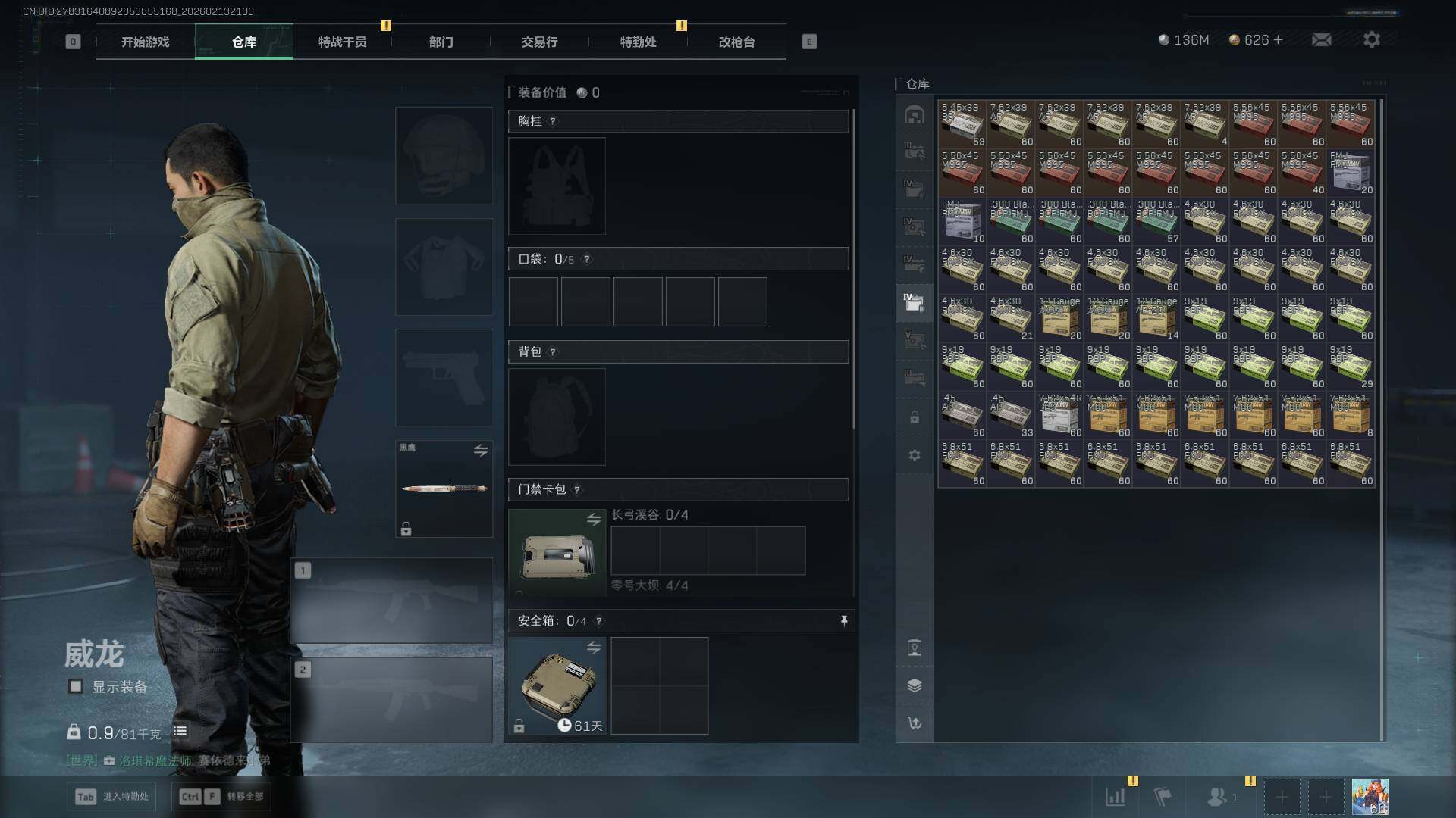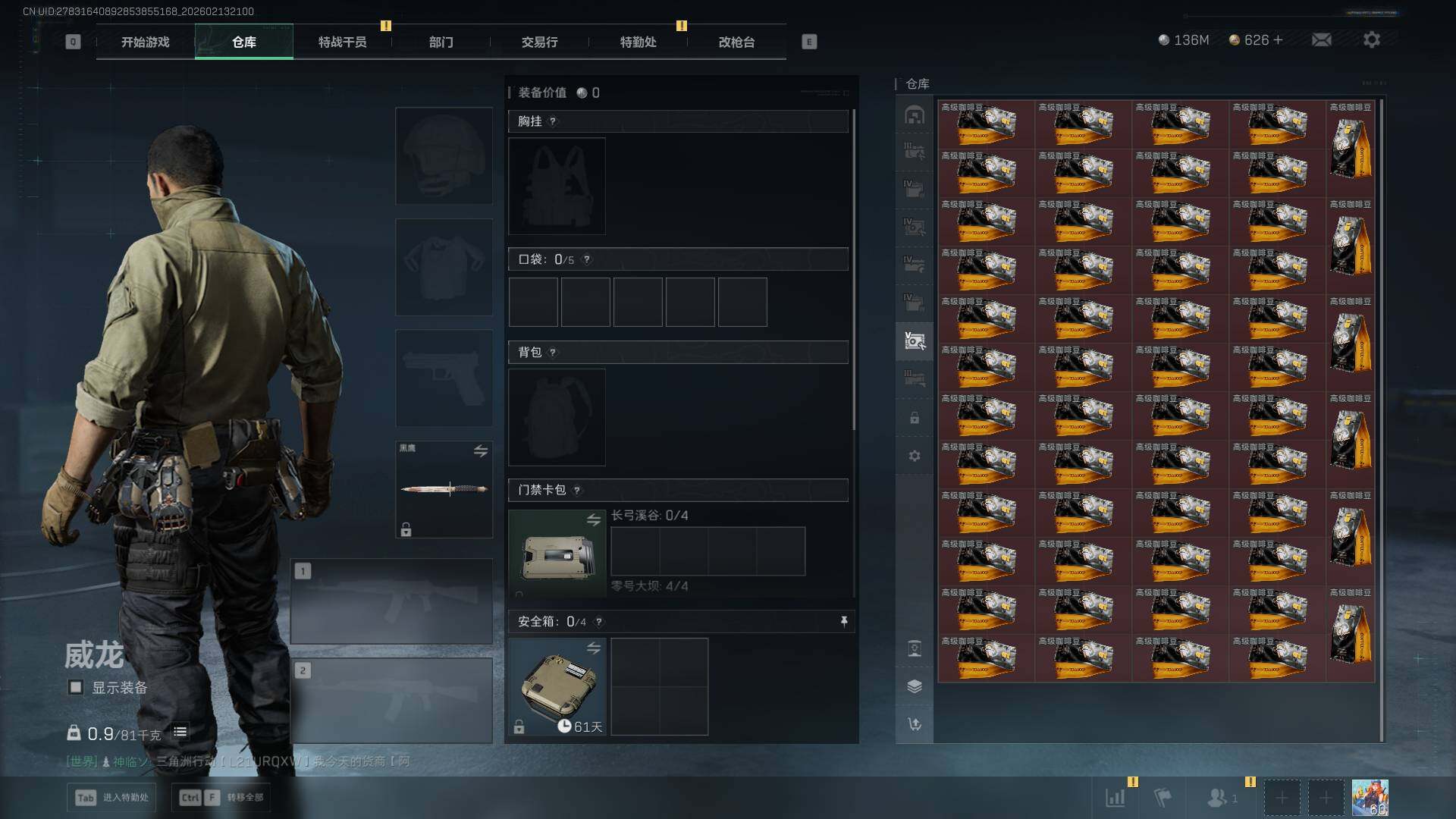 总资产(M):509M/哈夫币(K):136987K/哈夫币(K):136987K/传说枪皮数:21