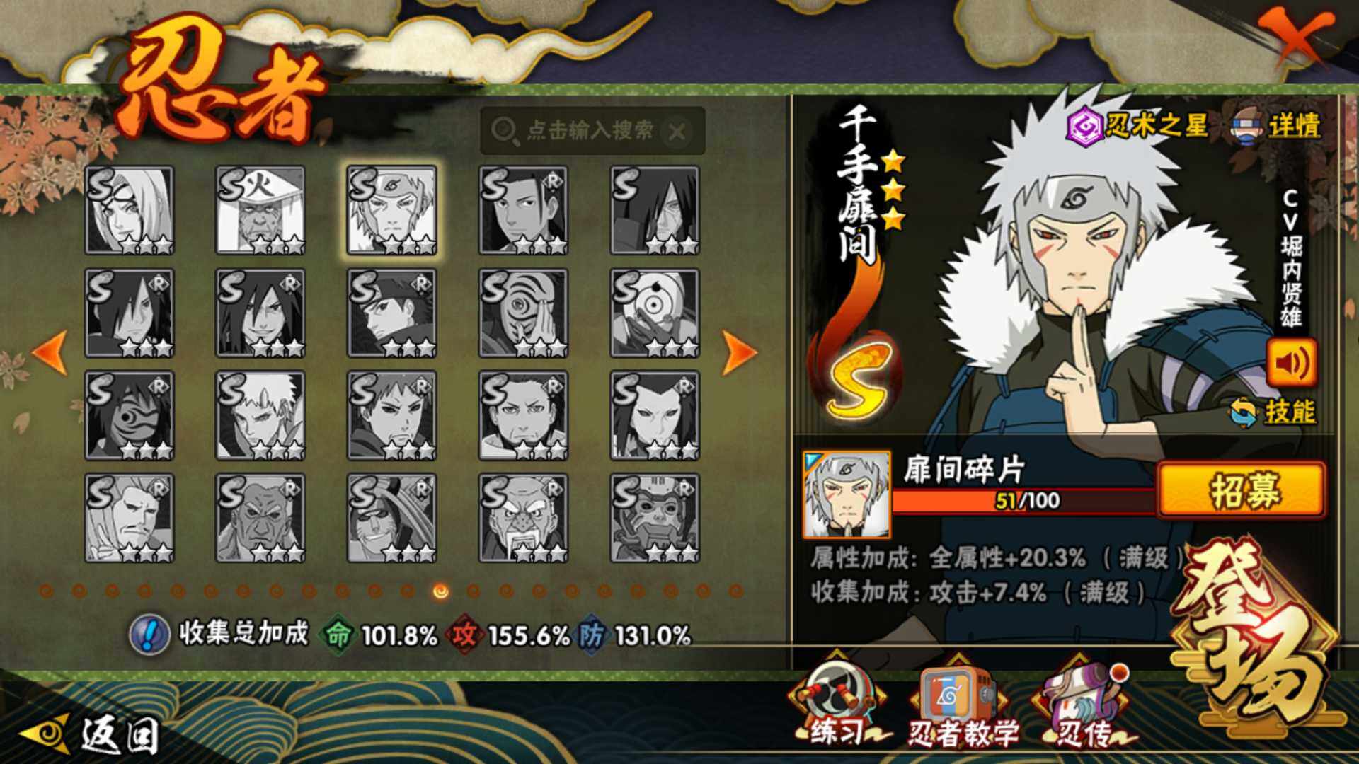 V8 1167万战力 26S-50A 高招卷109 扉间51片 秽土斑52片