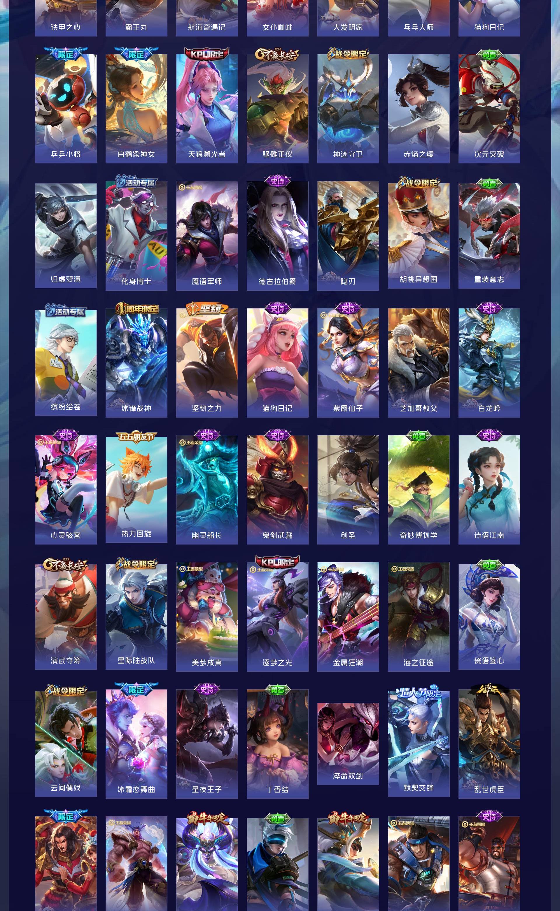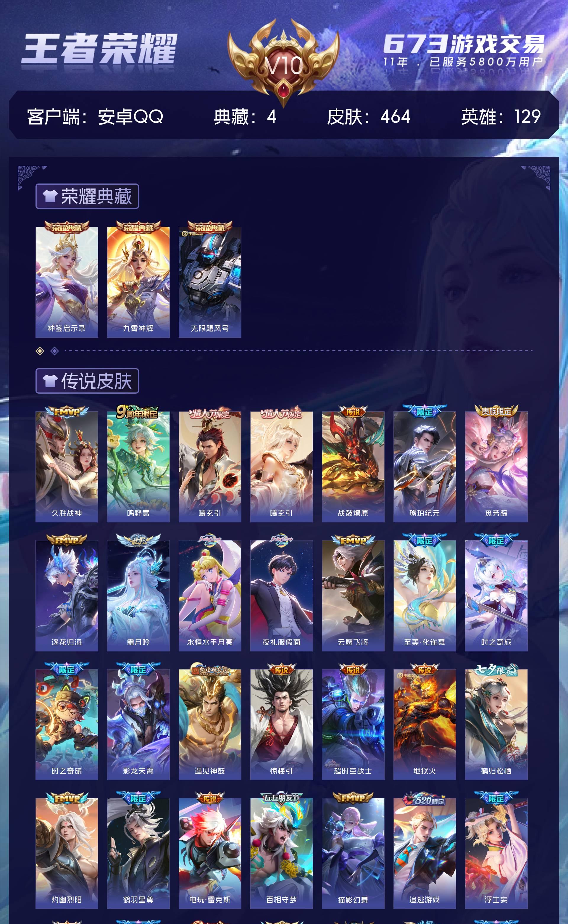 V10 皮肤464 英雄129 至尊星耀 荣耀典藏4 传说68 其他皮肤395