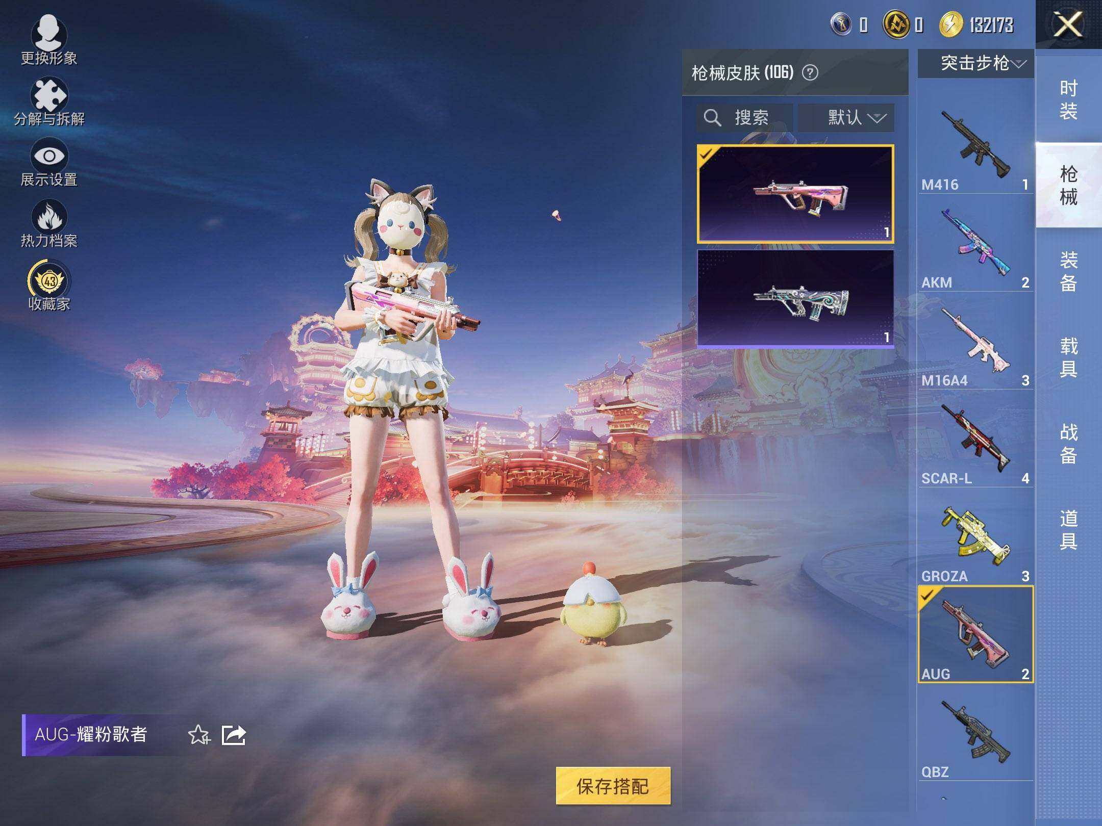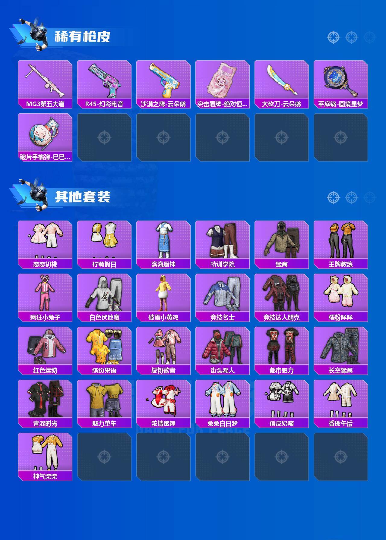 【粉色枪皮等级】:AKS-74U-森灵之息(五级),Kar98K-巳巳如意(五级),DP-28-豹影疾电(五级)
