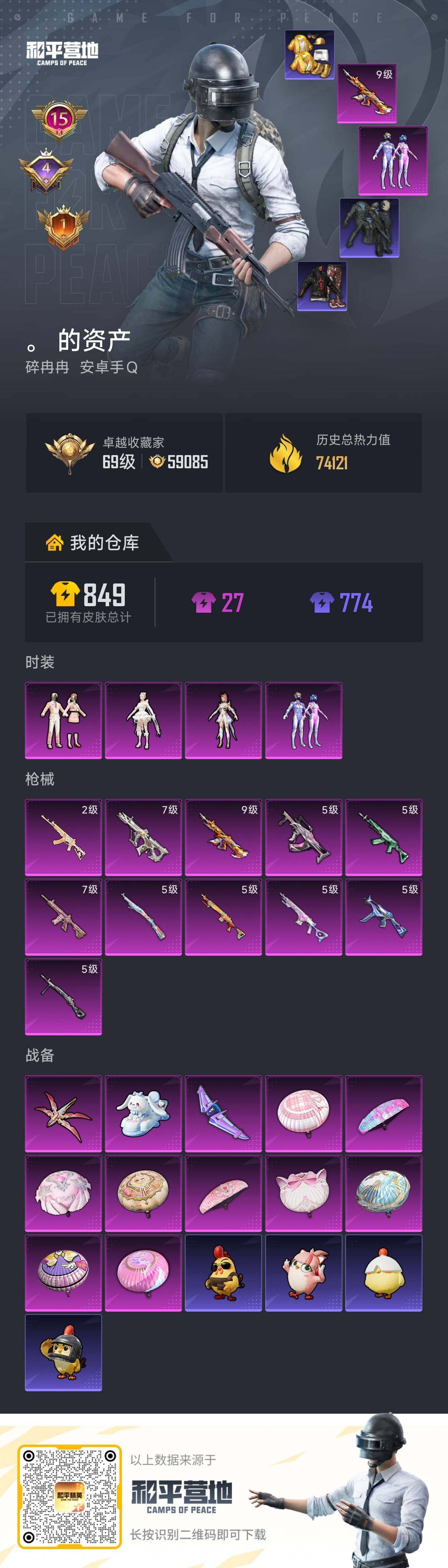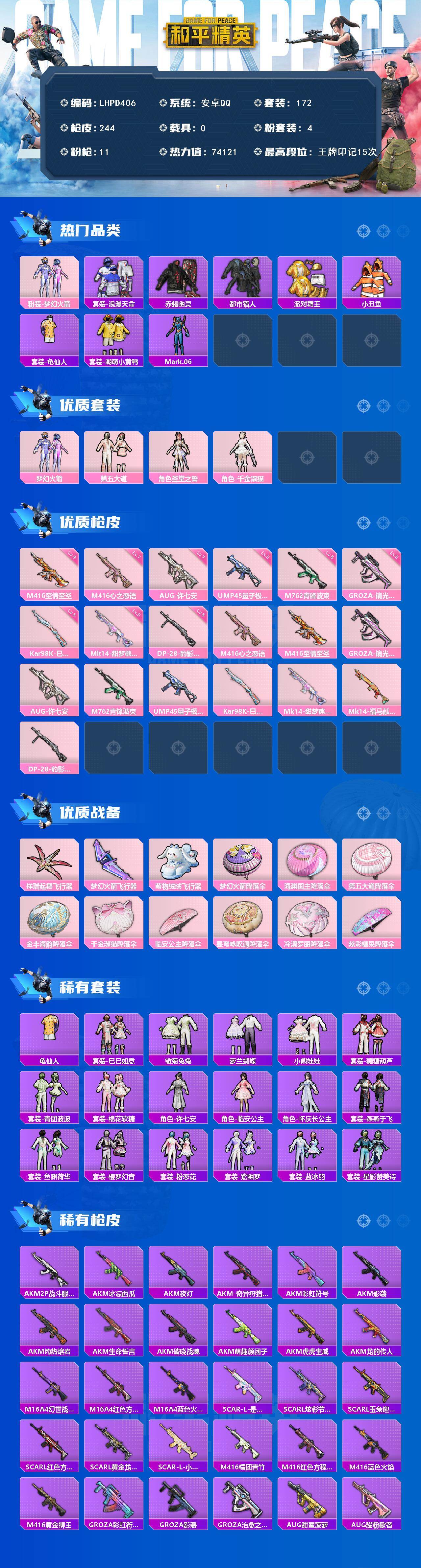 【特价出售/店主推荐】安卓 手Q-4粉装-11特效枪--3粉色飞行器-7.4w热力值-15王牌印记-172套装-244枪皮