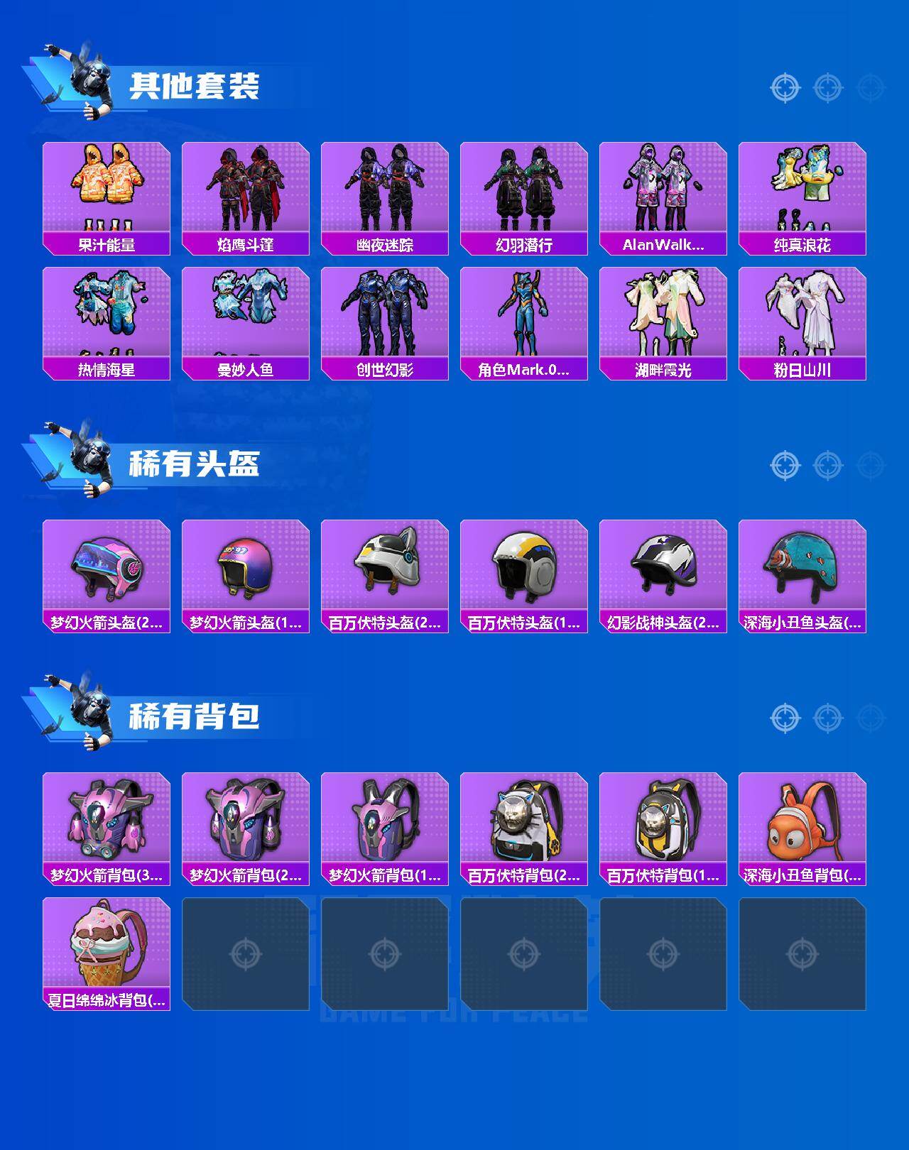 【热门品类】:粉装-梦幻火箭,套装-浪漫天命,套装-赤蝎幽灵,套装-都市猎人,套装-派对舞王,套装-小丑鱼,套装-龟仙人,套装-潮萌小黄鸭,角色-Mark.06