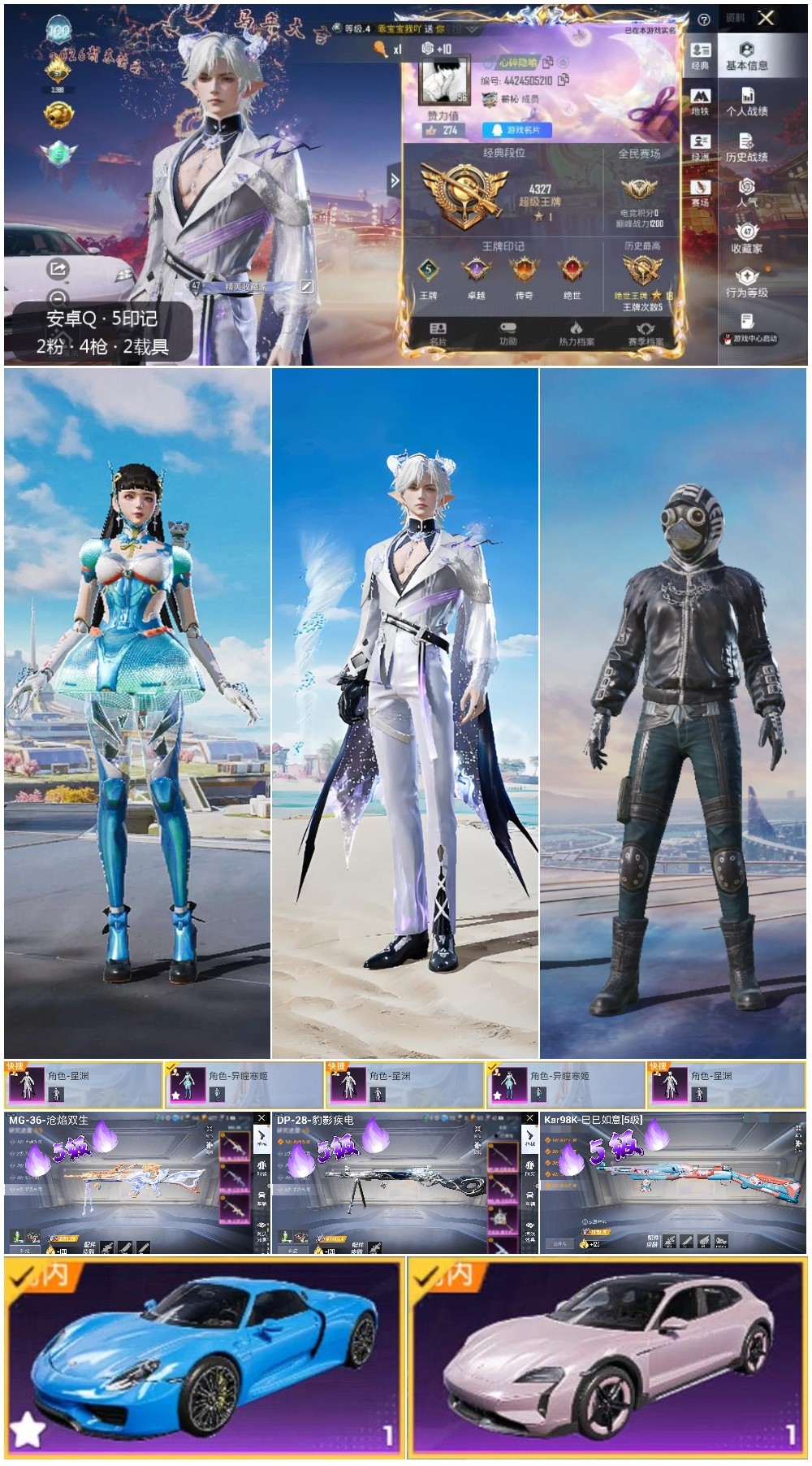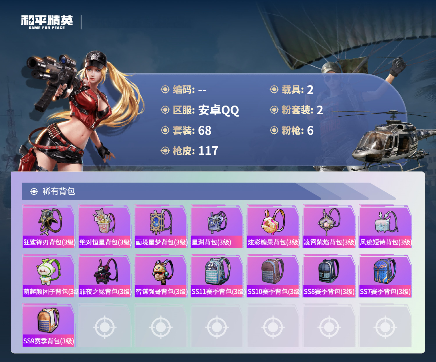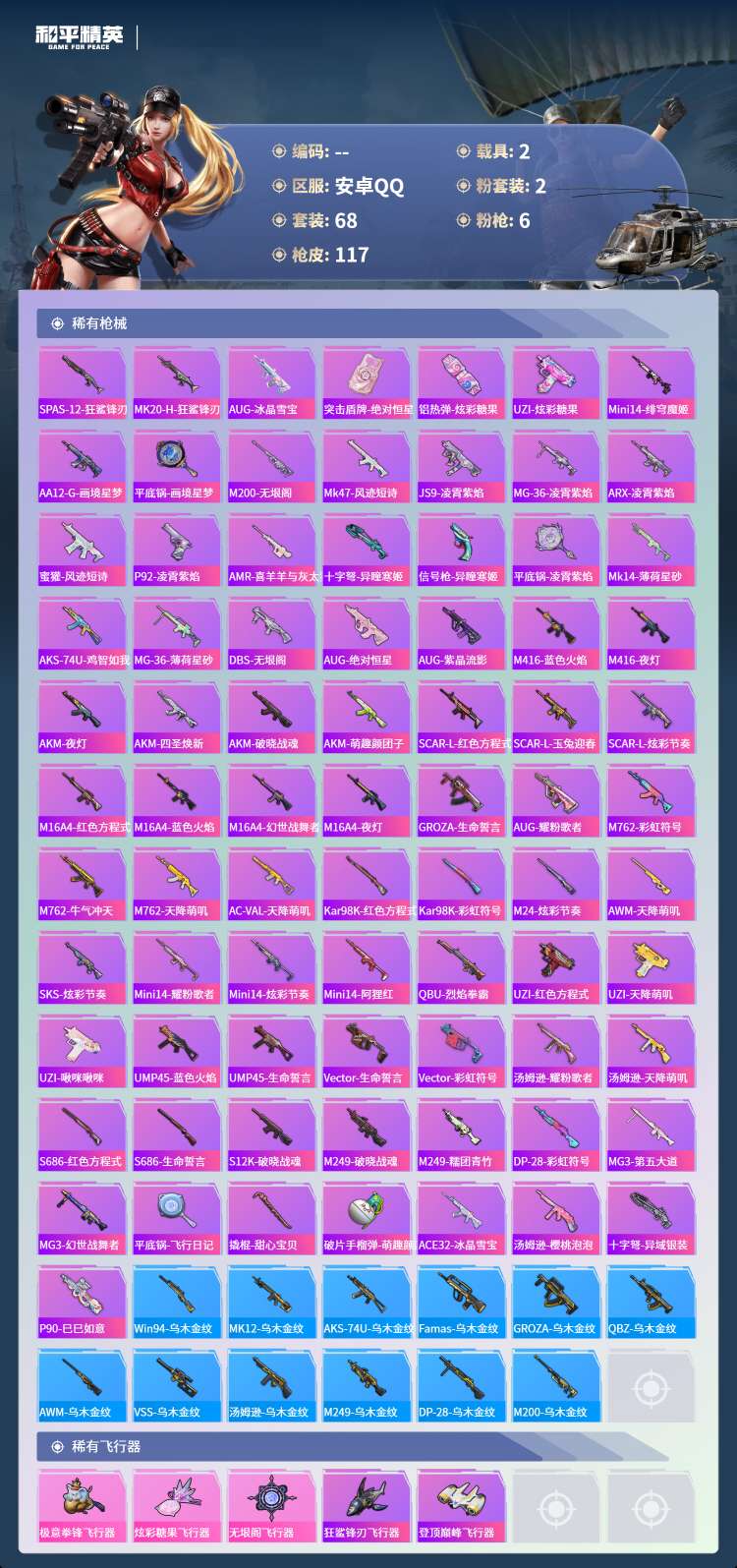 hs61868安卓手Q-5王牌印记-2粉装-6特效枪-2载具-34764热力值-68套装-117枪皮