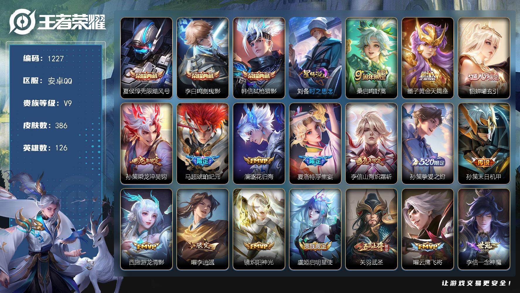 安卓Q-V9-126英-386皮-3典藏-22传说-120史诗【英雄全皮】墨