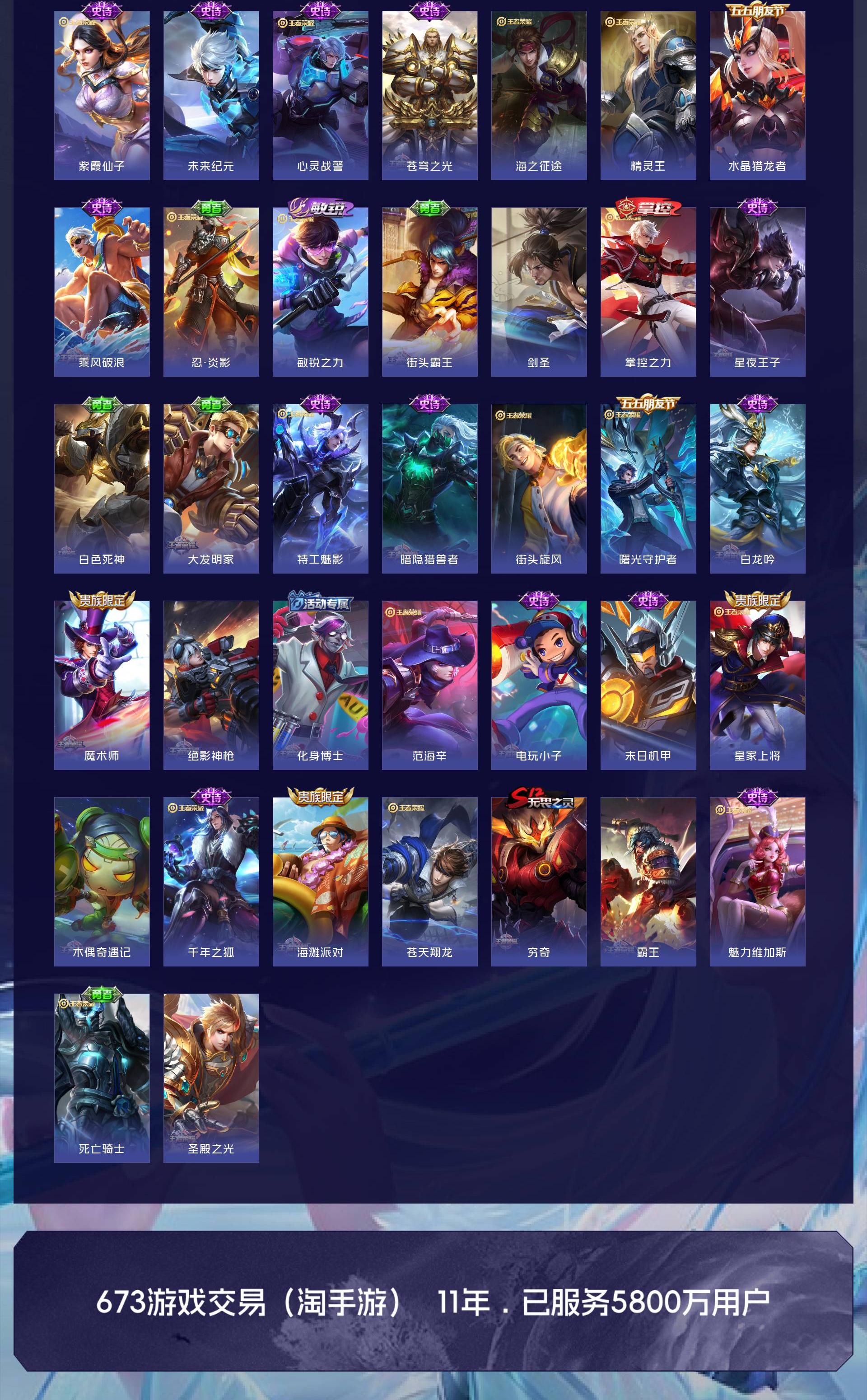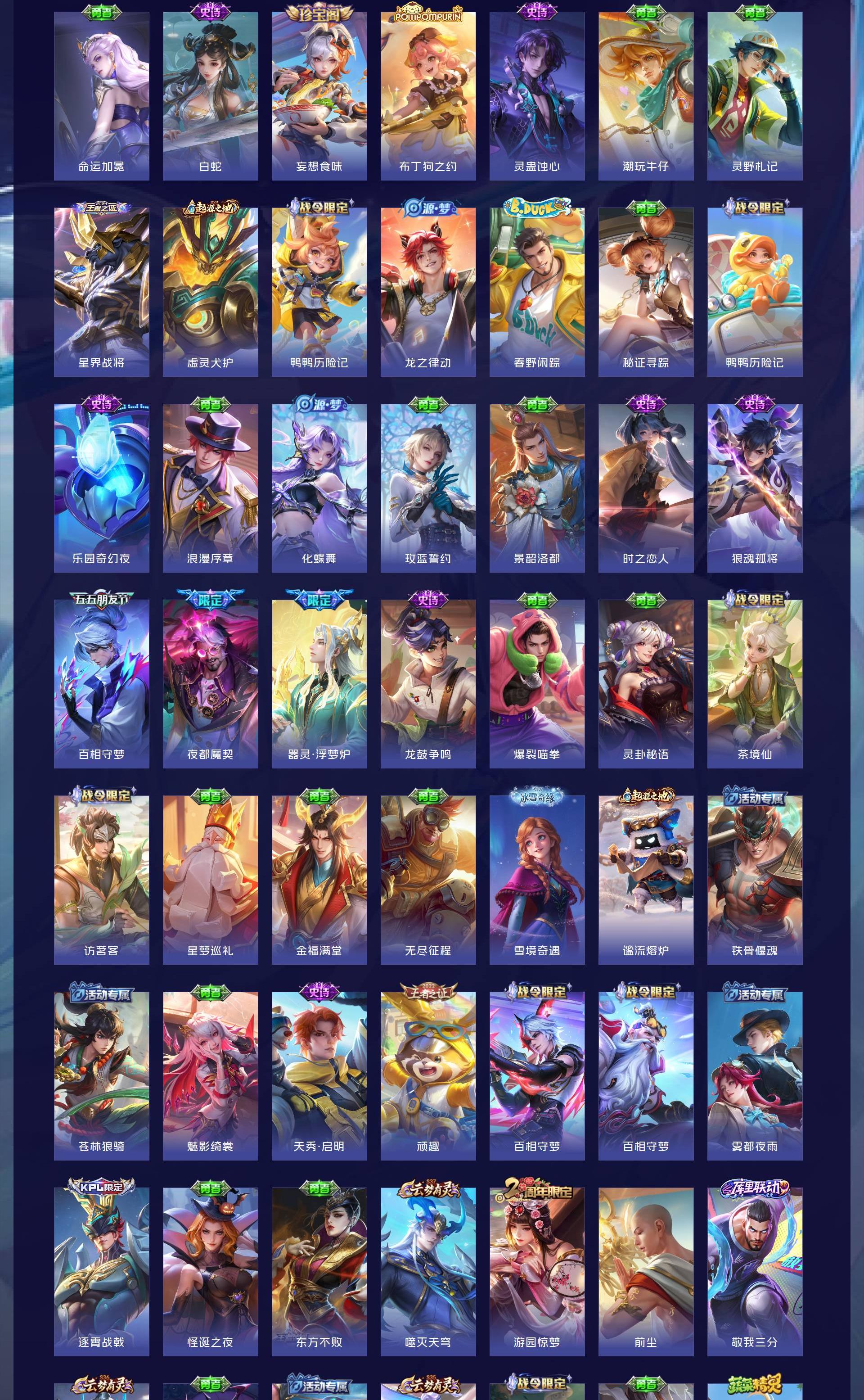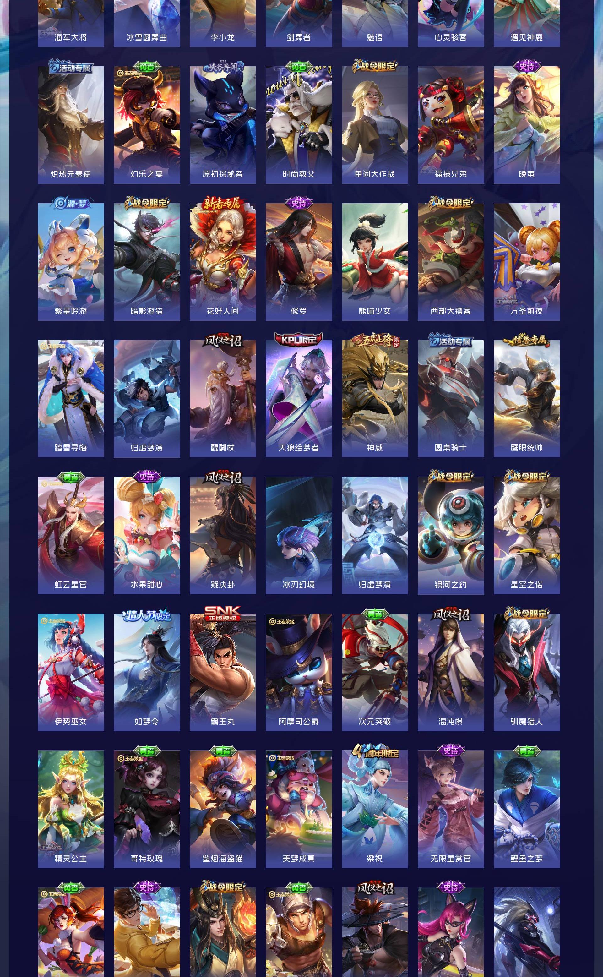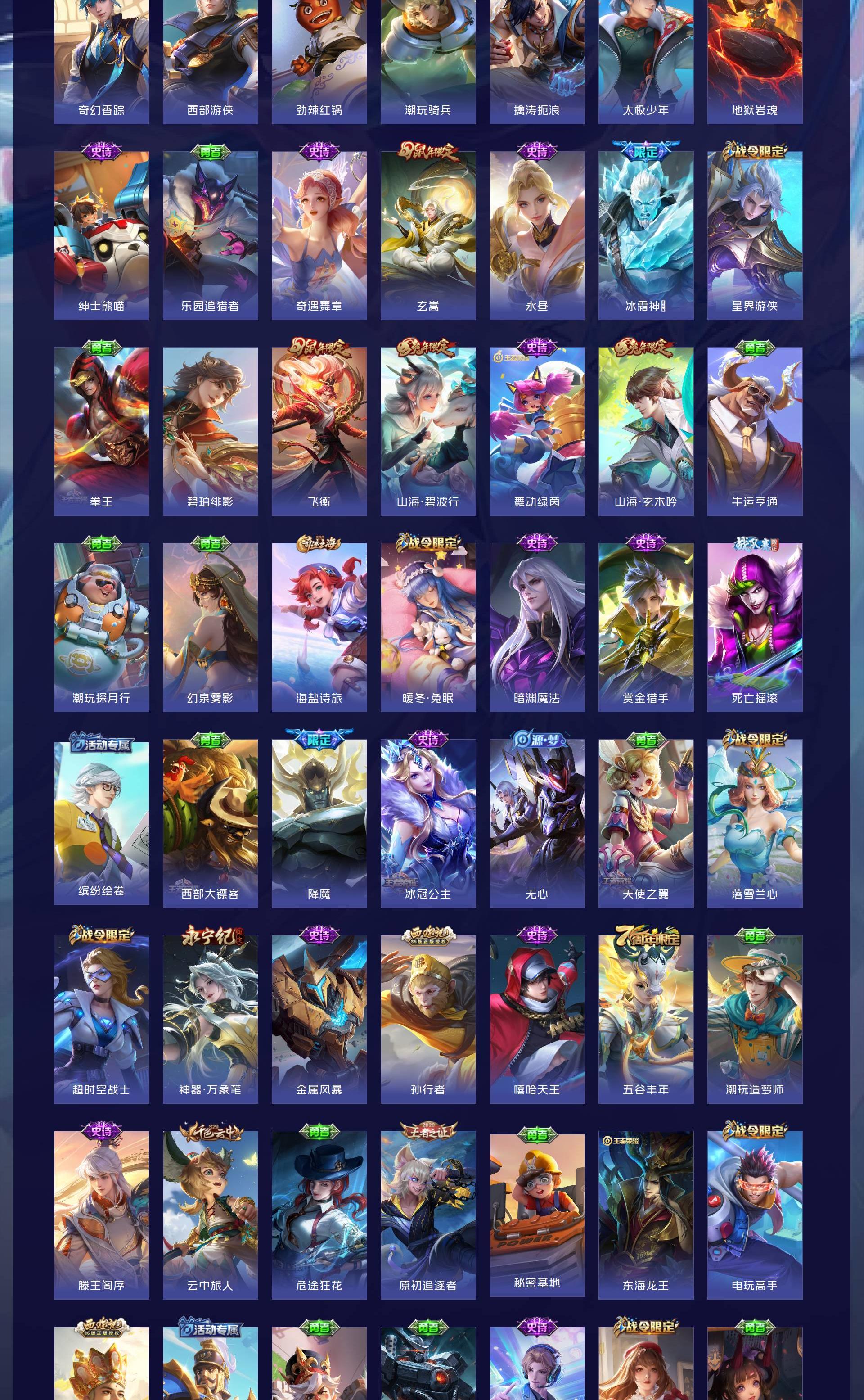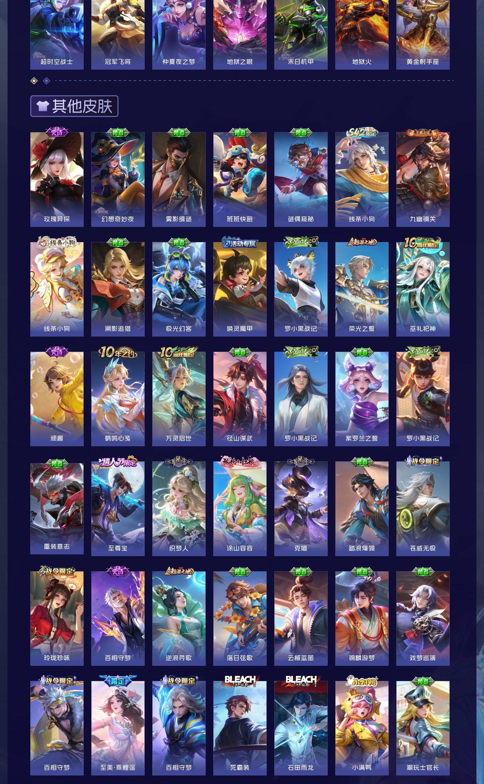 V10 皮肤501 至尊星耀 荣耀典藏5 无双皮肤3 珍品传说5 传说63 其他皮肤429