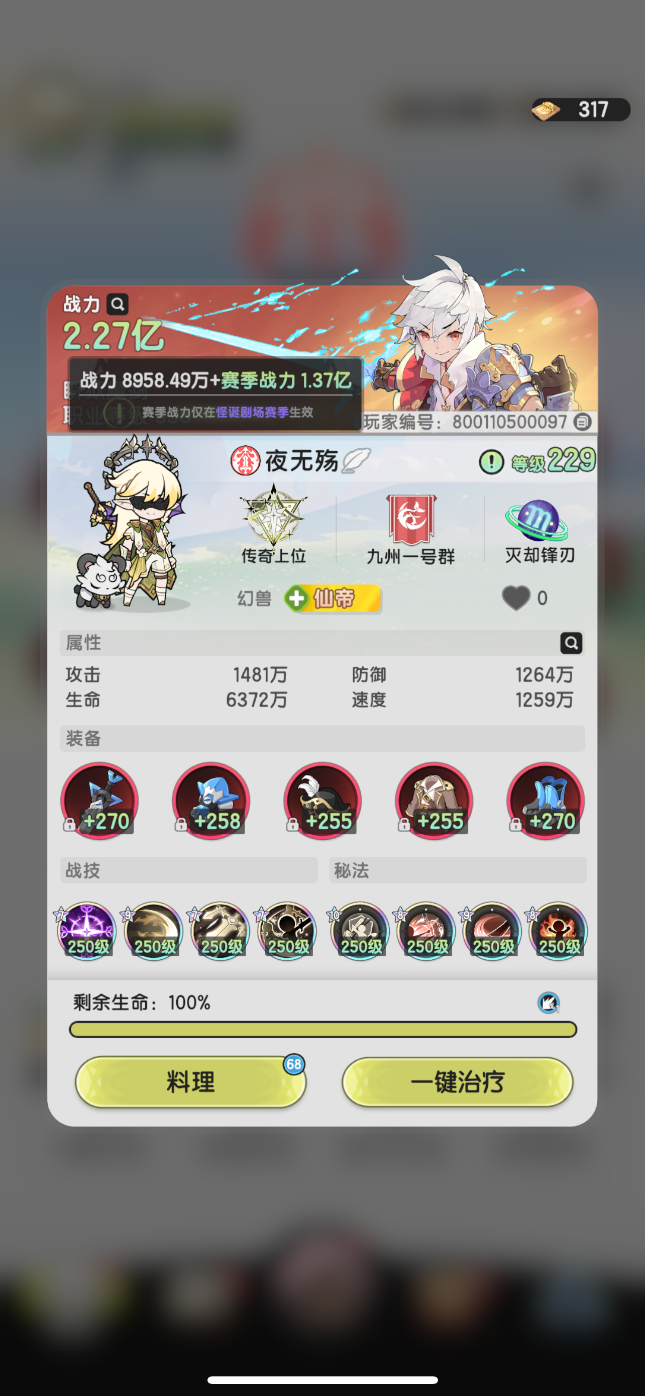 11w氪6转斗士,区服第一,两套装备,白值9100+