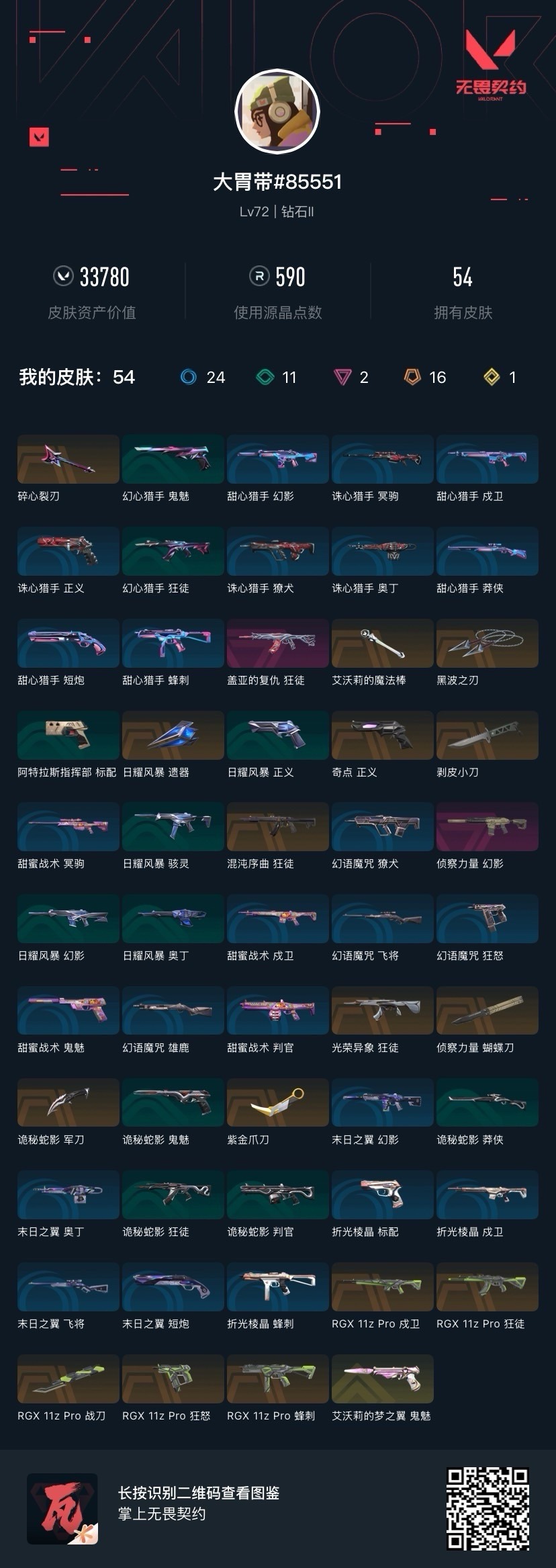 [17032363]16橙皮 1金皮 2紫皮 54皮肤 14英雄 74卡面 590已用源晶 钻石段位