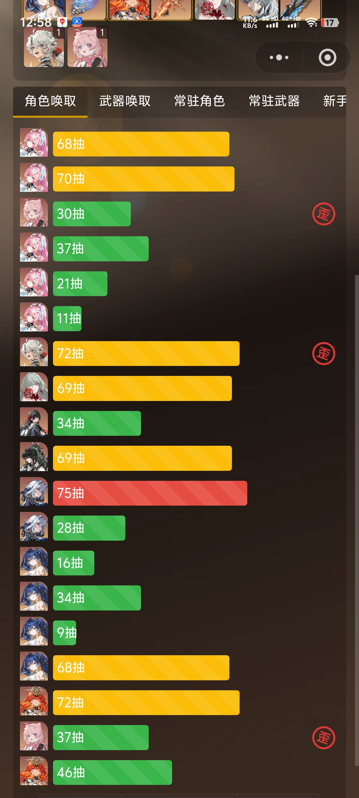 抽卡很欧,平均54抽出up角色,46抽出up武器
