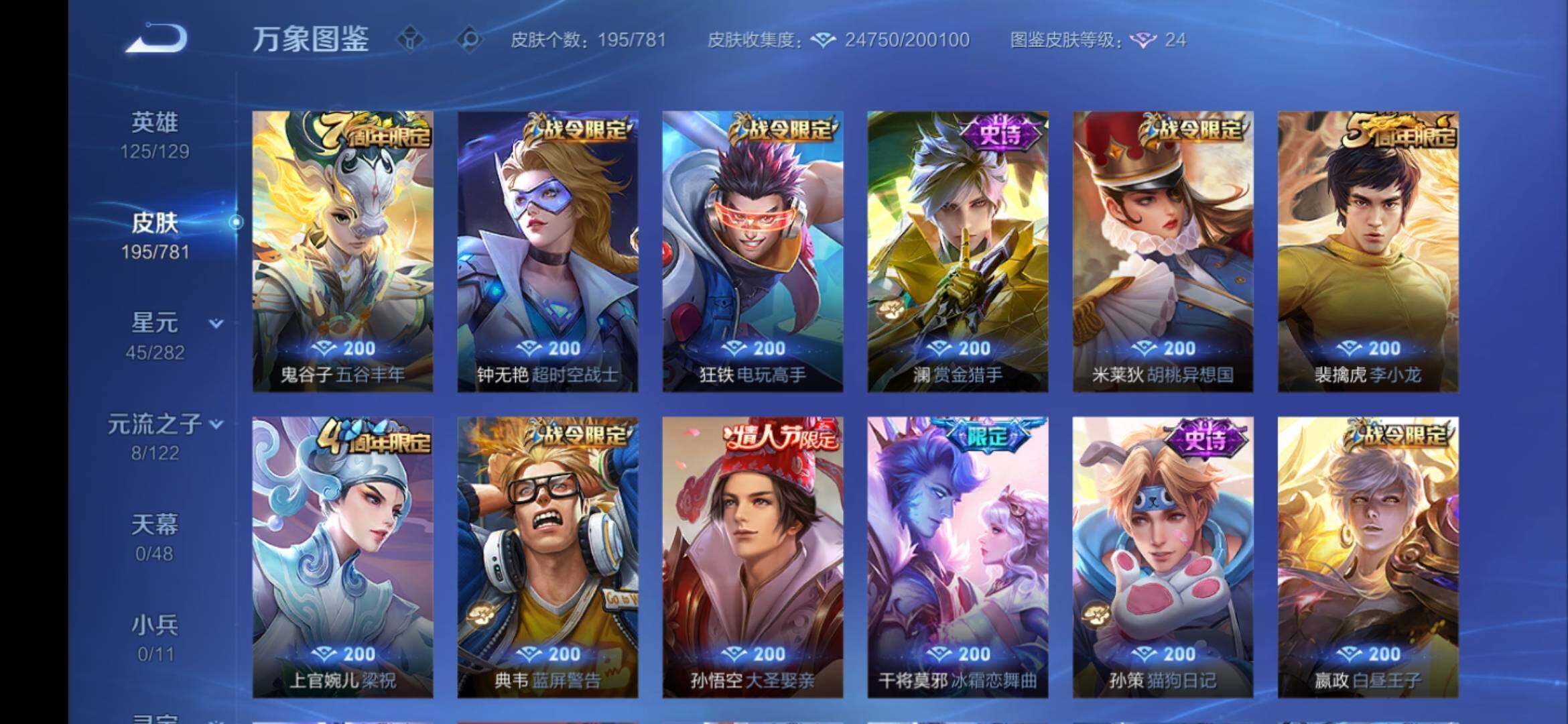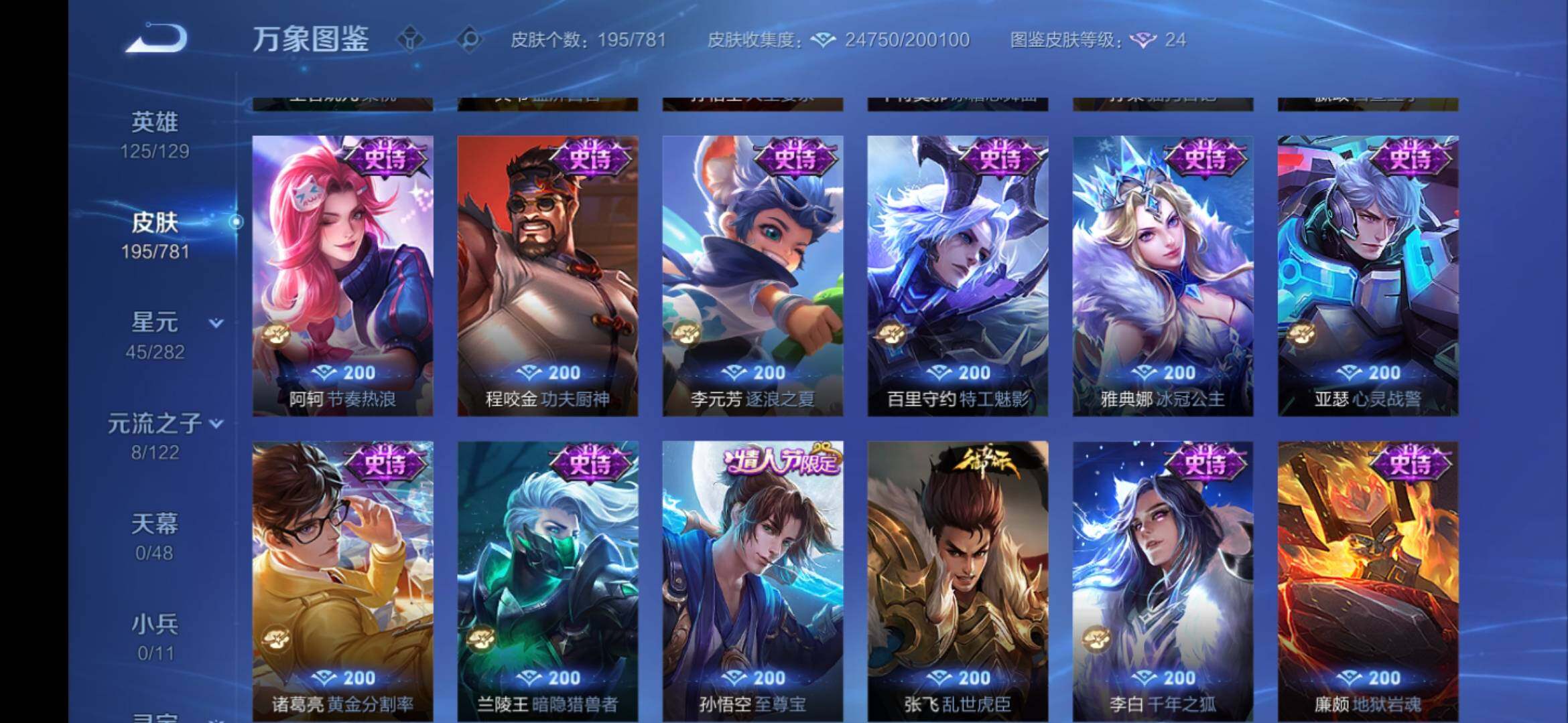 6/安卓Q-V8-124英雄-195皮肤-1典藏-10传说-38史诗