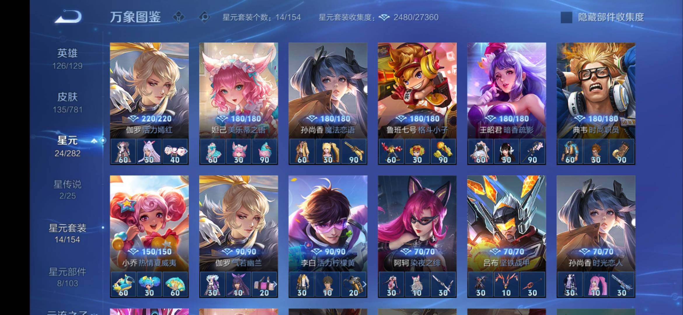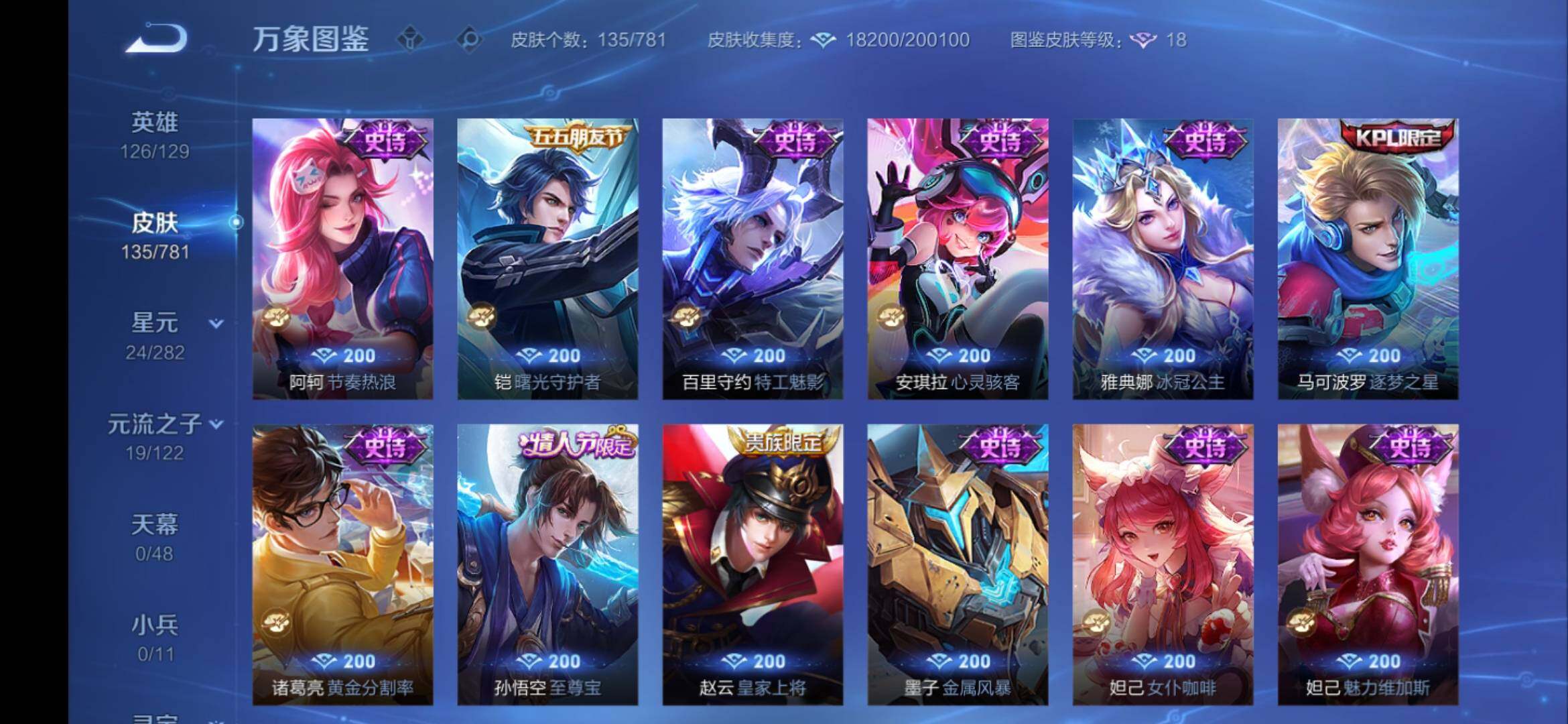 安卓Q-V6-126英雄-135皮肤-1典藏-2星传说皮肤-4传说-35史诗