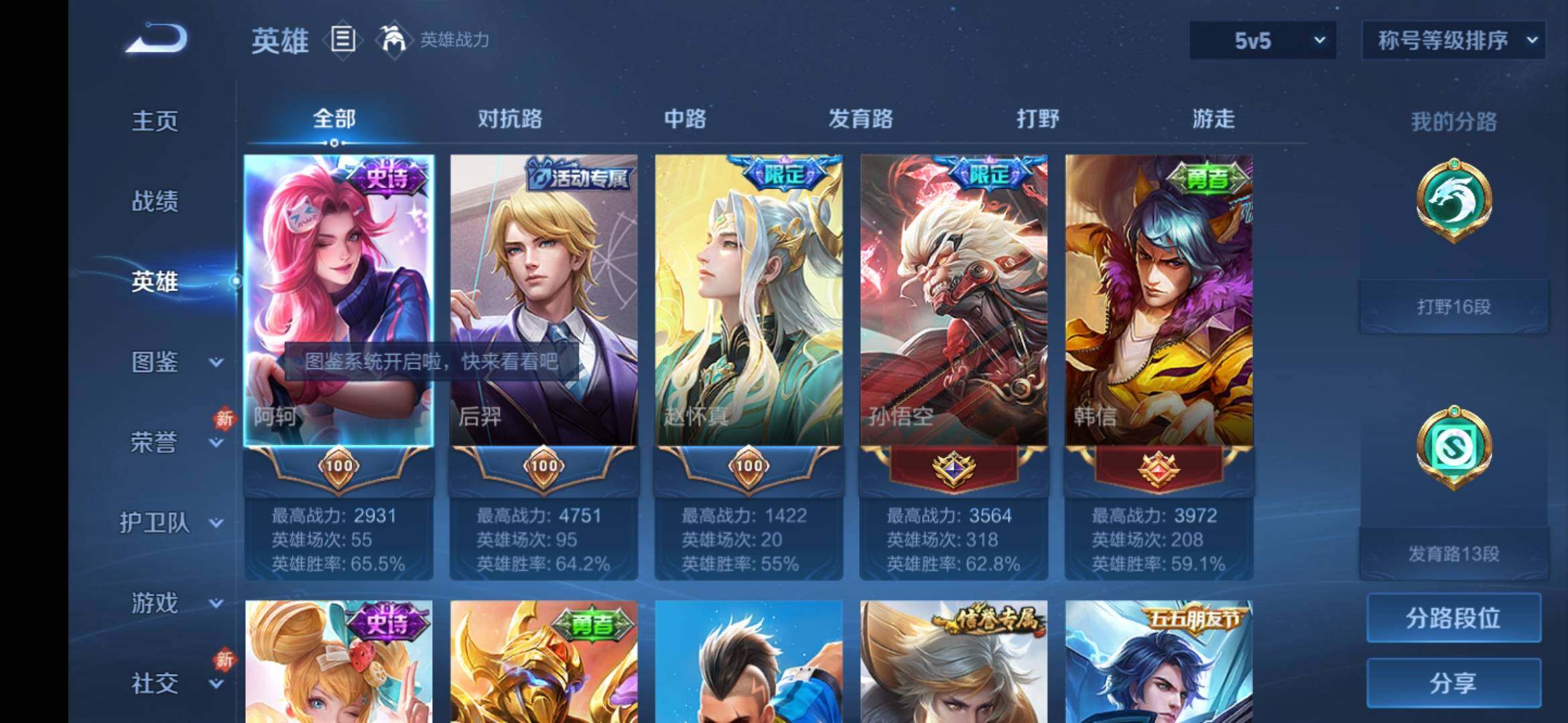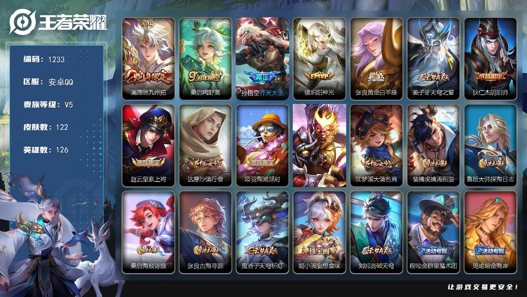 /打野号-安卓Q-V5-126英雄-122皮-5传说-22史诗