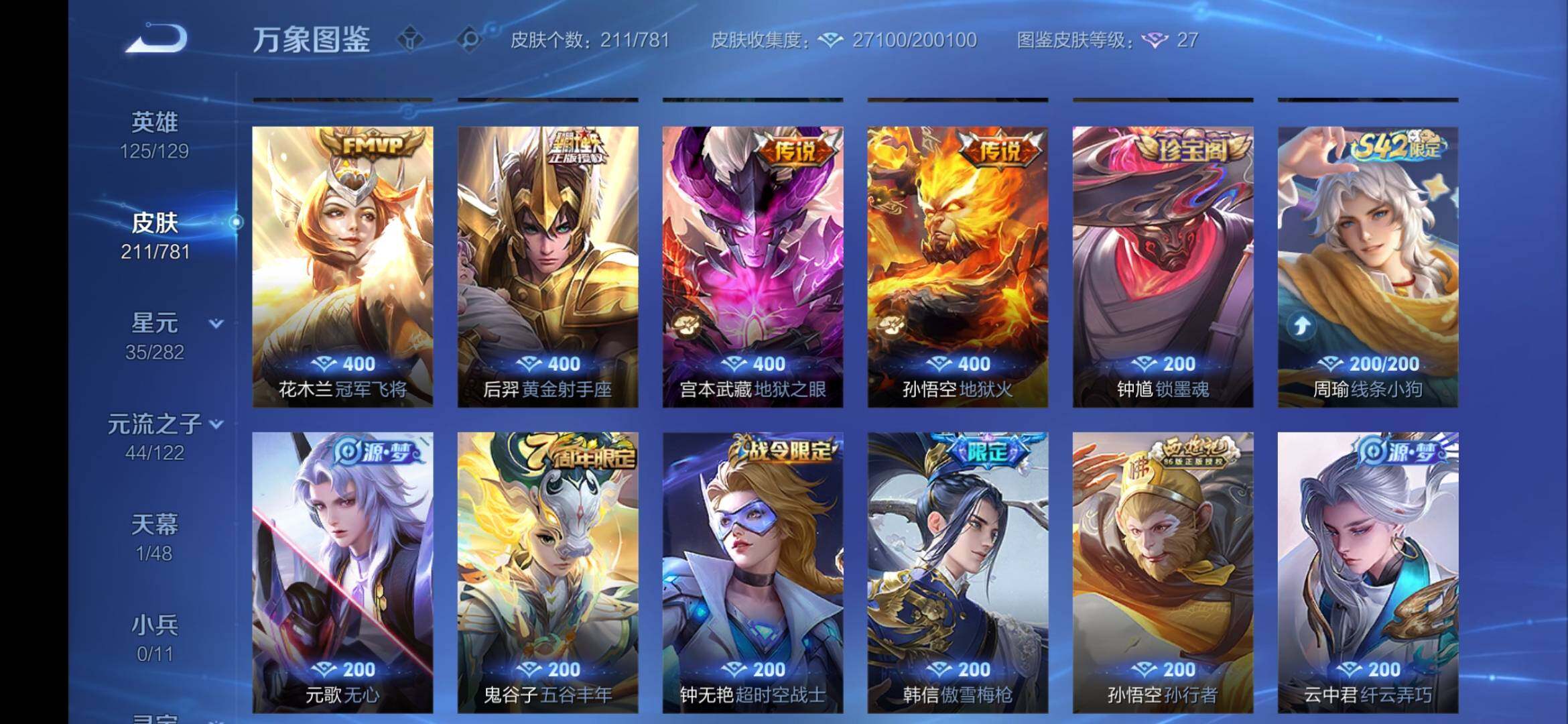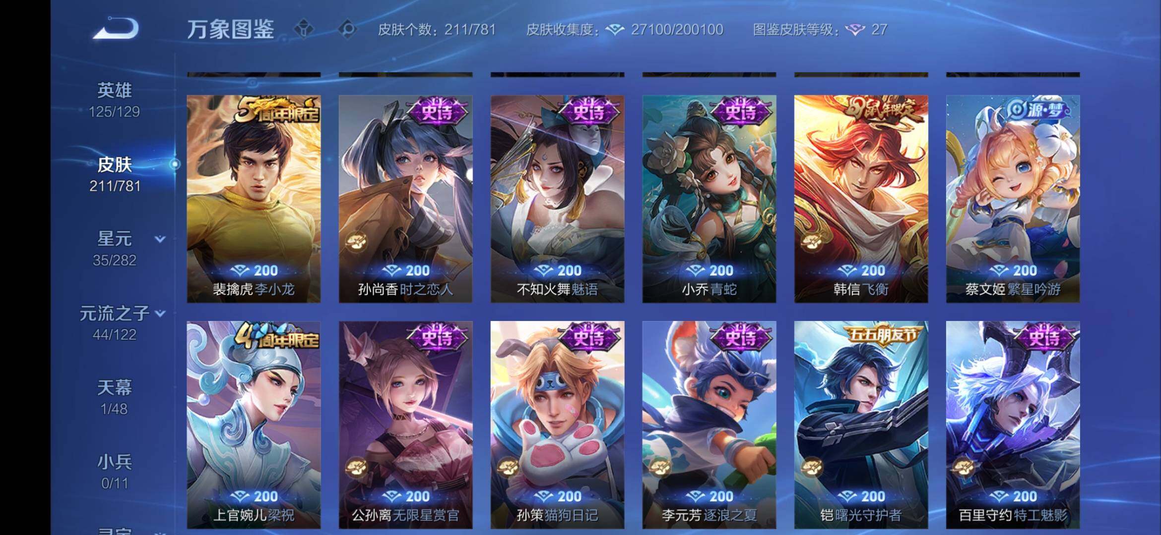 安卓Q-V7快V8了-125英雄-212皮肤-16传说-39史诗