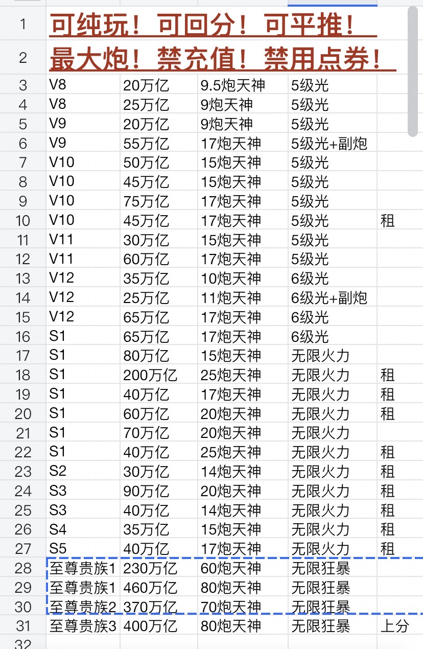 至尊贵族1无限火力230万亿纯玩,上分可回。 选号先咨询
