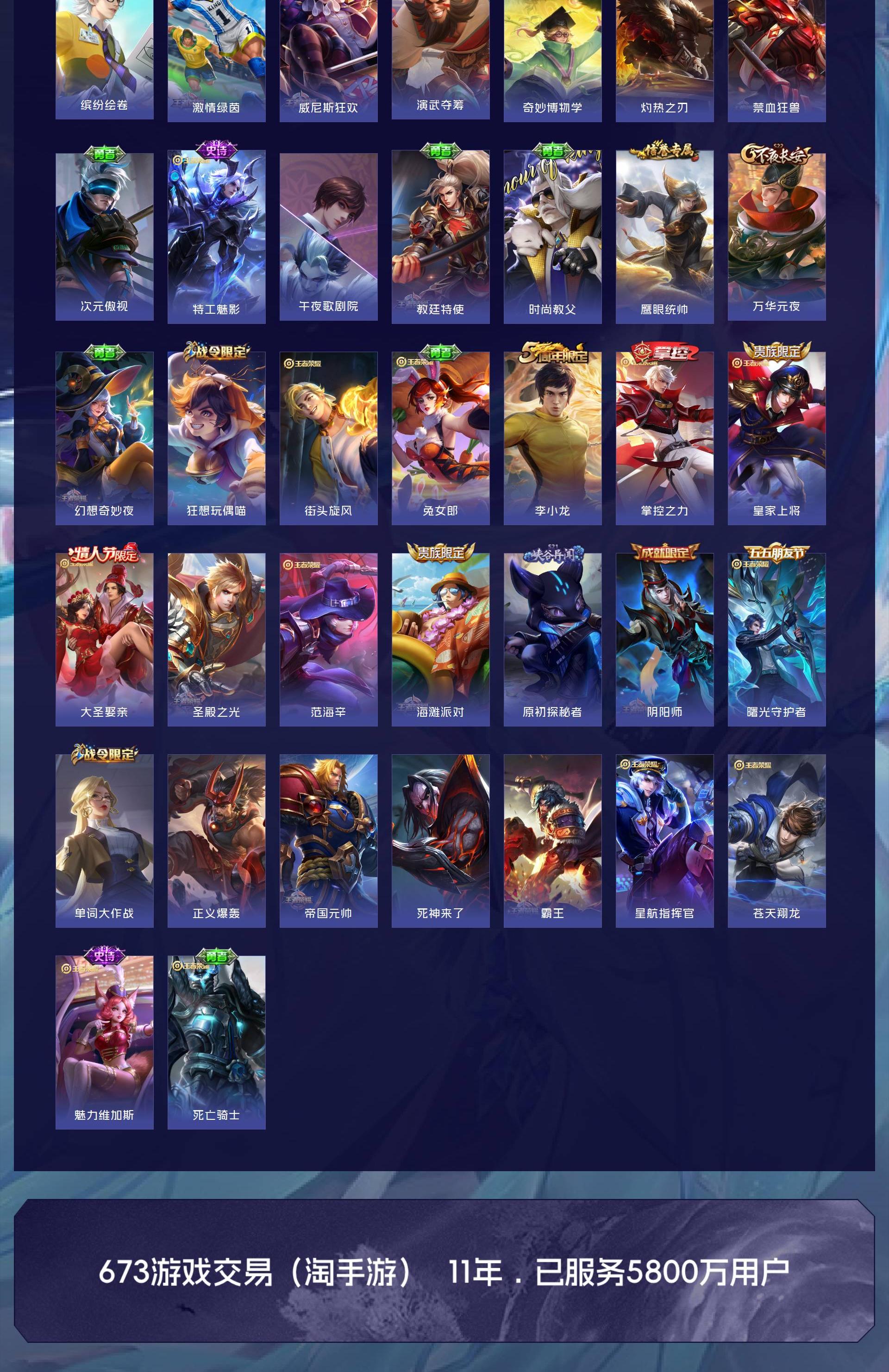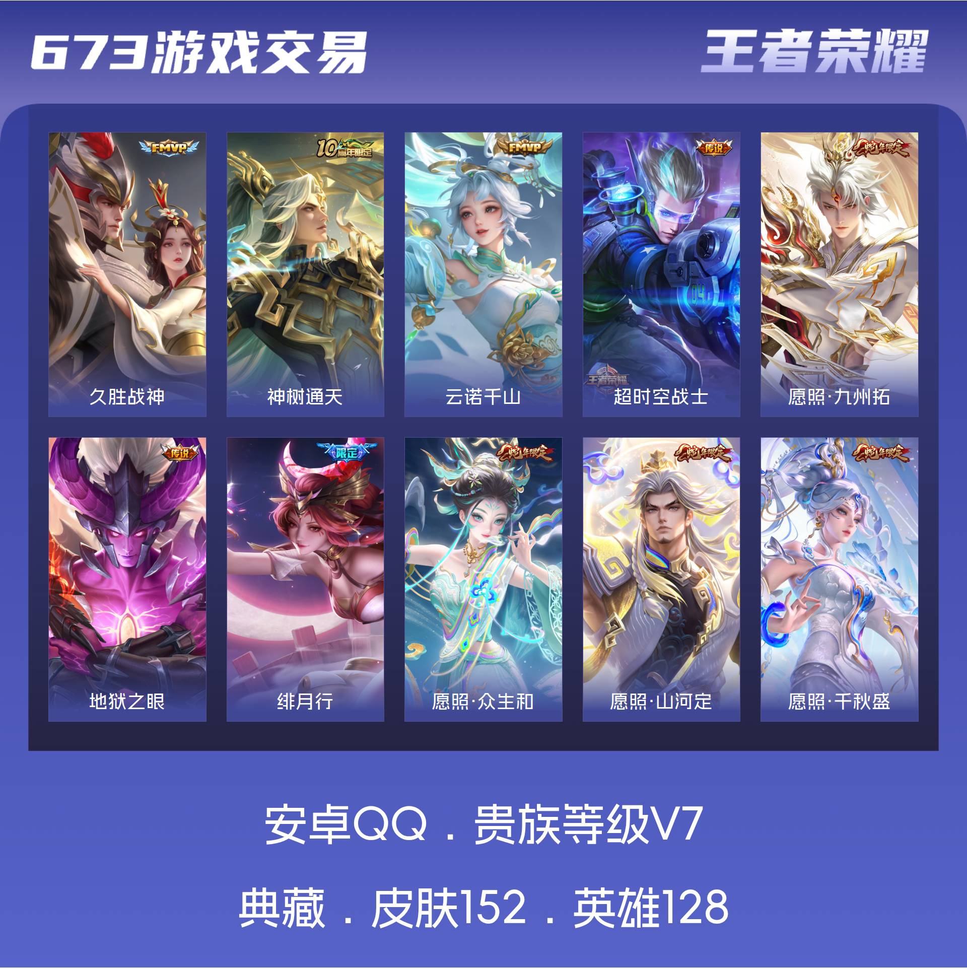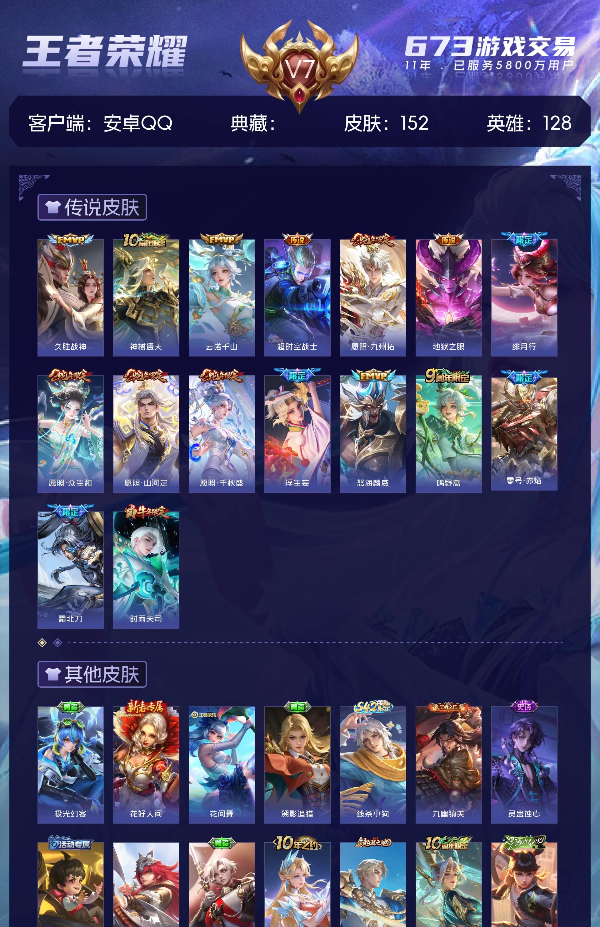 V7 皮肤152 英雄128 非凡王者 星传说1 传说16 其他皮肤142