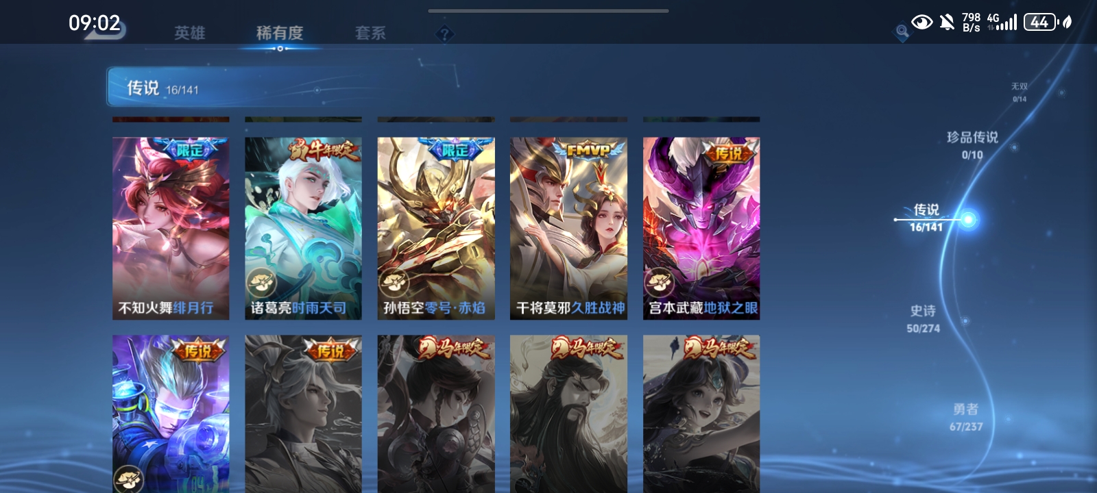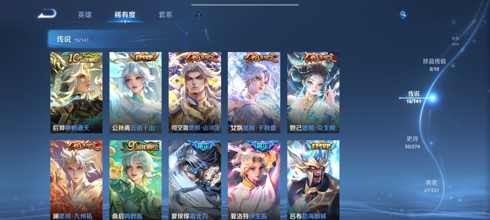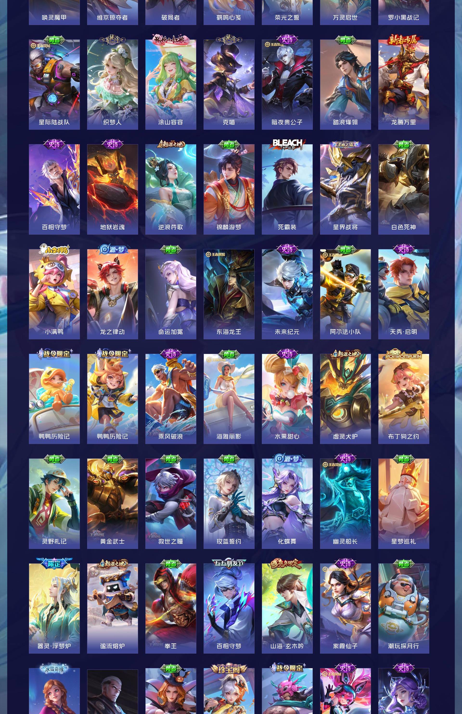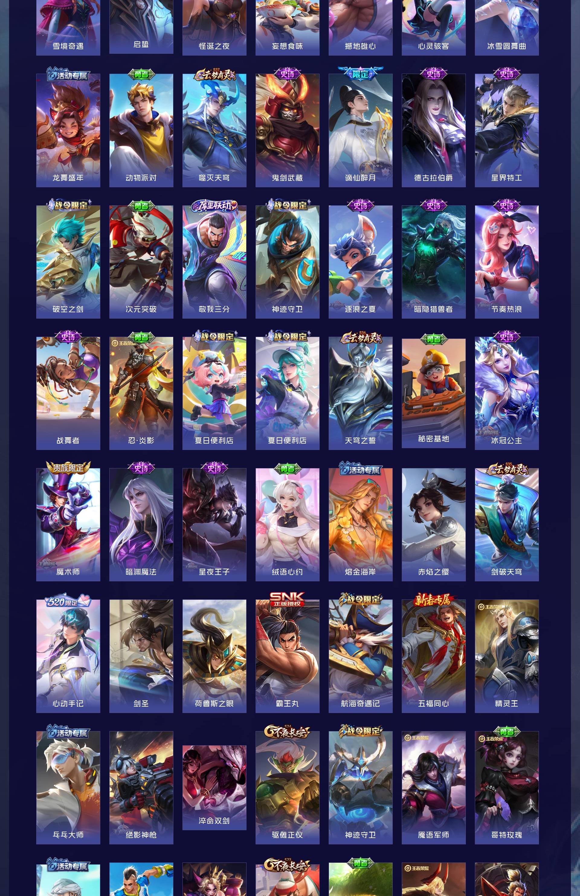 V7 皮肤152 英雄128 非凡王者 星传说1 传说16 其他皮肤142