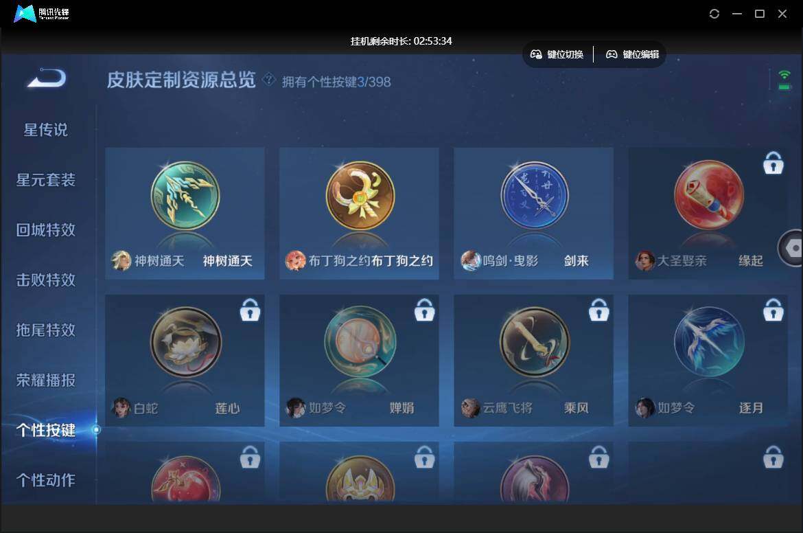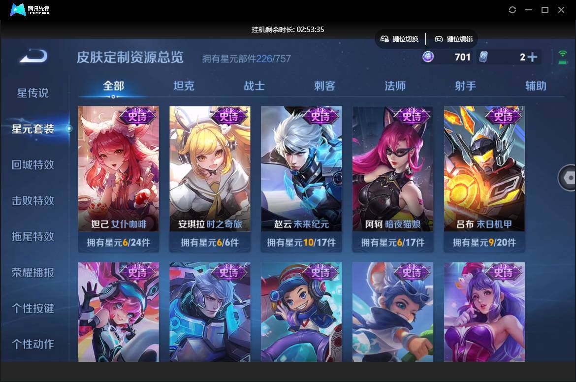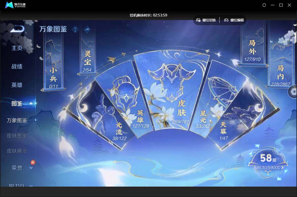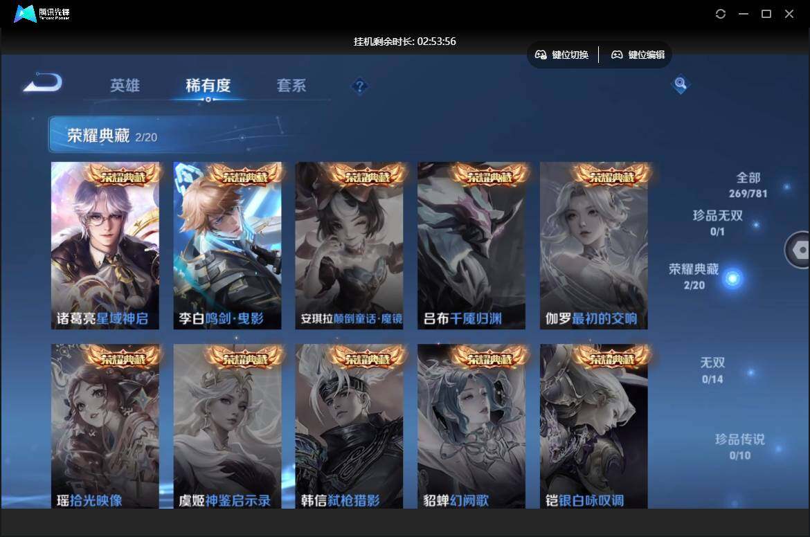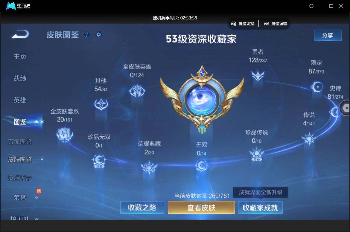 【W5690】 爆款臻稀皮肤:鸣剑曳影-星域神启-至尊宝-久胜战神-胖达荣荣-超时空战士】安卓q-有二次-贵7-127英雄-269皮肤-2典藏-4传说-87限定-1天幕-3按键-贵族积分3.1w