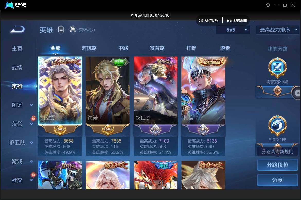 【W5692】【对抗35段-打野31段】营地ID:59644672【爆款臻稀皮肤:弑枪猎影-寅虎赤拳-马超琥珀纪元-至尊宝-愿照山河定-愿照九州拓-山海炽霜斩-深海之息-启明星使-齐天大圣-千山共赴-玄雷天君-神器狴犴令-山海玄木吟-御风骁将-青龙志-朱雀志】苹果q-无二次-贵8-128英雄-289皮肤-1典藏-4星元-22传说-98限定-1天幕-11按键-贵族积分6
