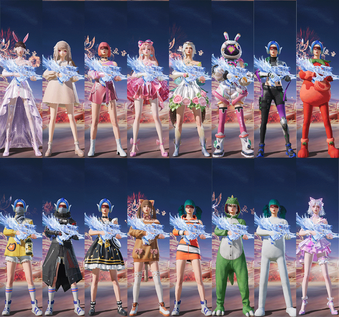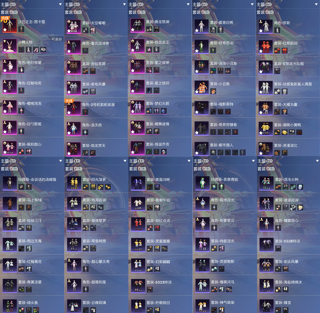AUG星梦奇缘7级图卡盟1级4车19枪22粉至情至圣7级红螳螂小丑洛天依梦幻火箭白芍歌姬都市追光队服小番茄哥特胖达头粉熊灰熊背包全