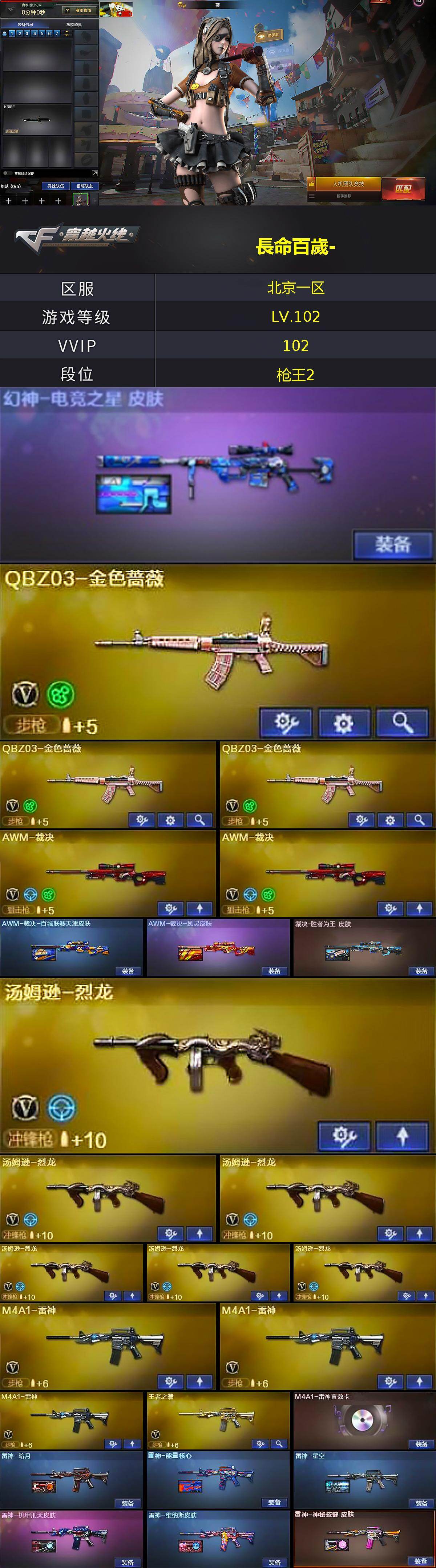 北京一区-109V-14王者武器数-5炫金武器数【热门武器】:QBZ03-金