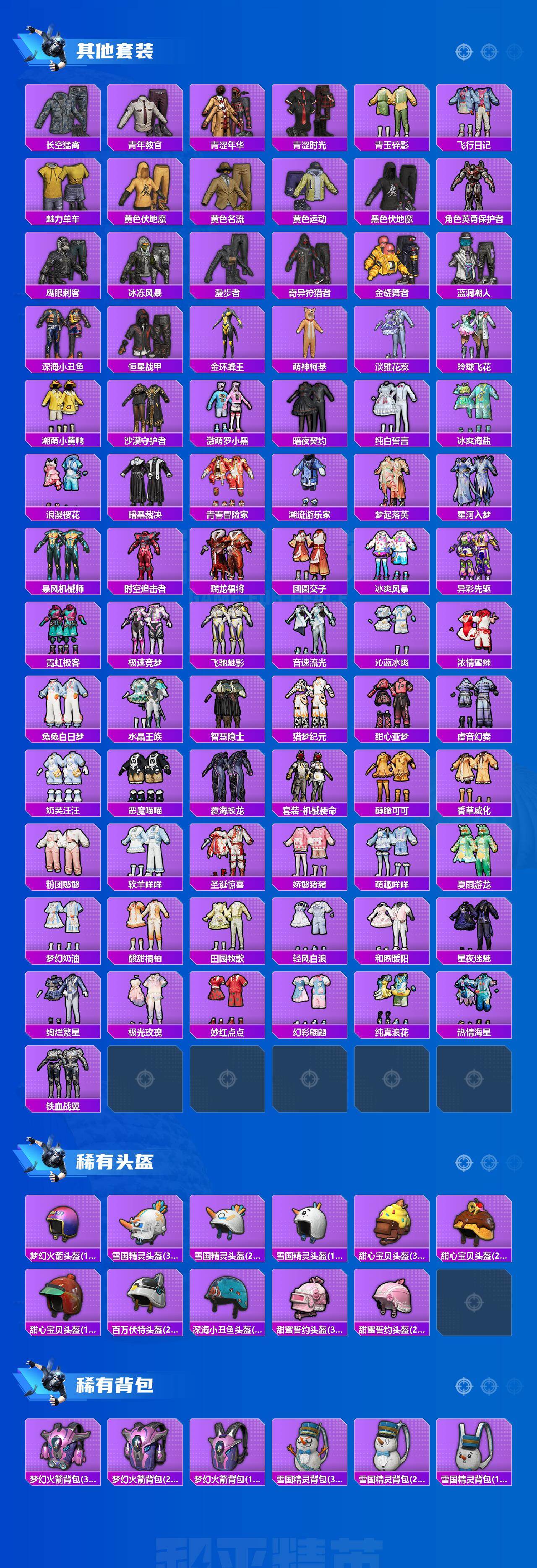 【热门品类】:粉装-雪国幻梦,粉装-梦幻火箭,粉装-童趣迷兔,粉装-缤纷油彩,套装-浪漫天命,套装-都市猎人,套装-深海小丑鱼,套装-奇异狩猎者,角色-军刀雅典娜,套装-胖达圆圆,套装-金羽特工,套装-沙漠守护者,套装-动感兔斯基人偶服,套装-潮萌小黄鸭,套装-
