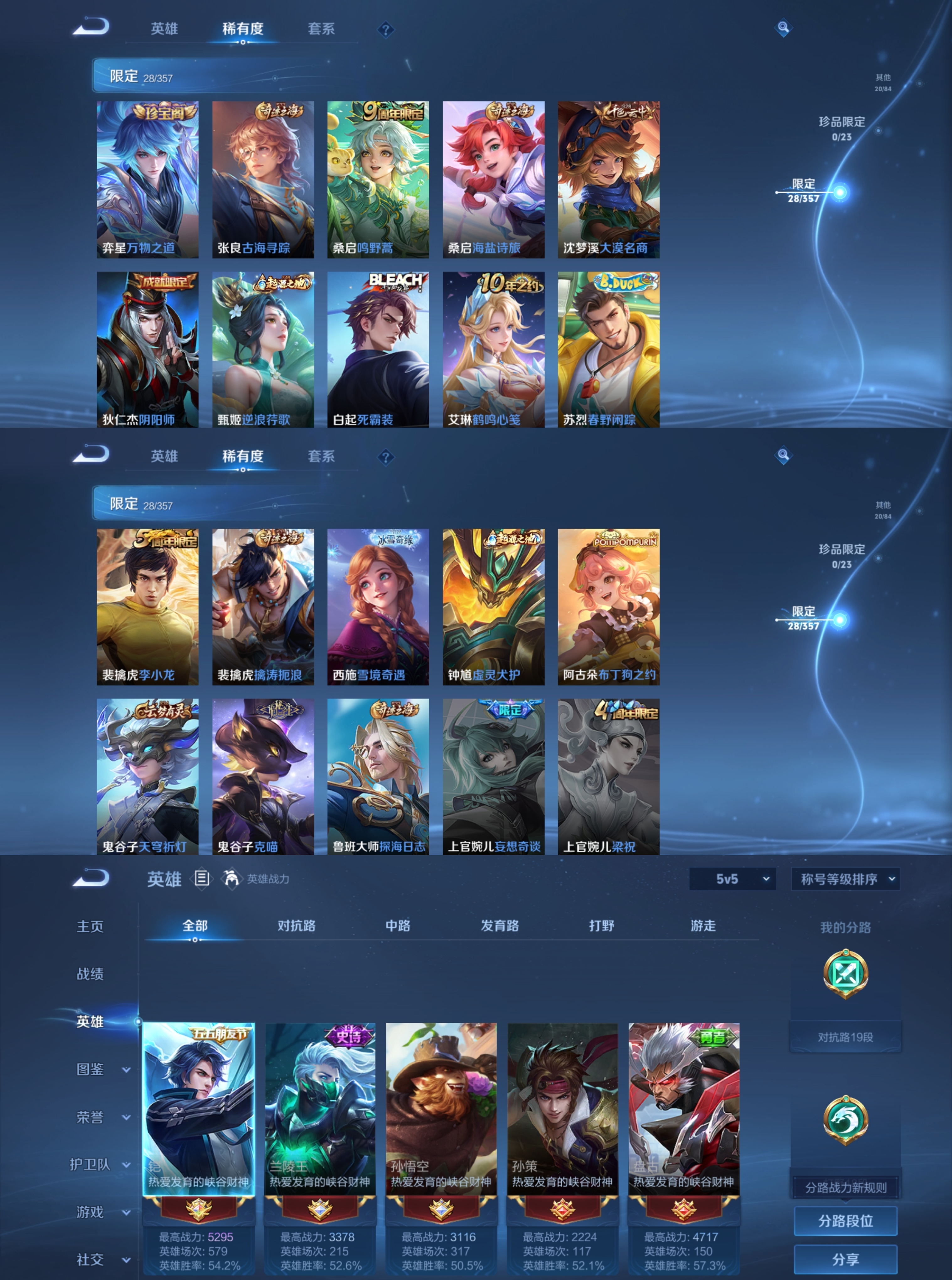 DD447【2传说2太阳Q32级】安Q-V2-108皮肤 124英雄 2传说(可二次)【传说】神树通天 鸣野蒿 5王者印记 发育路10段 对抗路19段 打野18段