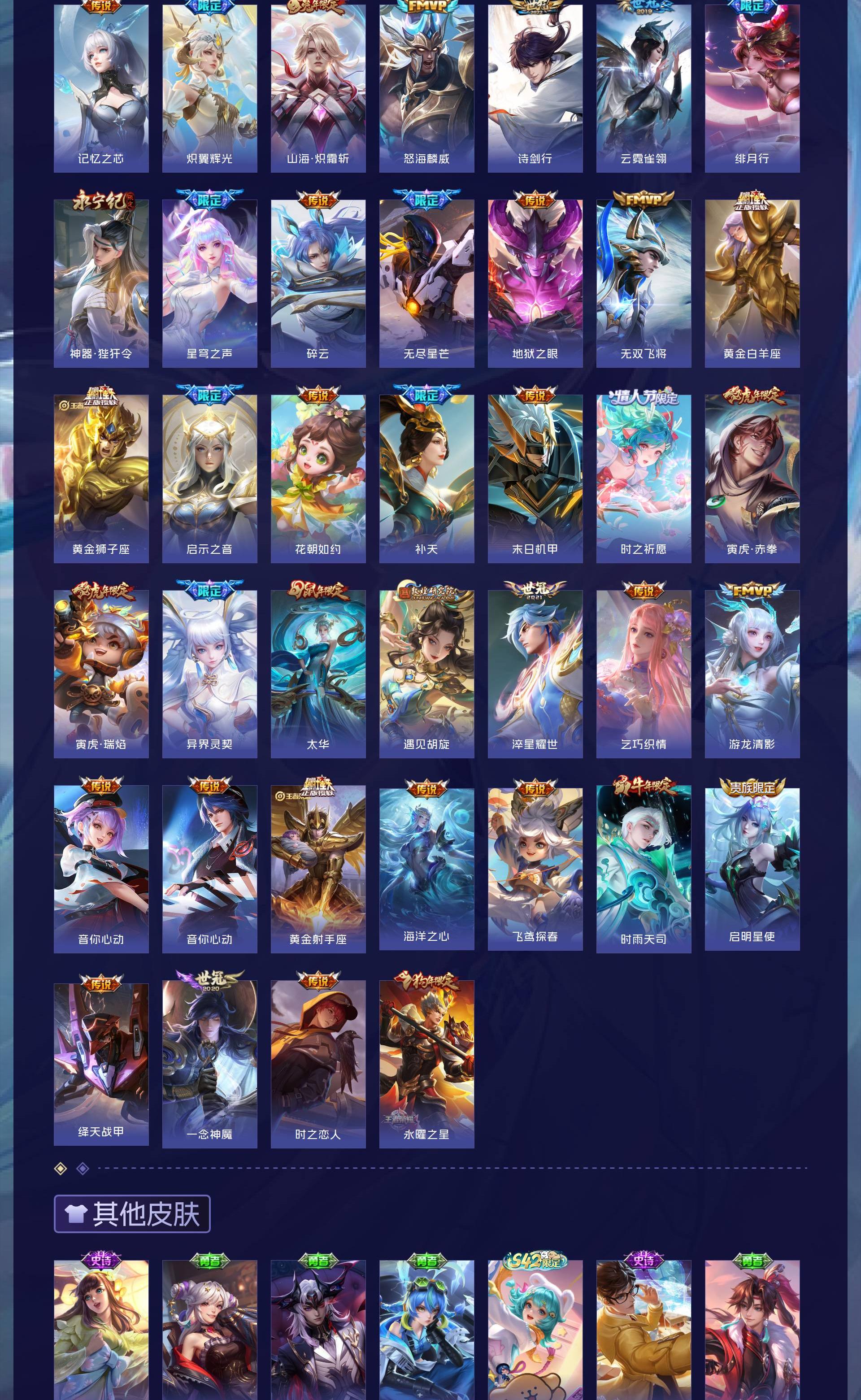 V10 皮肤464 英雄129 至尊星耀 荣耀典藏4 传说68 其他皮肤395