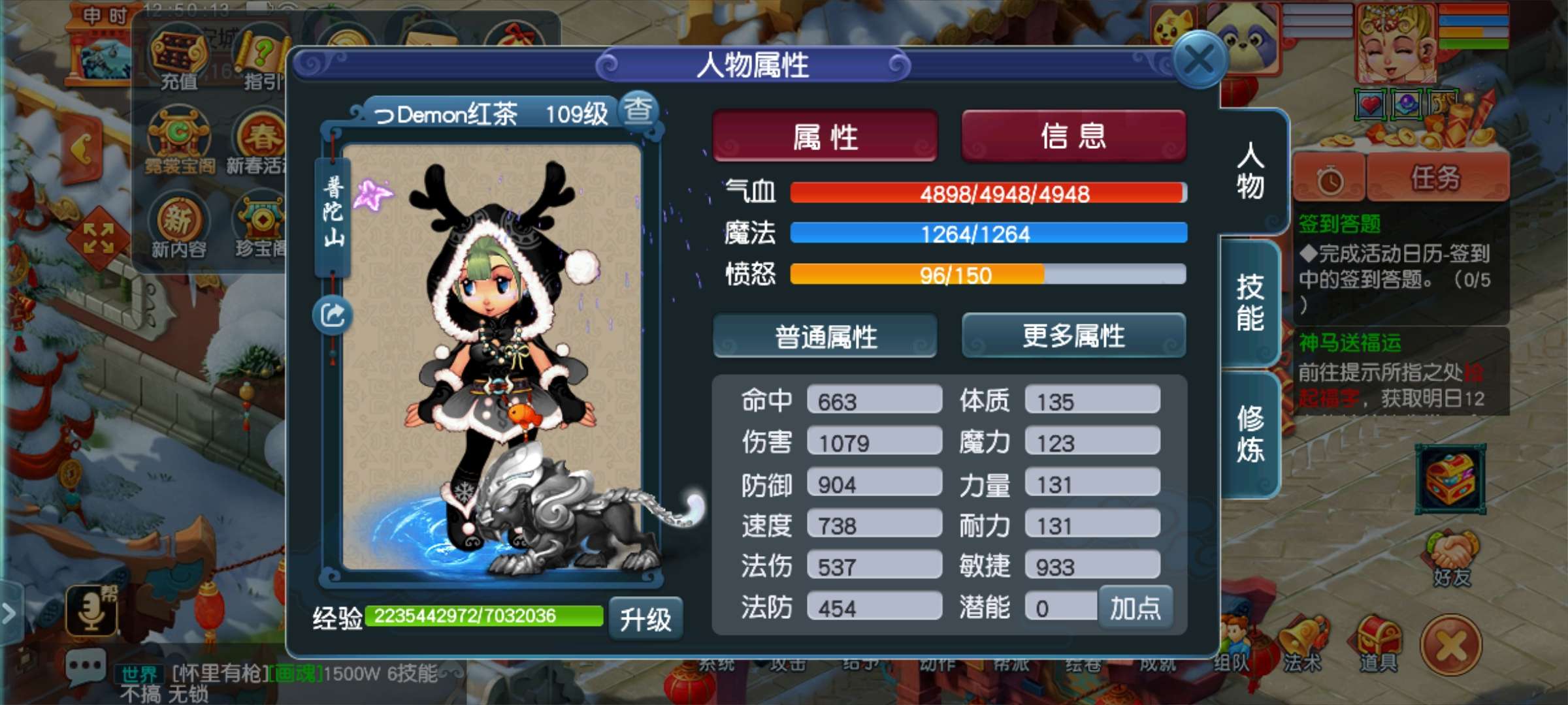 109满修满技能普陀山,装备一套,上手可玩,***技能优秀,经验存了22亿,月卡时间还剩90小时