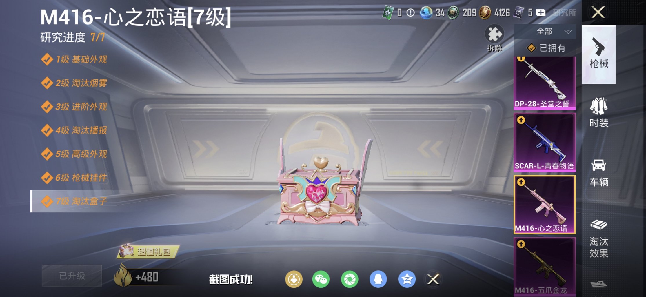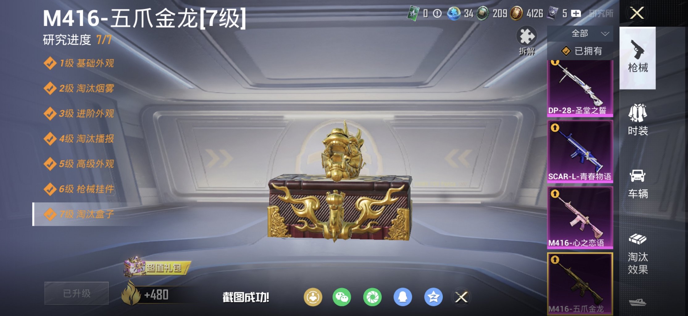 都市男神绚金战神满级M4五爪金龙心之恋语12特效枪9粉装1载具身法素材号