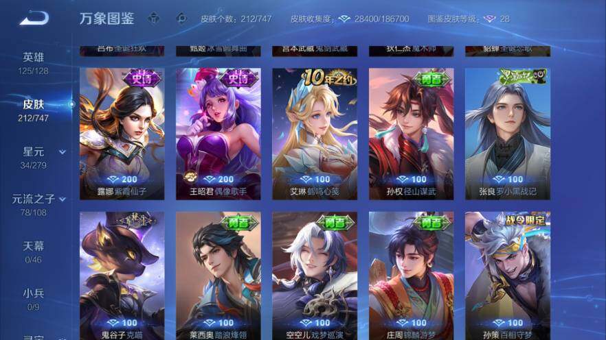 【英雄全皮】孙权全皮,蒙恬全皮,空空儿全皮,影全皮,少司缘全皮