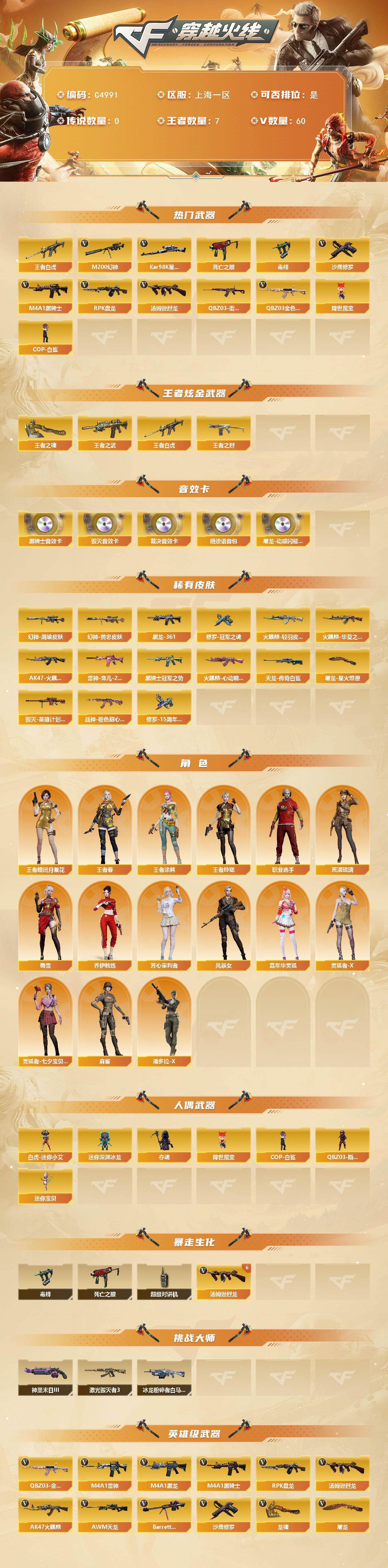 【C4991】上海一区-63V-7王者武器数-0炫金武器数