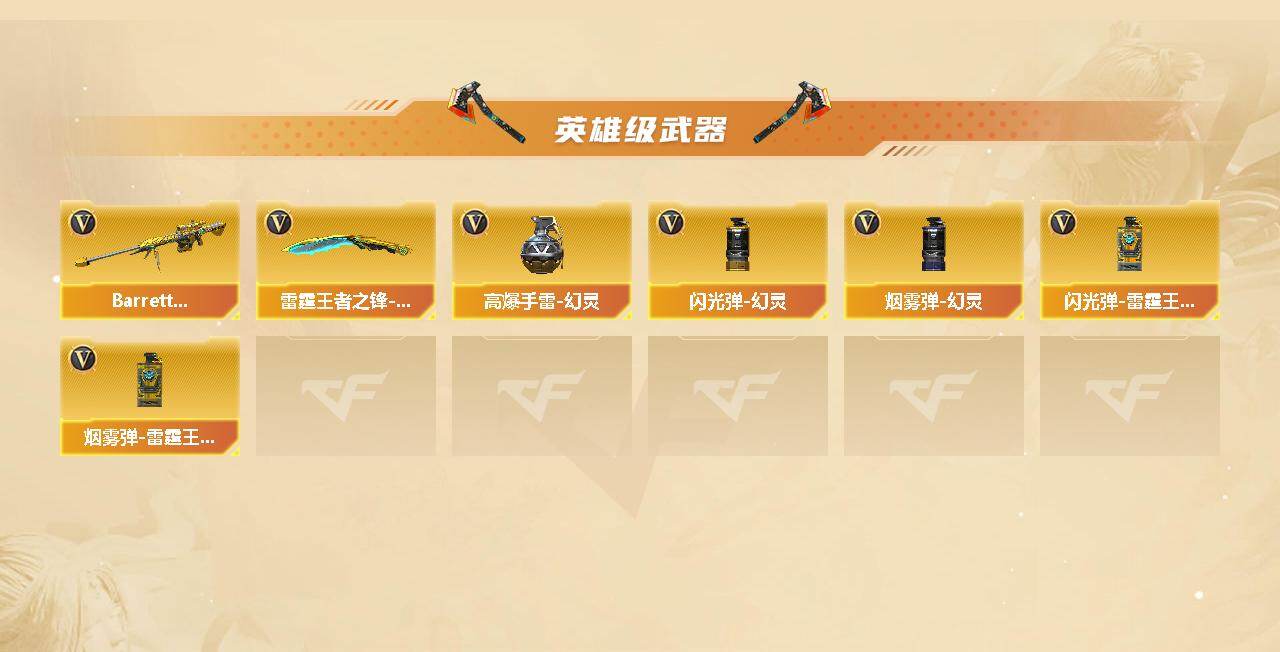 【王者炫金武器】:王者雷怒,王者之魄高爆手雷*2,王者之魄闪光弹*2