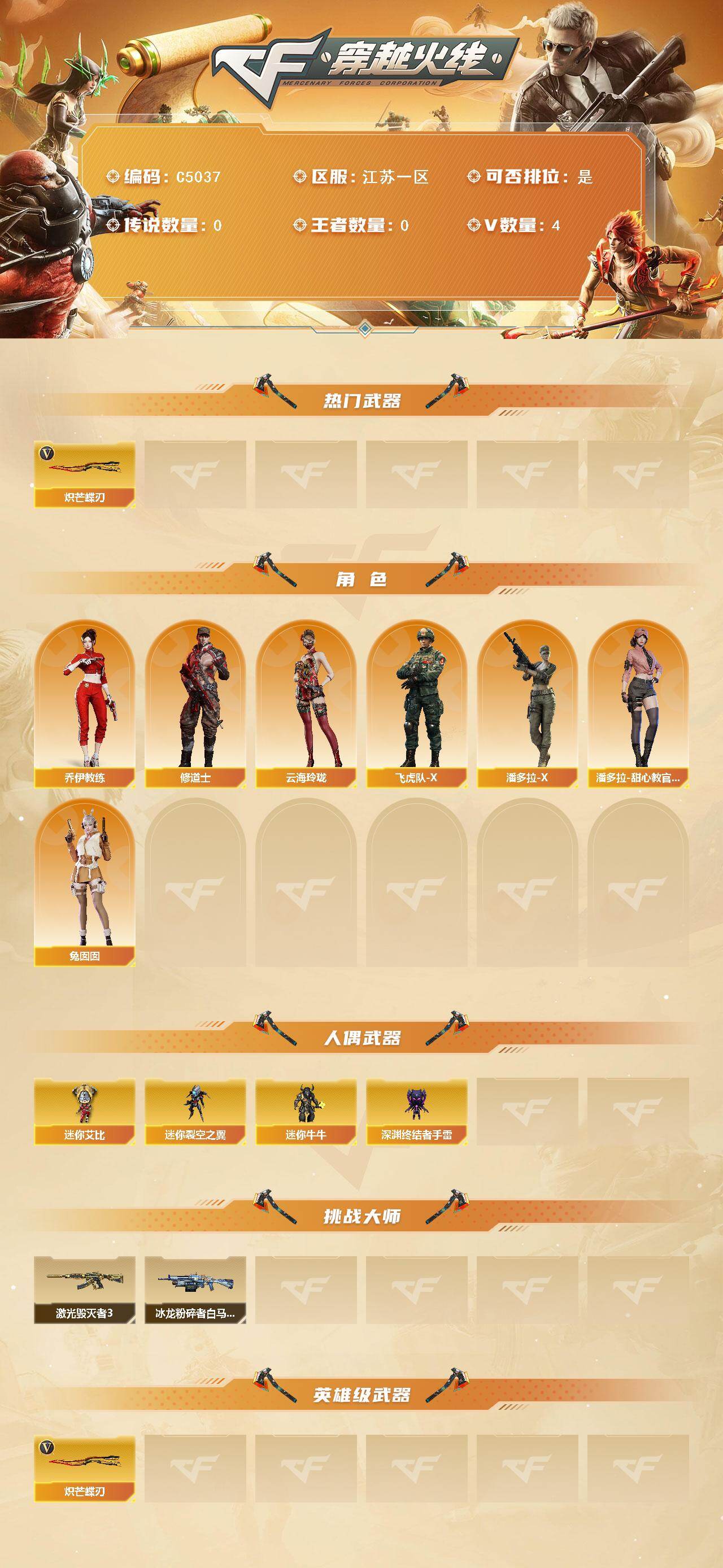 【C5037】江苏一区-9V-0王者武器数-0炫金武器数