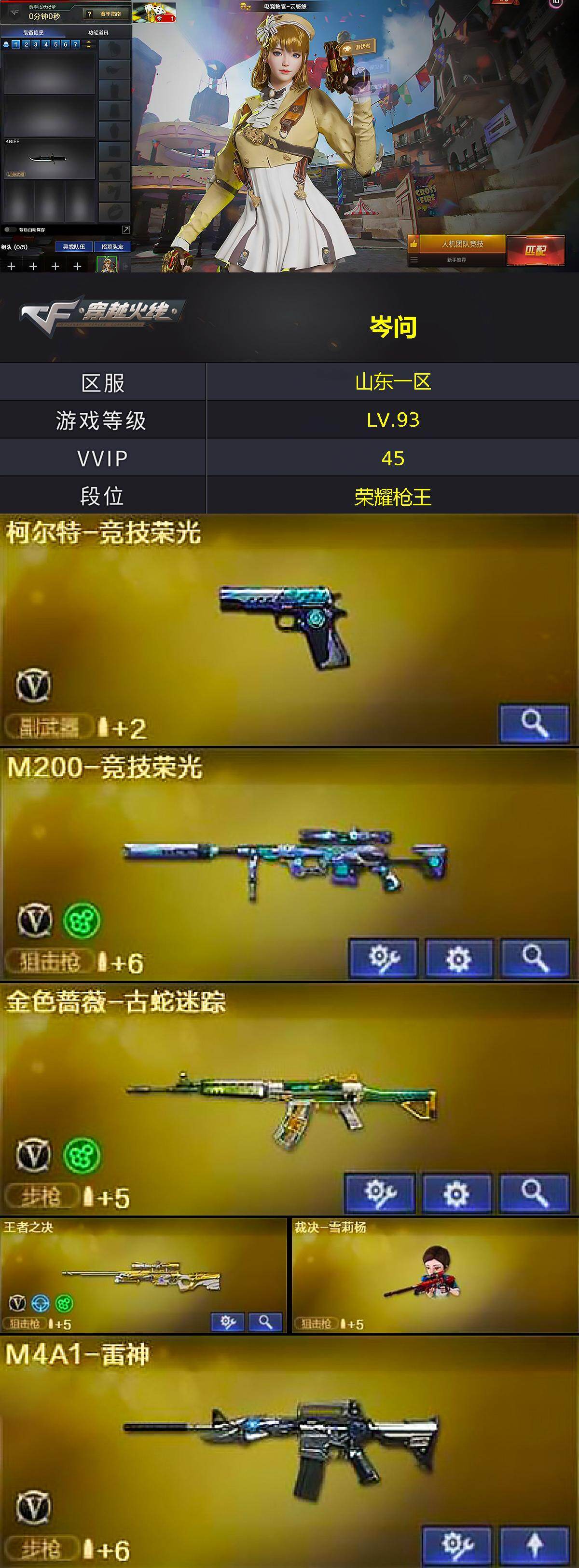 山东一区-45V-2王者武器数-1炫金武器数【热门武器】:金色蔷薇-古蛇迷踪
