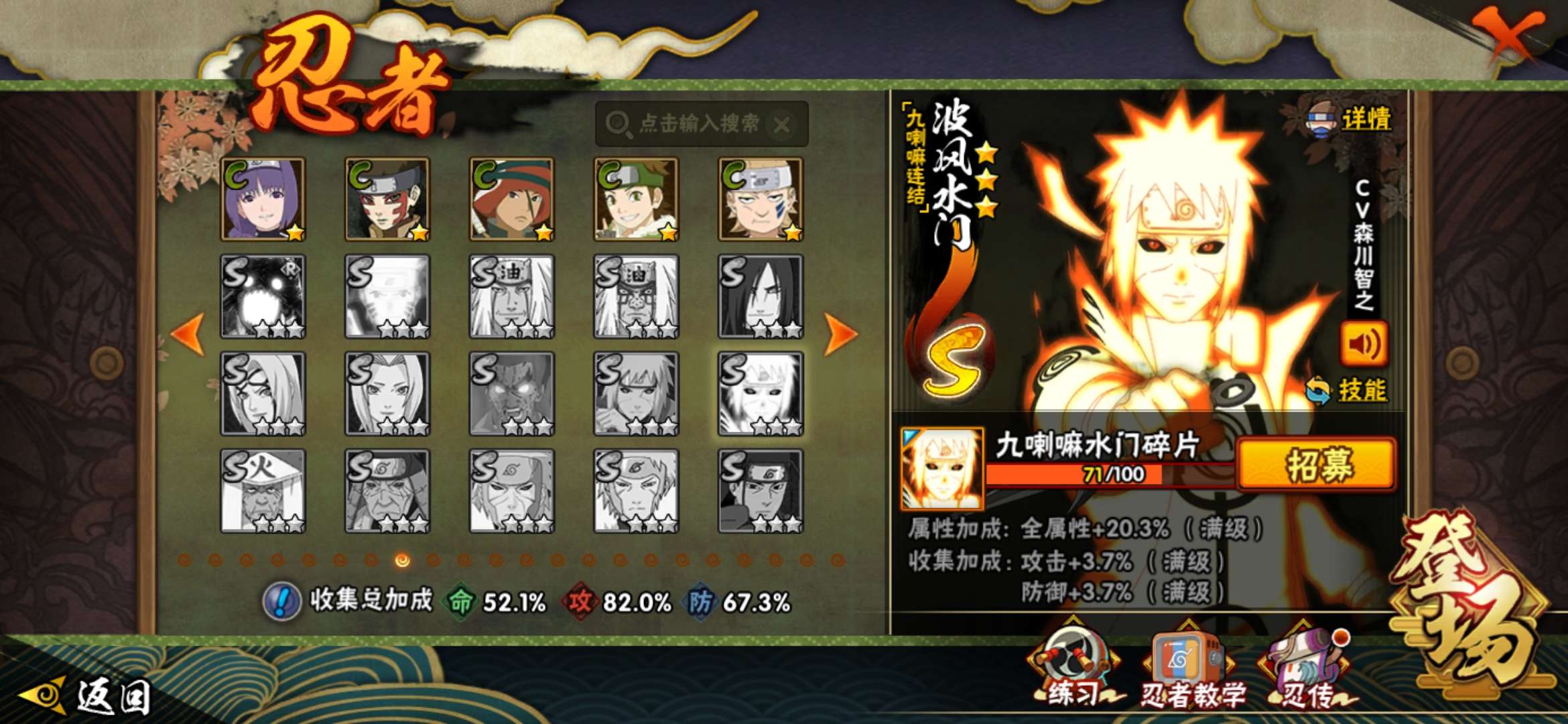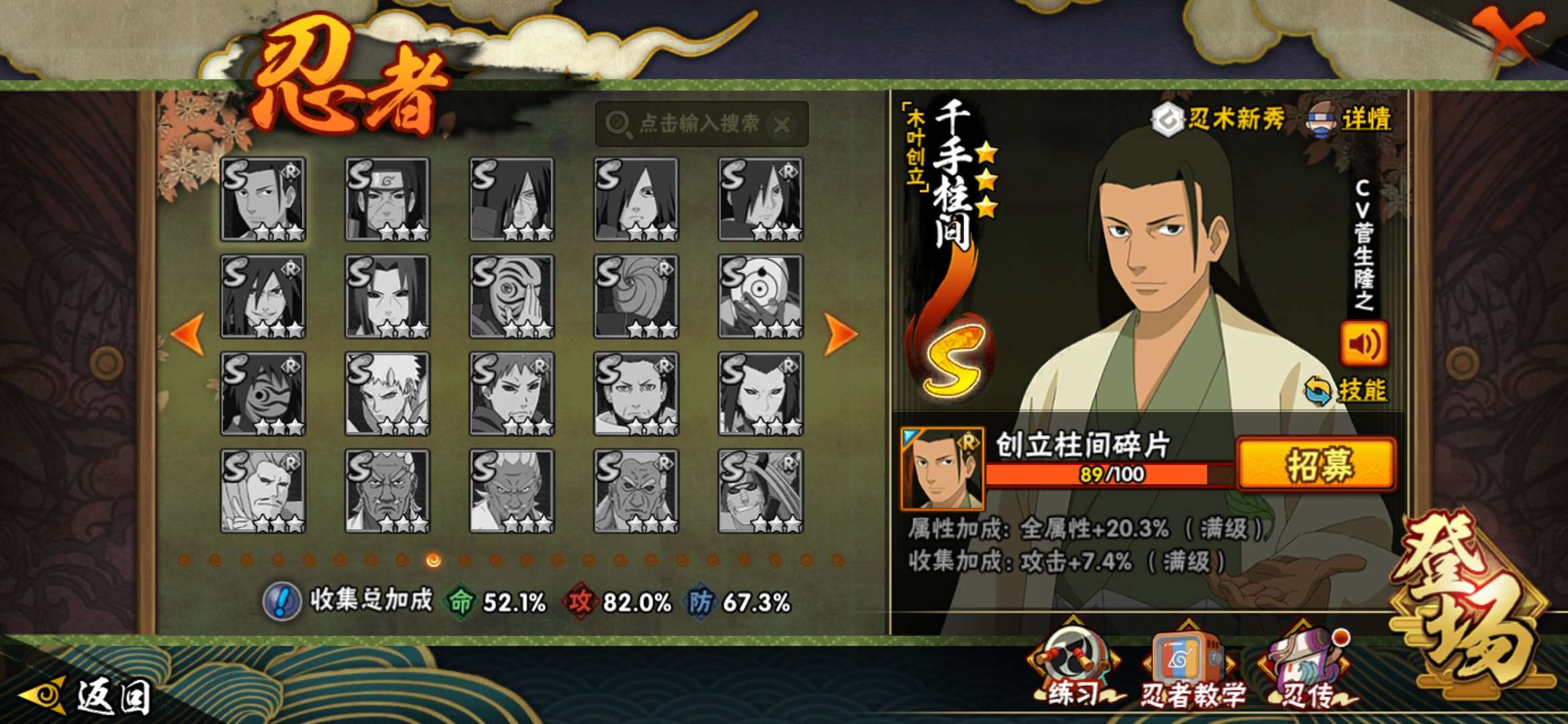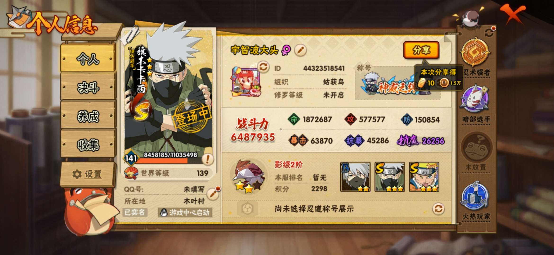 v7,12s准14s,28A,648w战力,金水71片,木叶创立柱间89片,带土,须佐止水,面麻,再