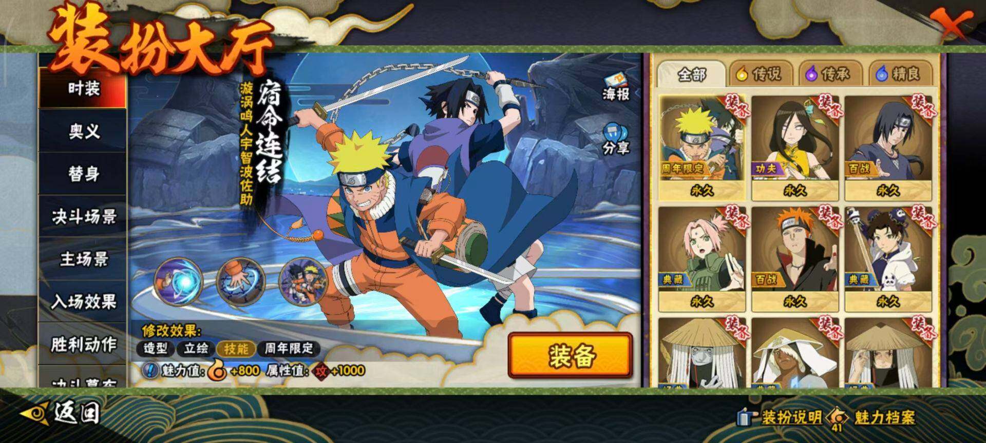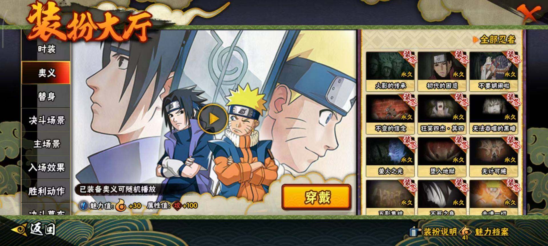 V11/S忍27/A忍57/秽土转生-宇智波斑/2星大野木「侠隐江湖」/3星波风水门「九喇嘛连结」/