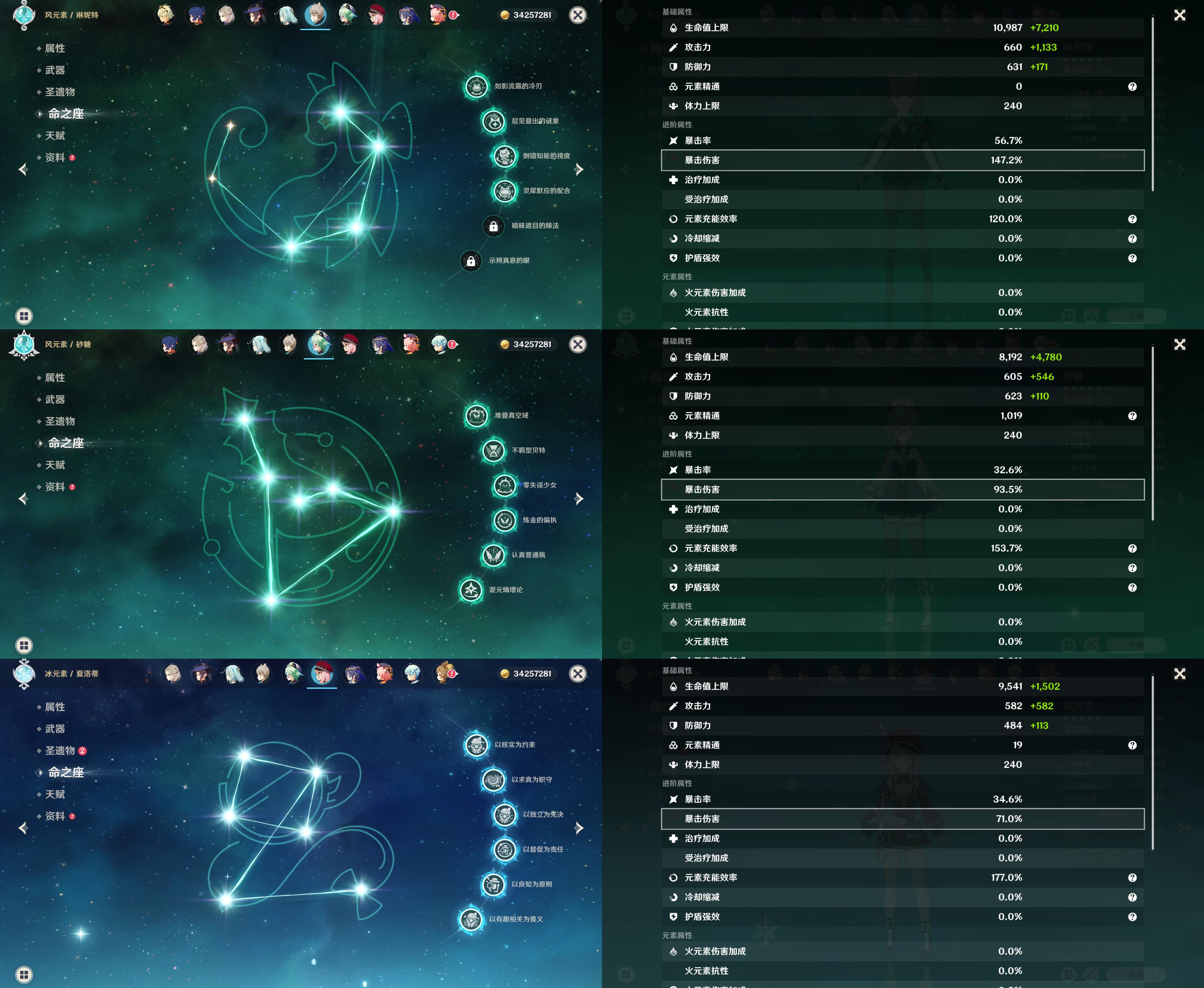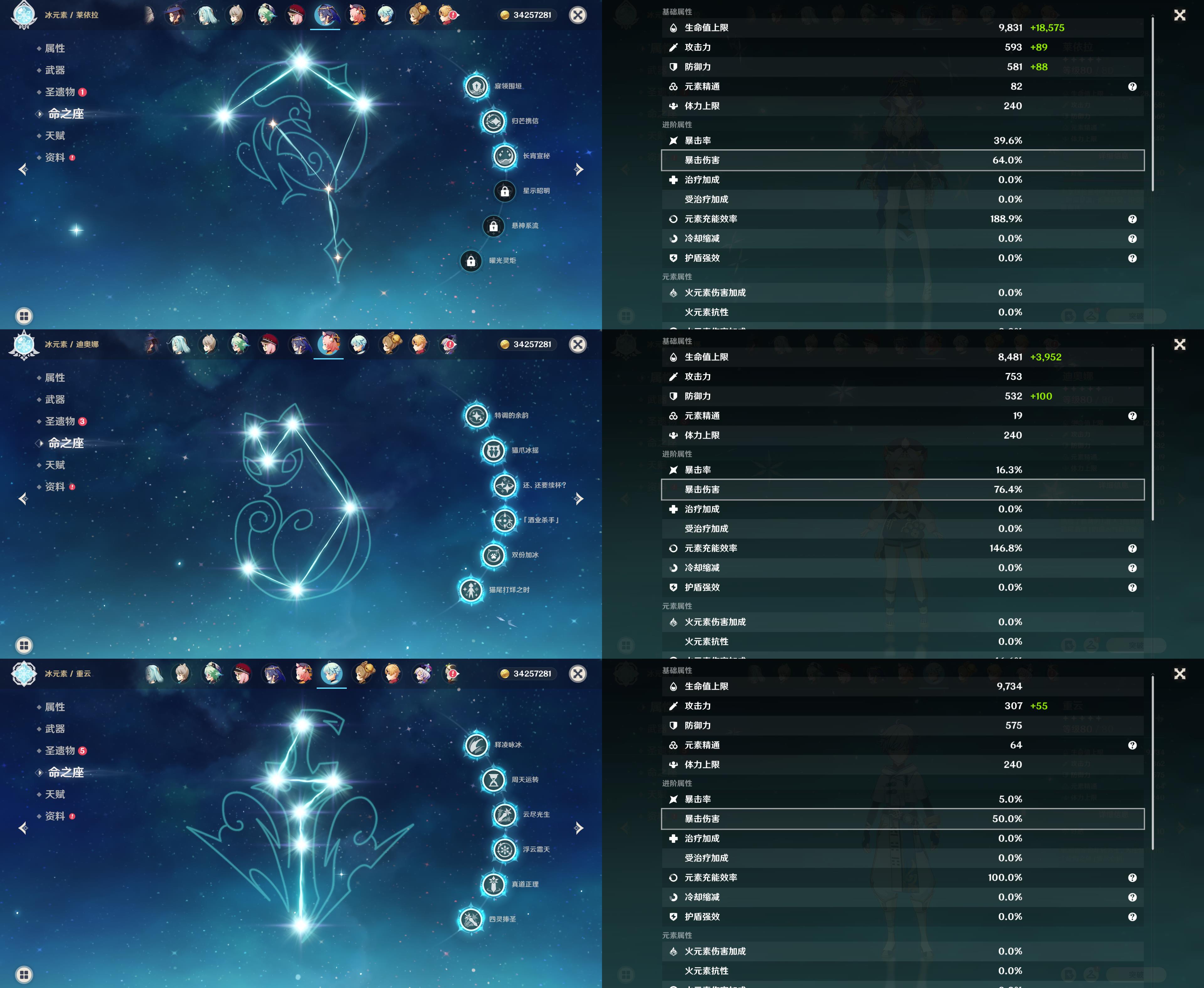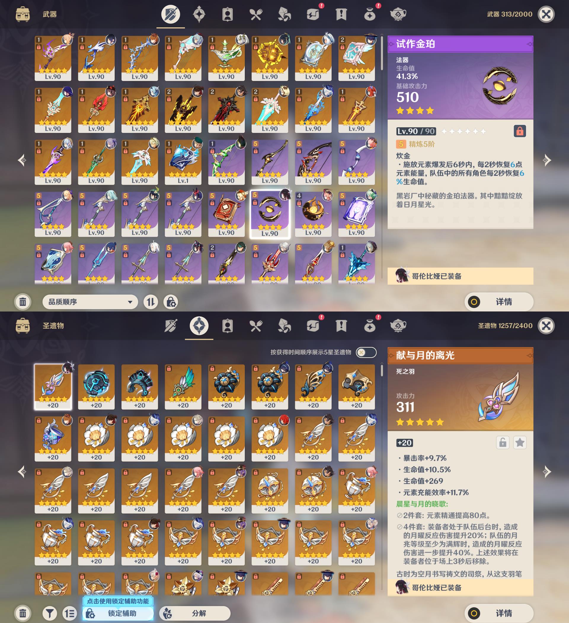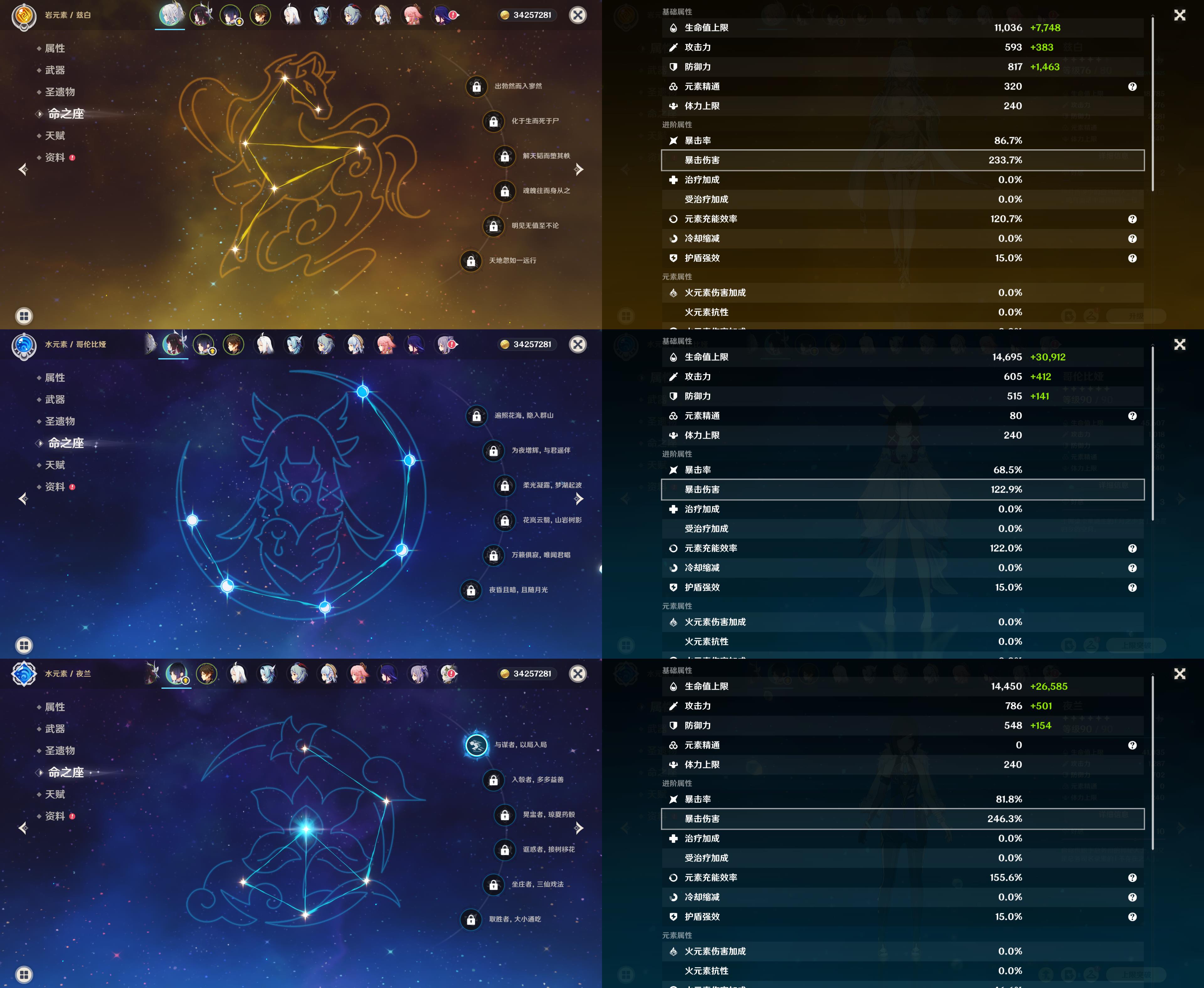 60级/83黄/女主/34个五星角色/20个五星武器/0命哥伦比娅/1命夜兰/