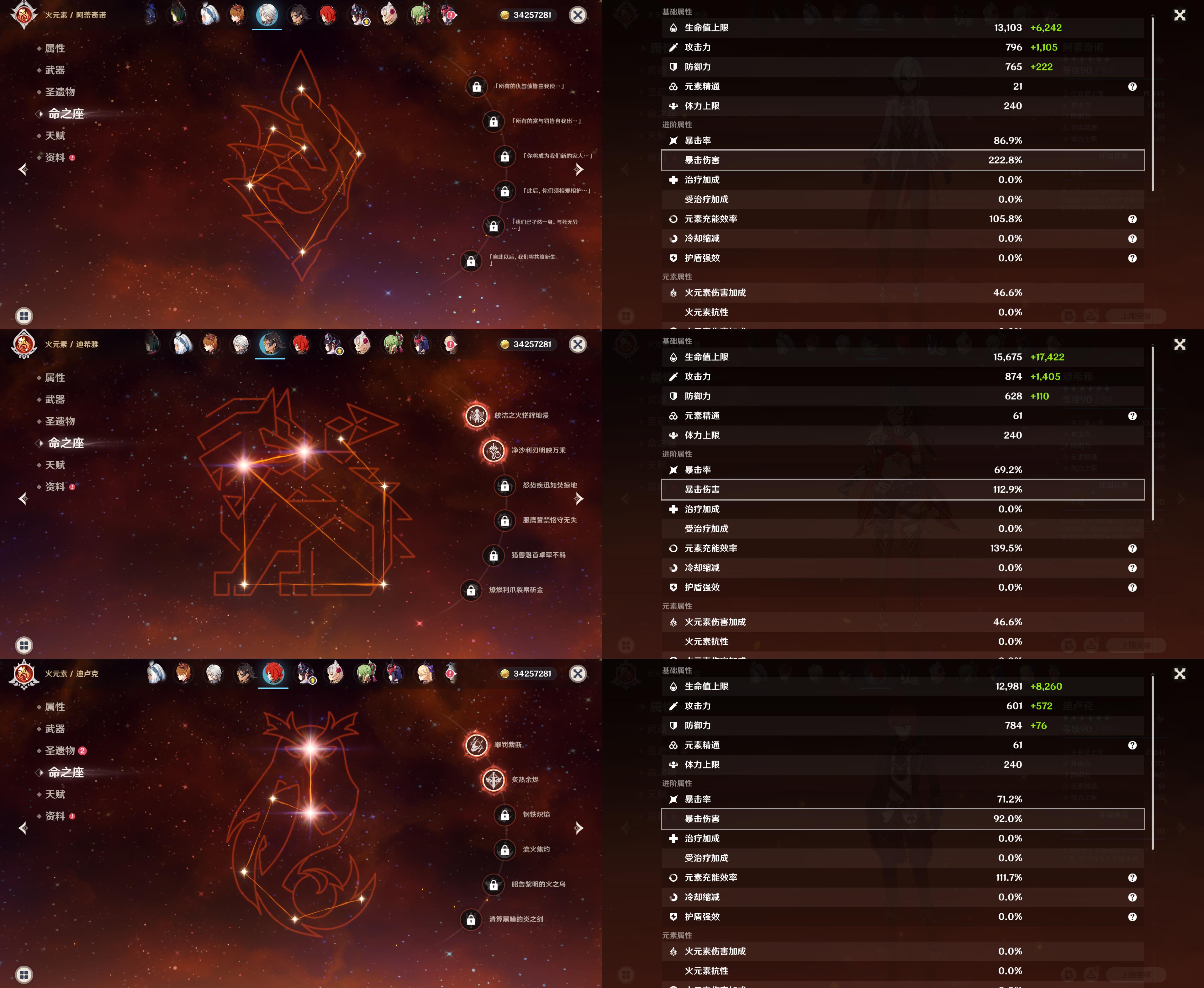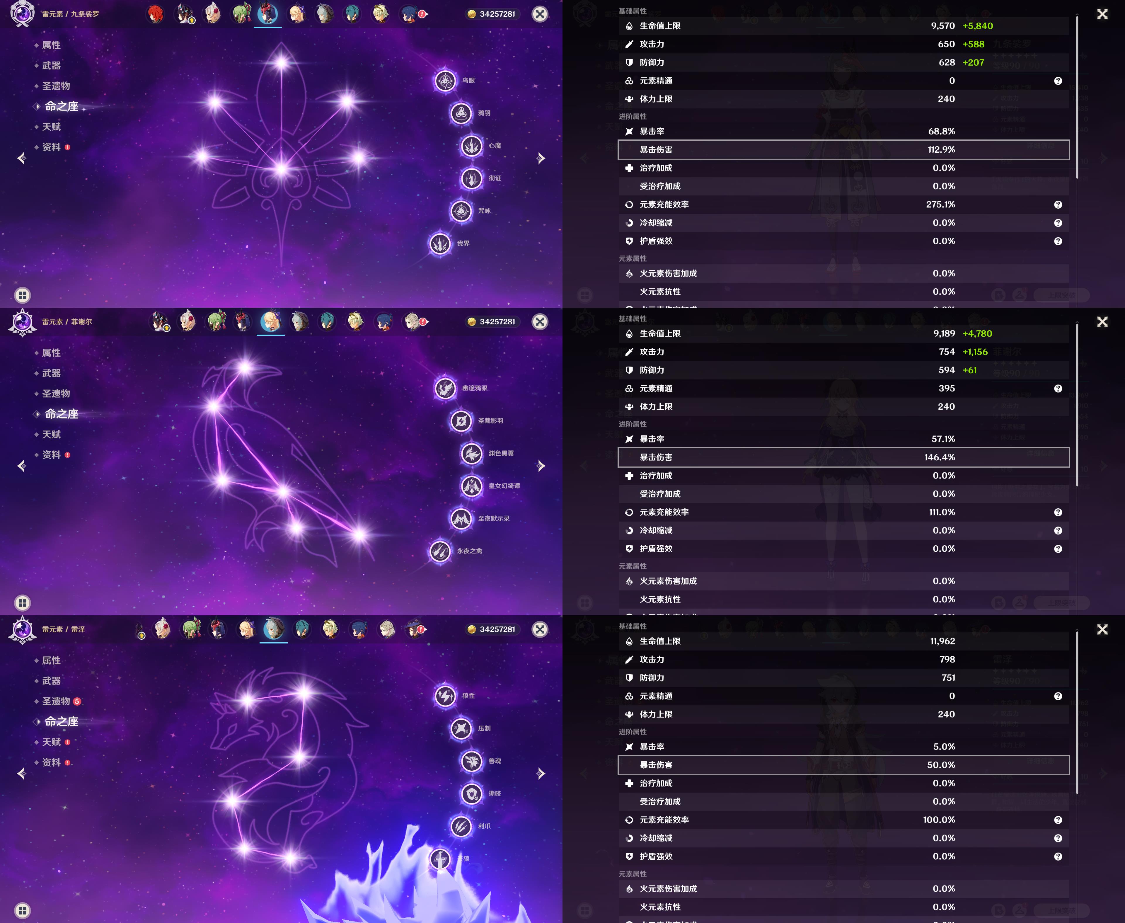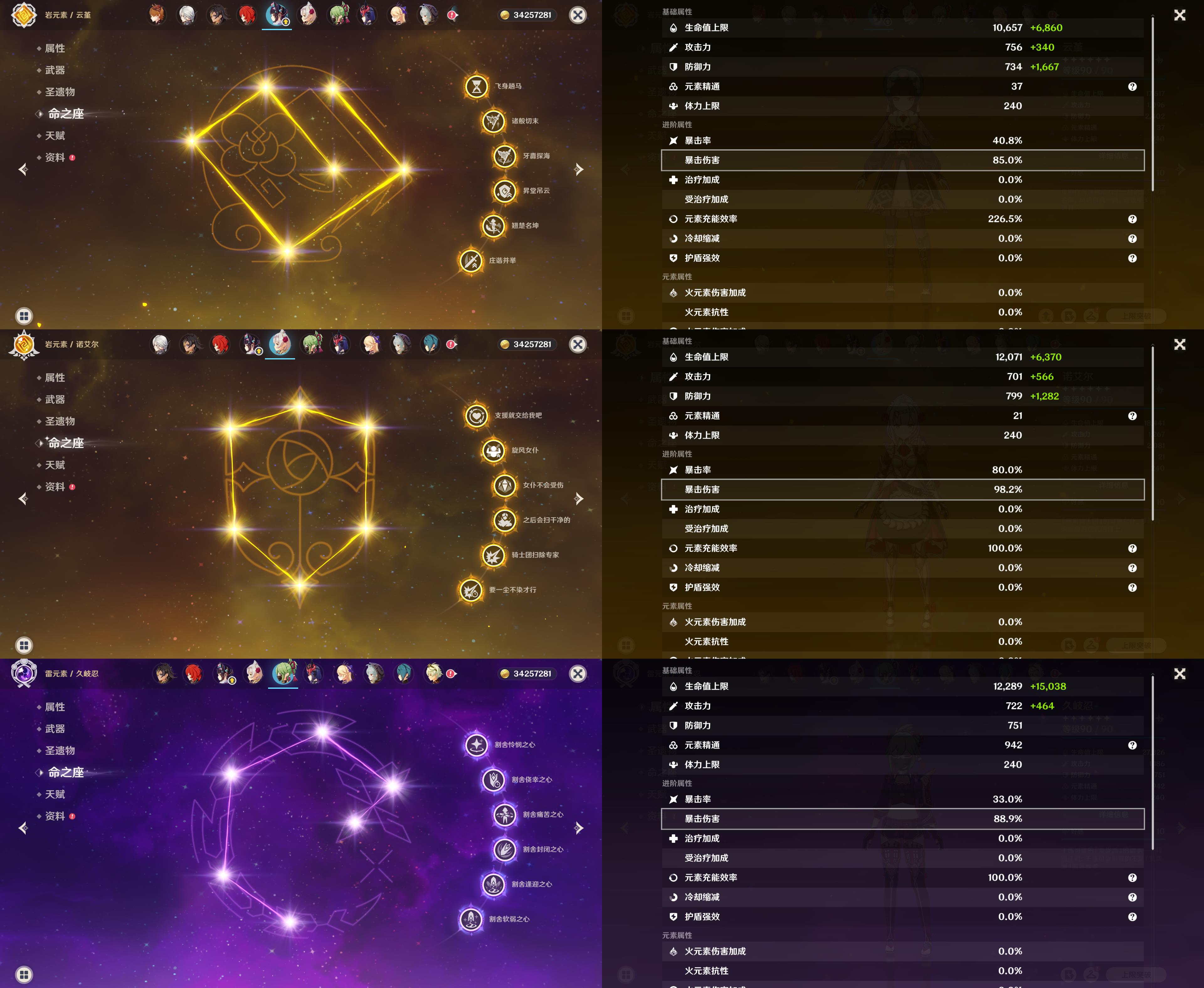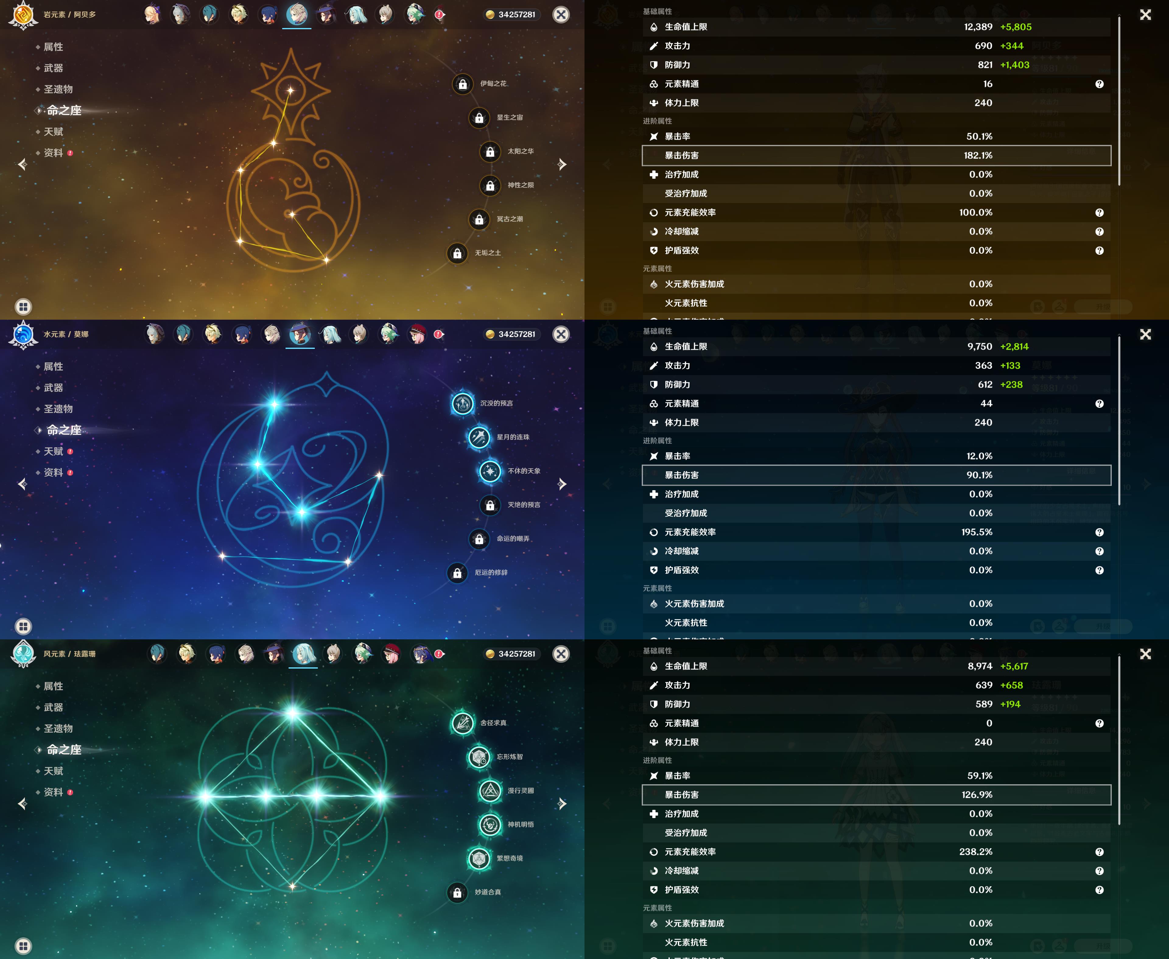 60级/83黄/女主/34个五星角色/20个五星武器/0命哥伦比娅/1命夜兰/